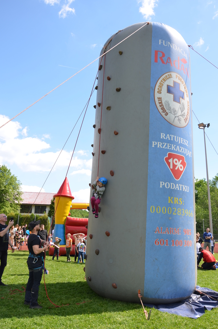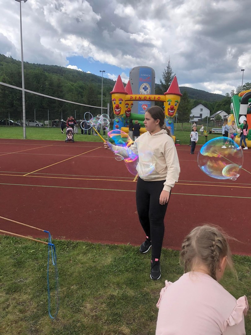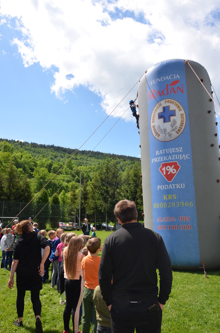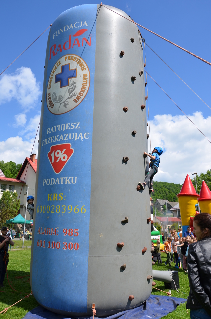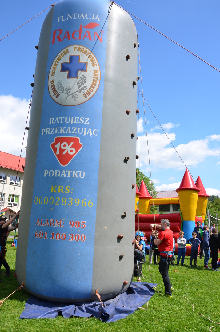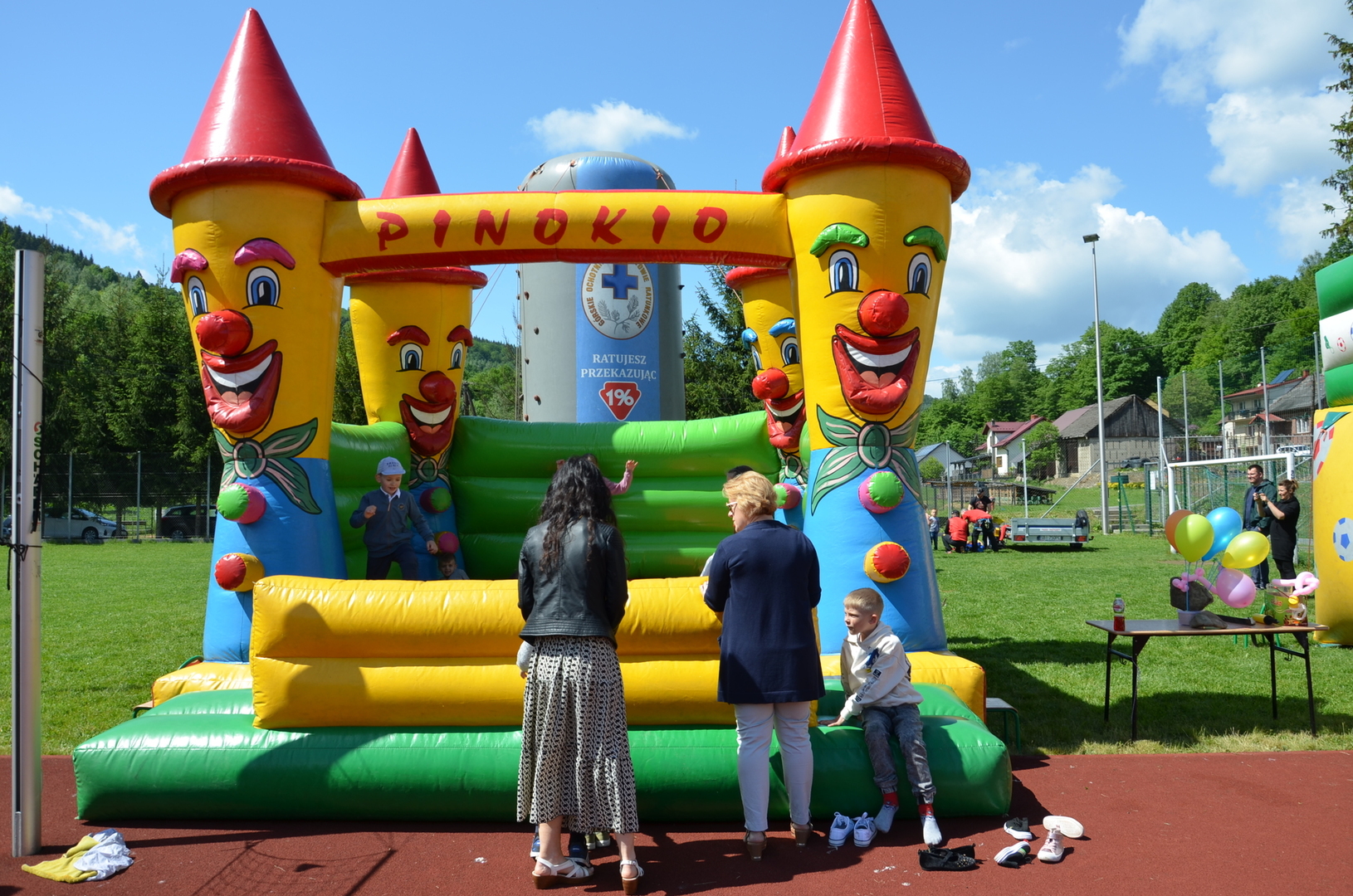 Po zakończeniu przedstawienia rozpoczęła się zabawa. Atrakcji było całe mnóstwo! Dzieci jak co roku najchętniej bawiły się na dmuchańcach. Furorę zrobiła jednak również ścianka wspinaczkowa udostępniona nam przez Górskie Ochotnicze Pogotowie Ratunkowe, za co jeszcze raz serdecznie dziękujemy! Najmłodsi równie chętnie bawili się puszczając duże bańki mydlane oraz dmuchając baloniki :)