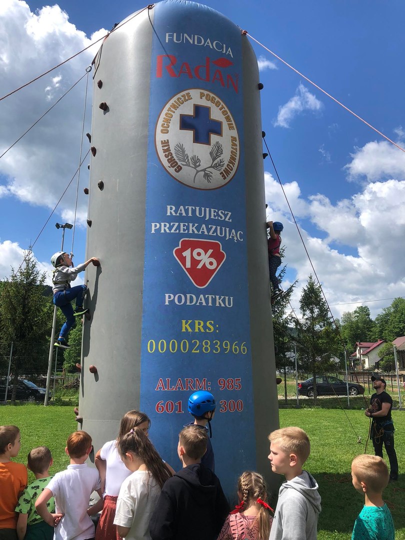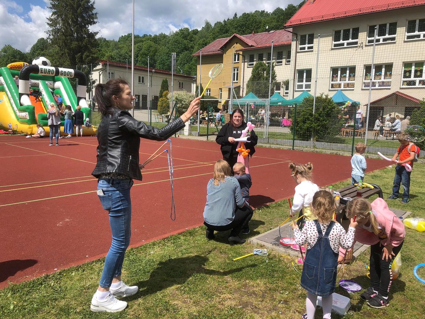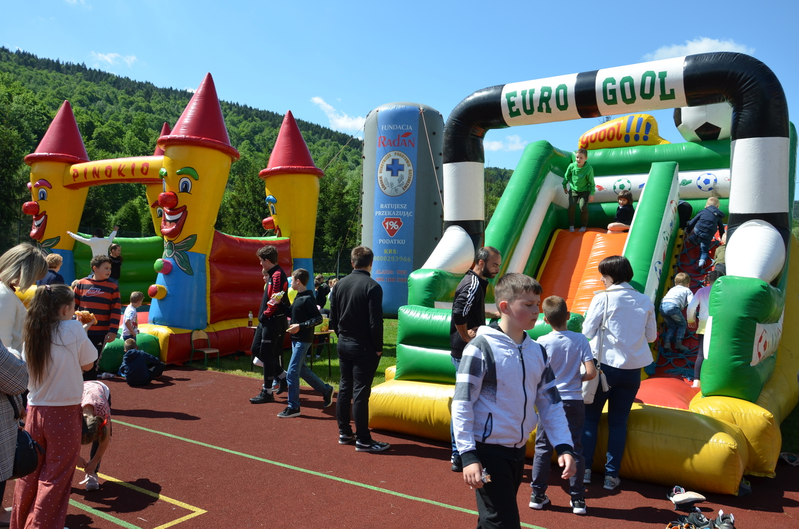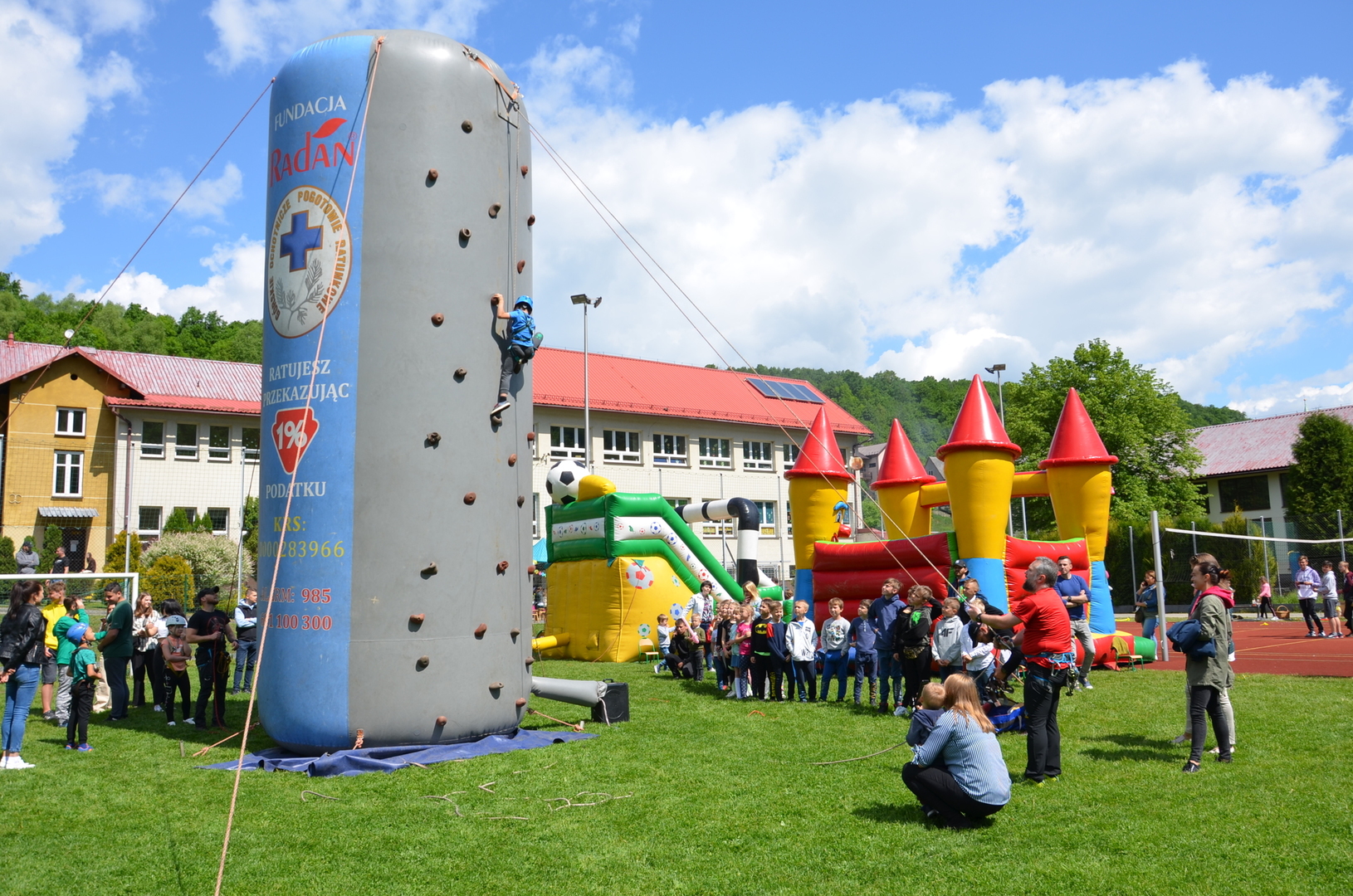 Po zakończeniu przedstawienia rozpoczęła się zabawa. Atrakcji było całe mnóstwo! Dzieci jak co roku najchętniej bawiły się na dmuchańcach. Furorę zrobiła jednak również ścianka wspinaczkowa udostępniona nam przez Górskie Ochotnicze Pogotowie Ratunkowe, za co jeszcze raz serdecznie dziękujemy! Najmłodsi równie chętnie bawili się puszczając duże bańki mydlane oraz dmuchając baloniki :)
