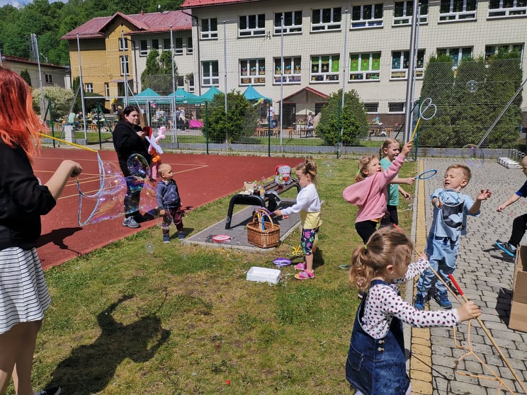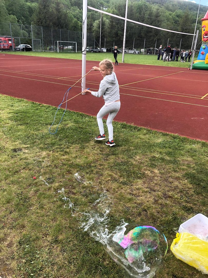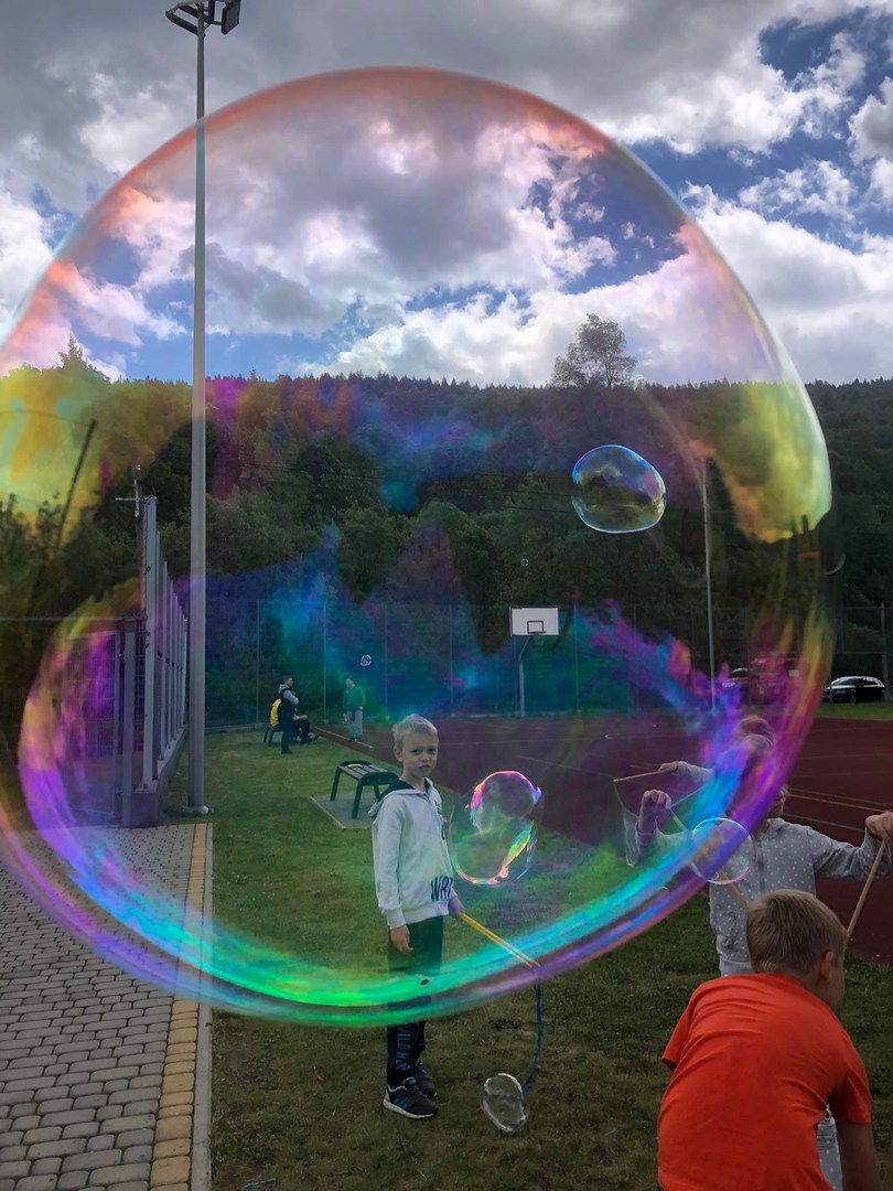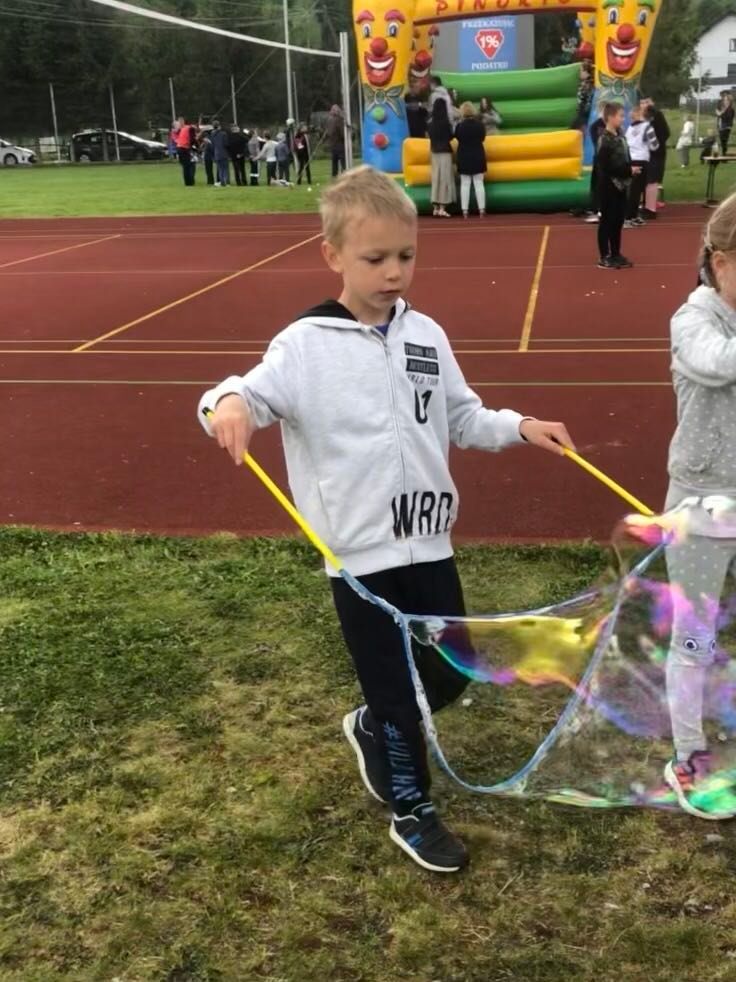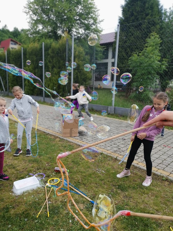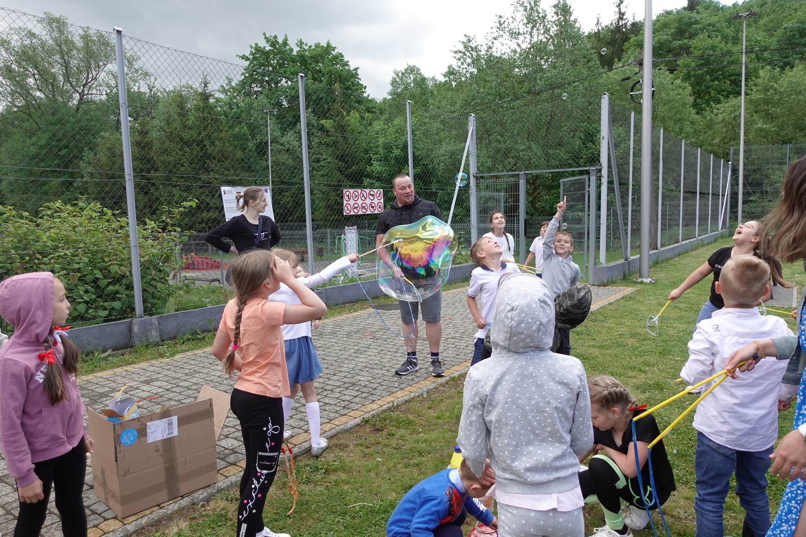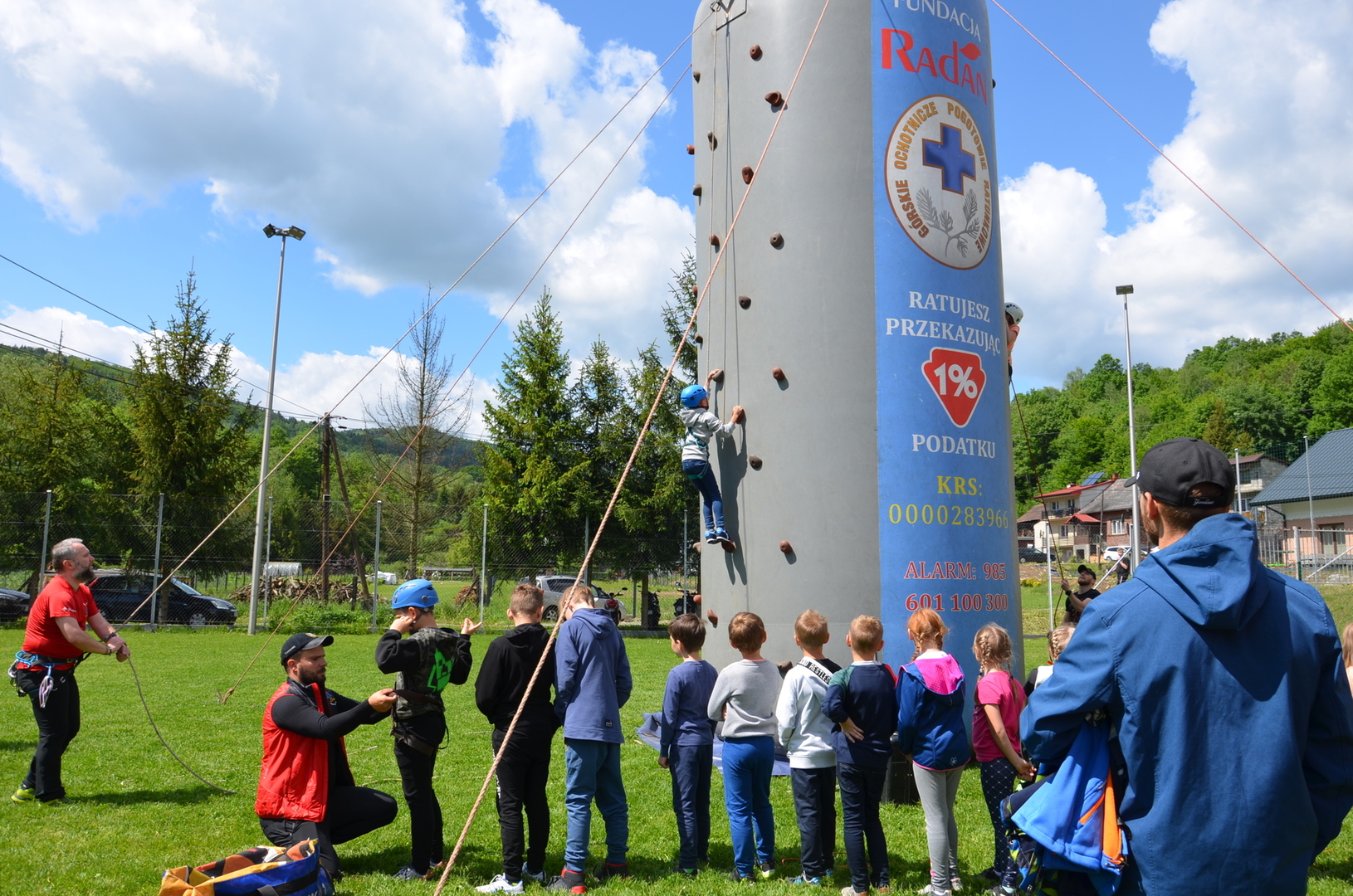Po zakończeniu przedstawienia rozpoczęła się zabawa. Atrakcji było całe mnóstwo! Dzieci jak co roku najchętniej bawiły się na dmuchańcach. Furorę zrobiła jednak również ścianka wspinaczkowa udostępniona nam przez Górskie Ochotnicze Pogotowie Ratunkowe, za co jeszcze raz serdecznie dziękujemy! Najmłodsi równie chętnie bawili się puszczając duże bańki mydlane oraz dmuchając baloniki :)