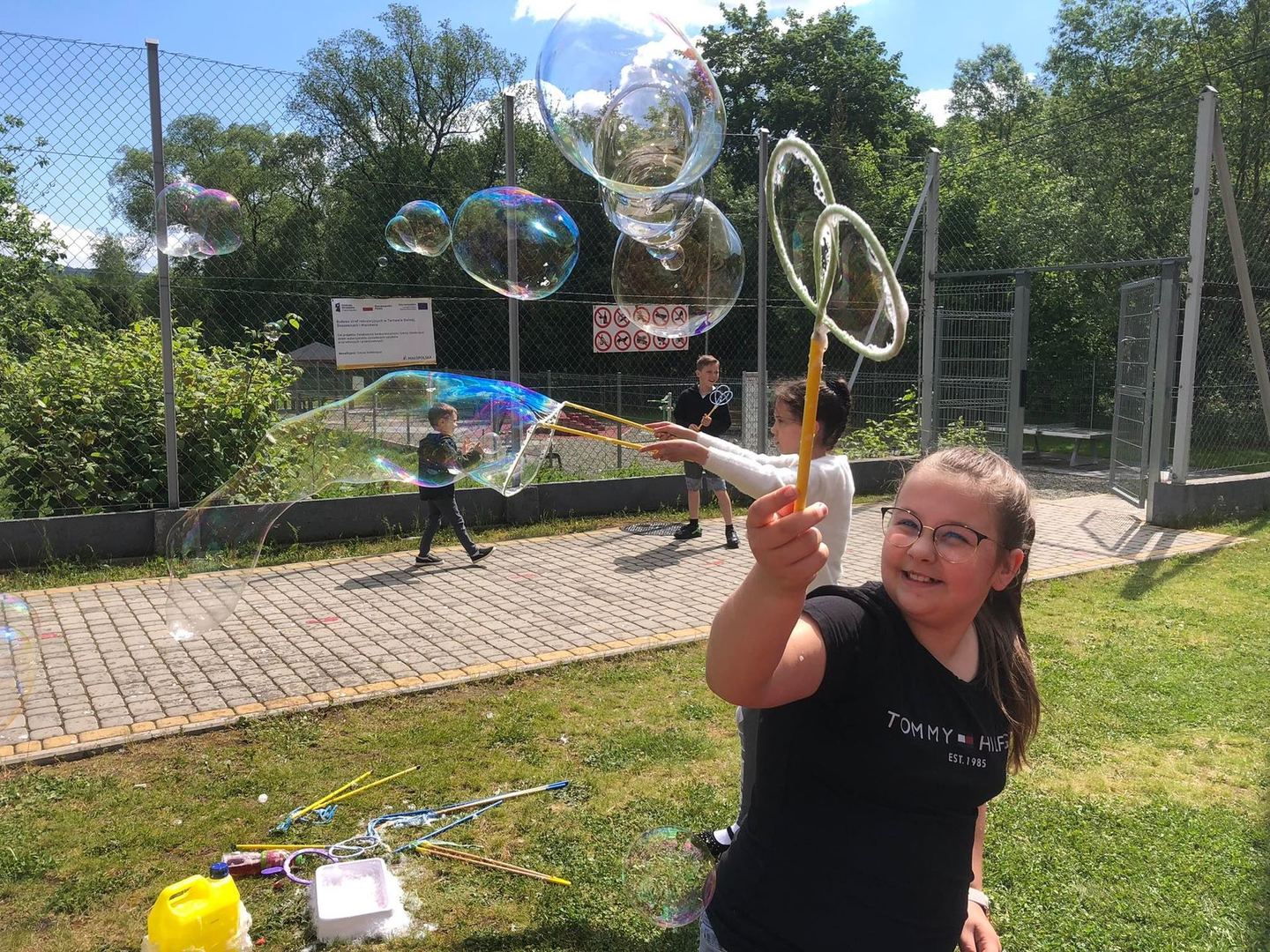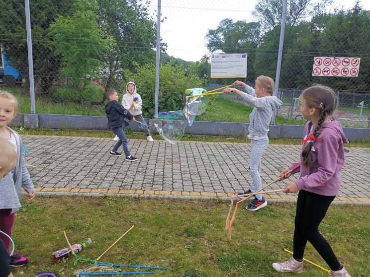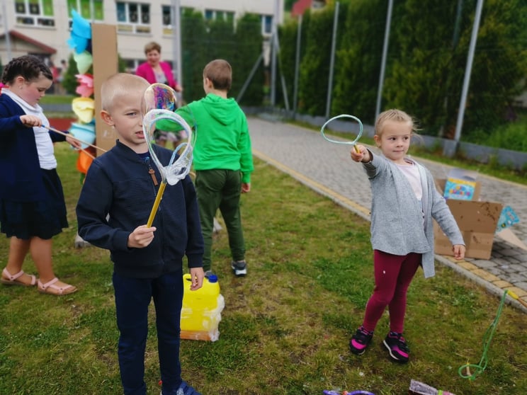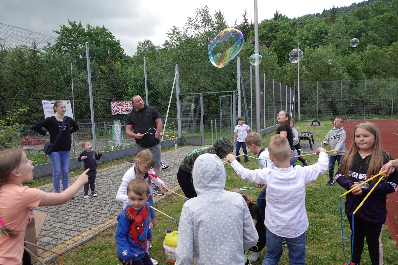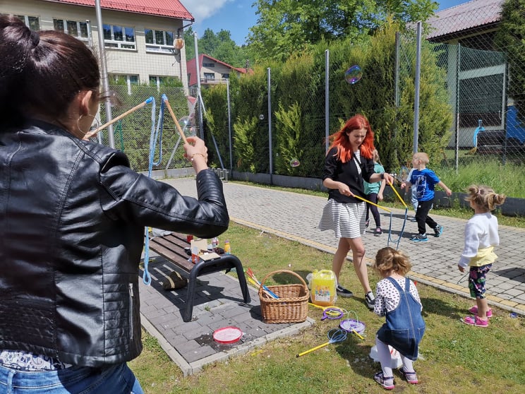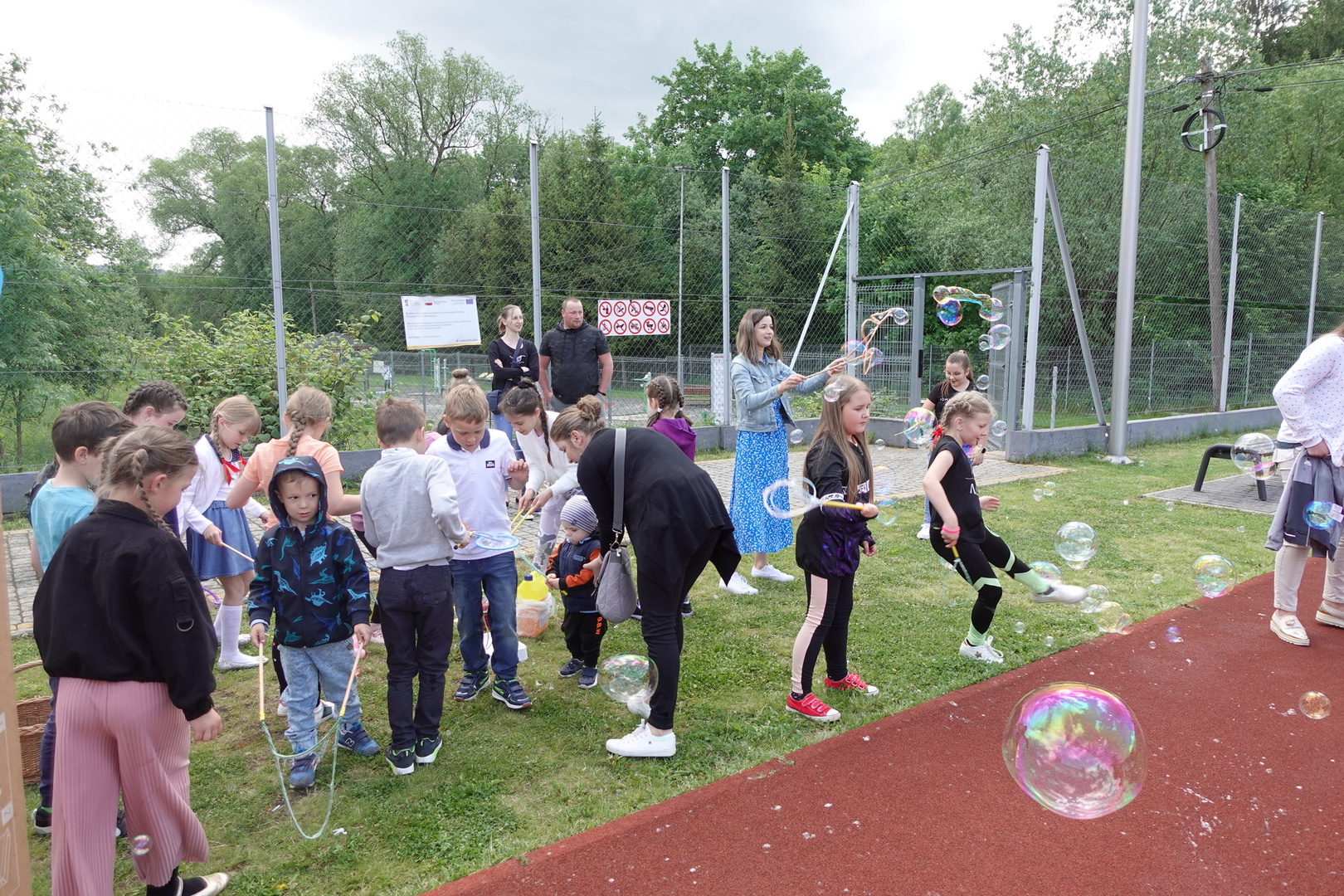 Po zakończeniu przedstawienia rozpoczęła się zabawa. Atrakcji było całe mnóstwo! Dzieci jak co roku najchętniej bawiły się na dmuchańcach. Furorę zrobiła jednak również ścianka wspinaczkowa udostępniona nam przez Górskie Ochotnicze Pogotowie Ratunkowe, za co jeszcze raz serdecznie dziękujemy! Najmłodsi równie chętnie bawili się puszczając duże bańki mydlane oraz dmuchając baloniki :)