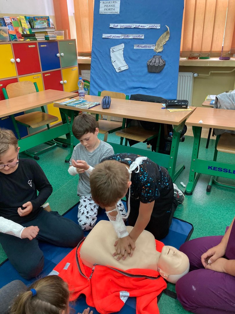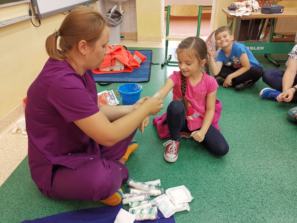 10 czerwca uczniowie klas I-III uczestniczyli w ciekawych warsztatach dotyczących pierwszej pomocy, przeprowadzonych przez zaproszoną do naszej szkoły ratowniczkę medyczną.
