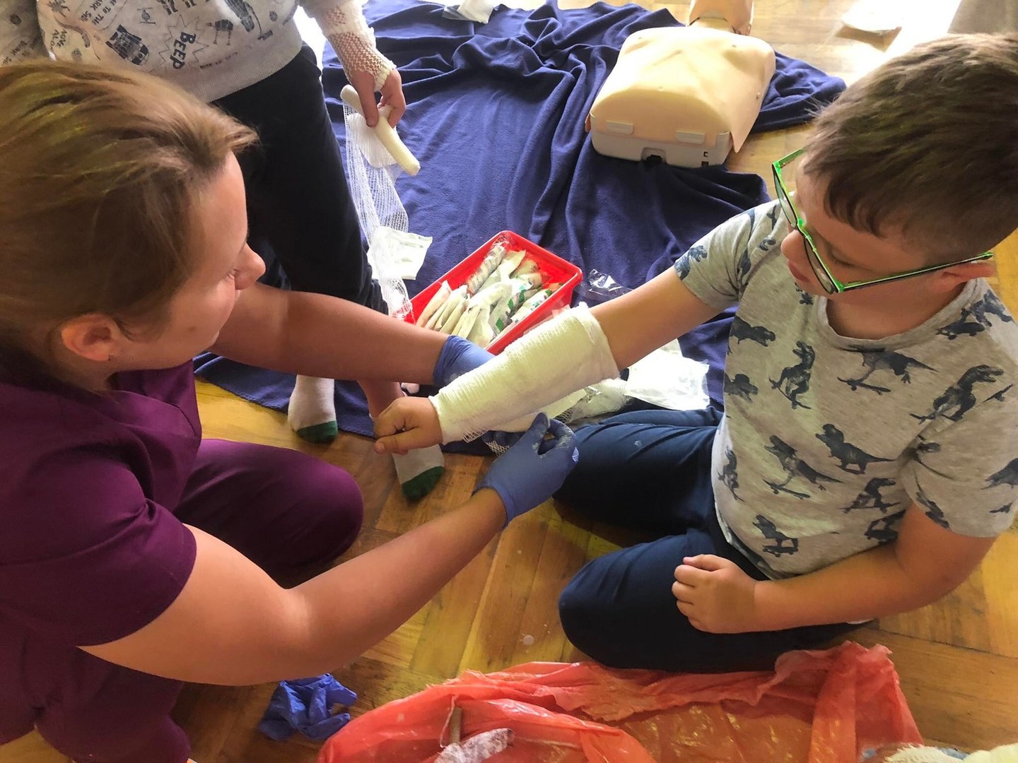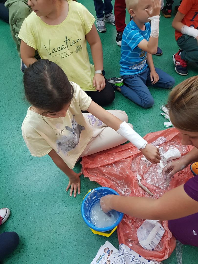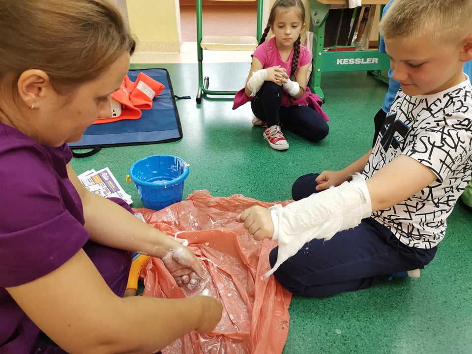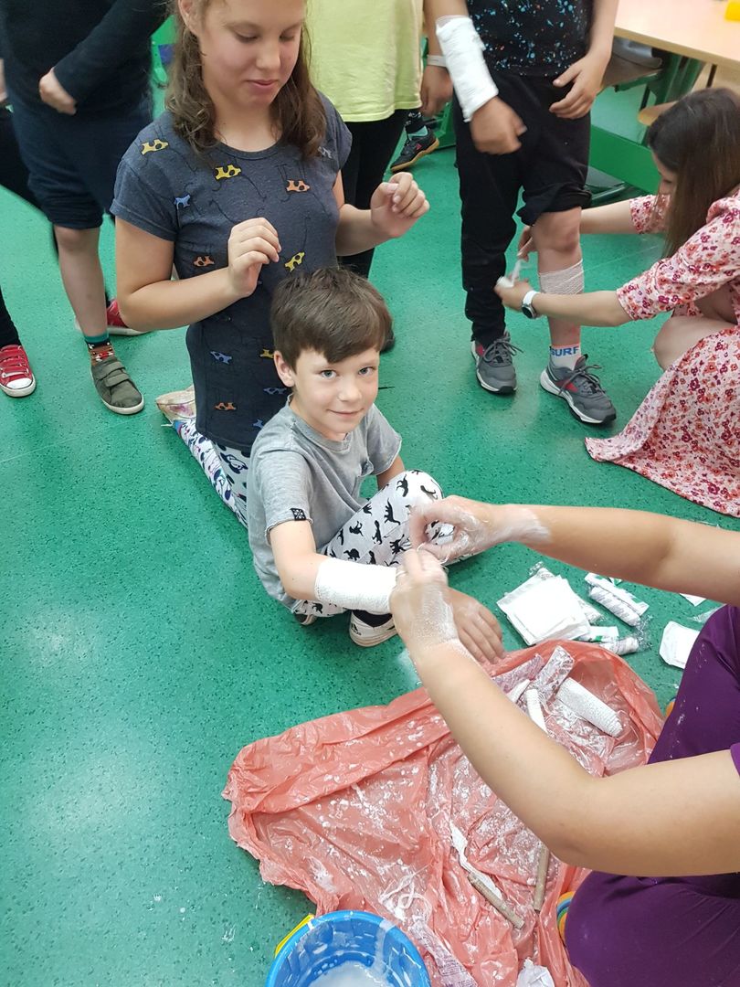 Największą atrakcją jednak była nauka bandażowania oraz pokaz prawdziwego gipsowania!