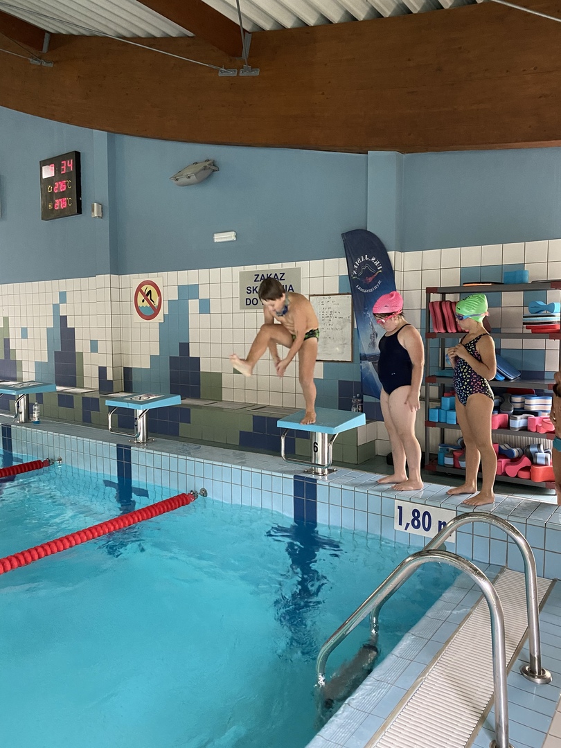 W ramach programu uczniowie klas 1 oraz 2, dwa razy w tygodniu wyjeżdżają na krytą pływalnię w Suchej Beskidzkiej, gdzie pod bacznym okiem instruktorów szkolą swoje pływackie umiejętności.