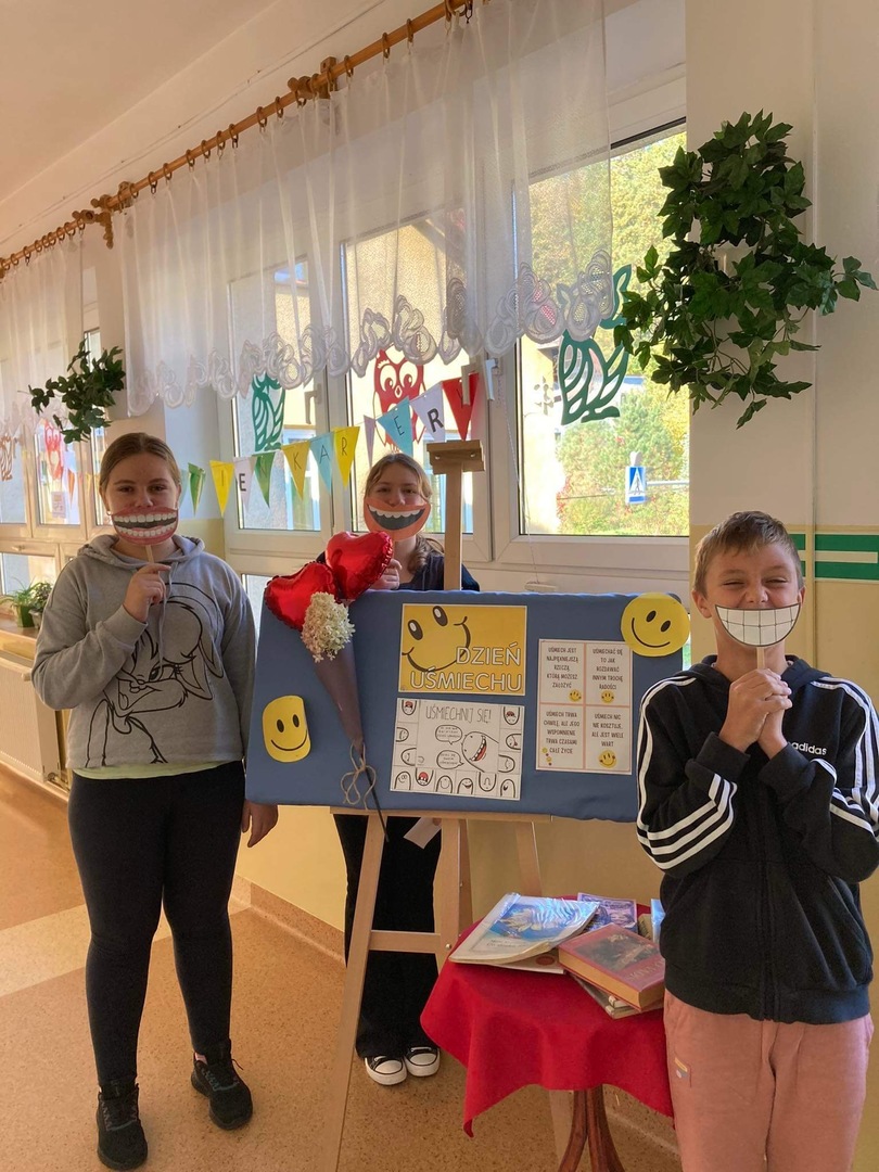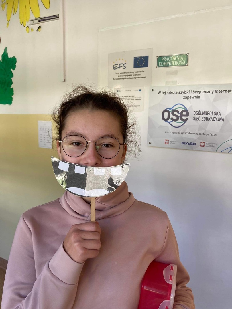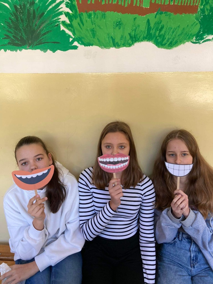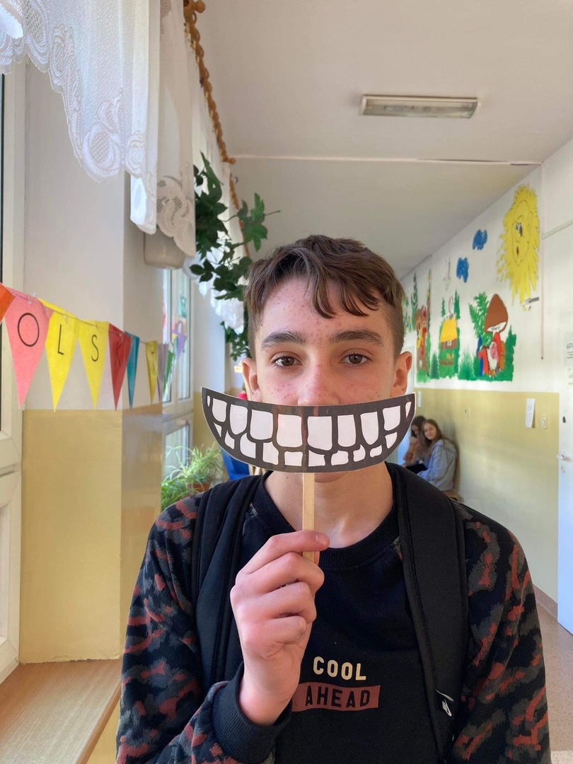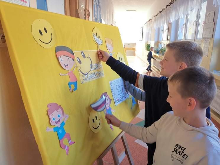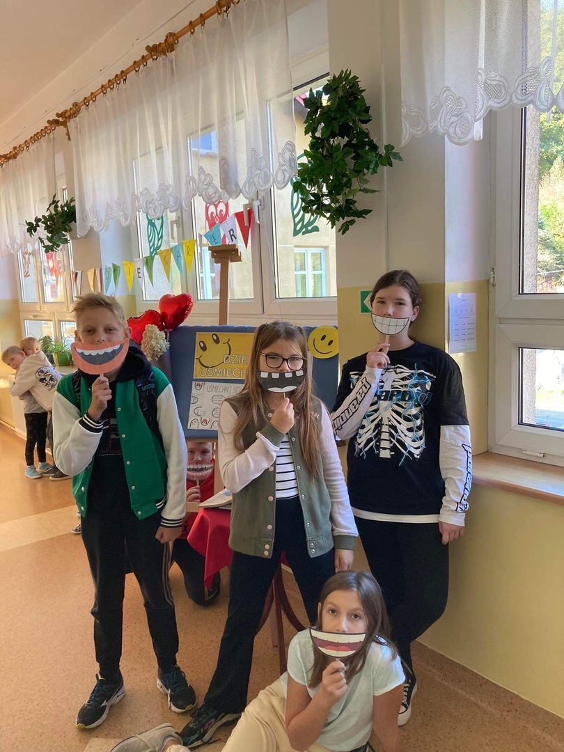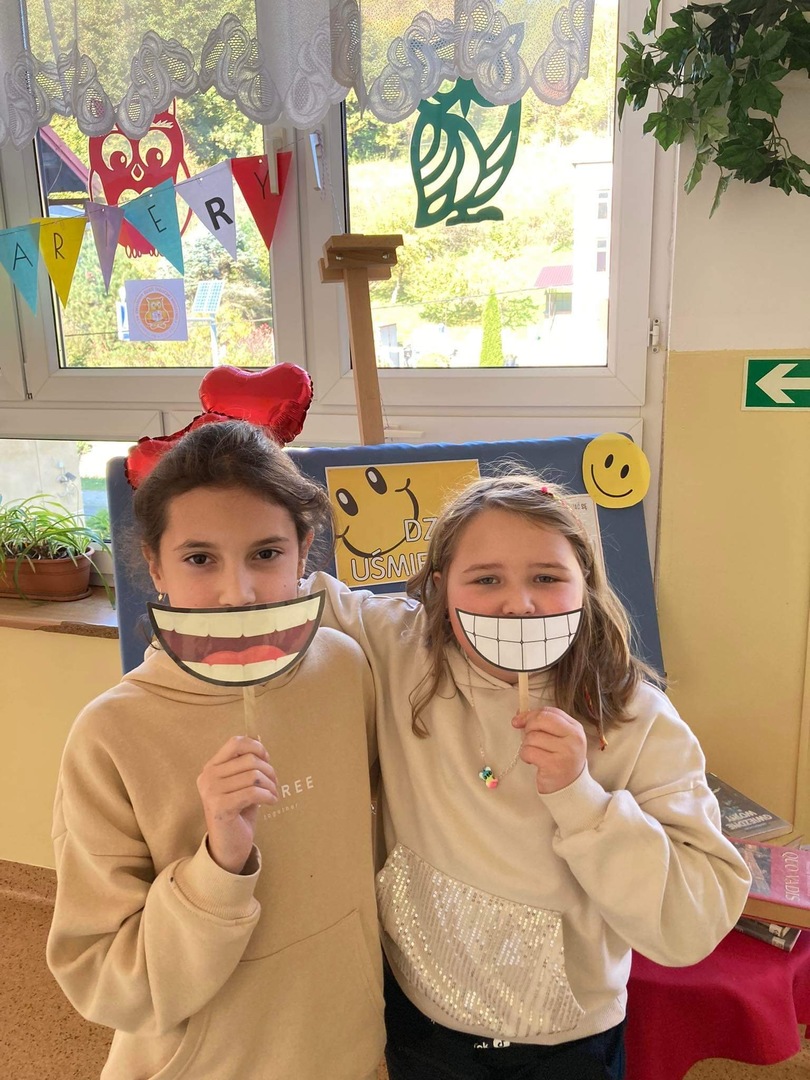 Uczniowie mieli możliwość zrobienia sobie zabawnych zdjęć z wielkimi uśmiechami. Na uczniów i wychowawców klas 4-8 czekało również małe wyzwanie - konkurs na Najbardziej Uśmiechniętą Klasę!