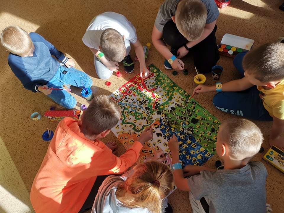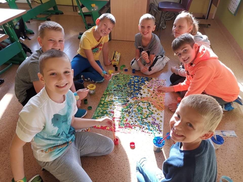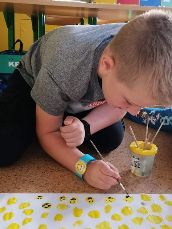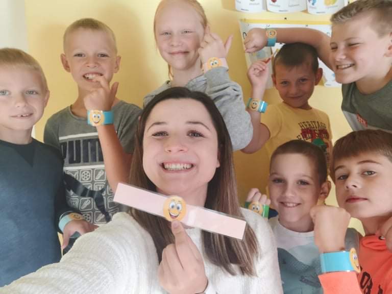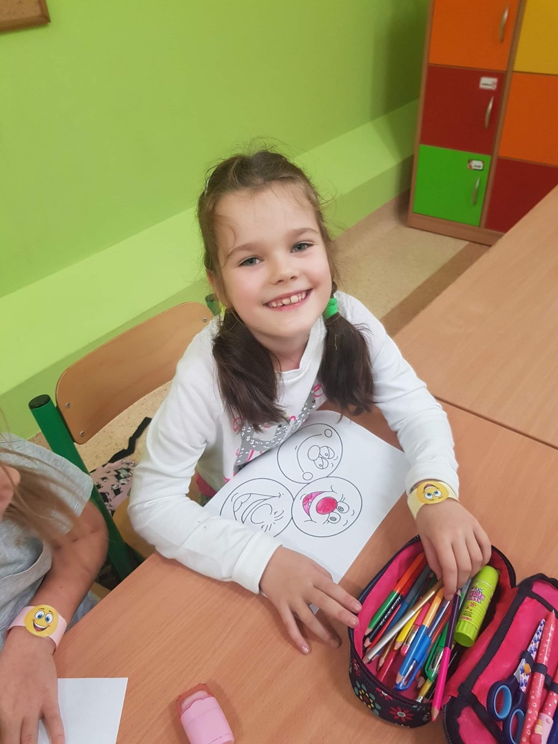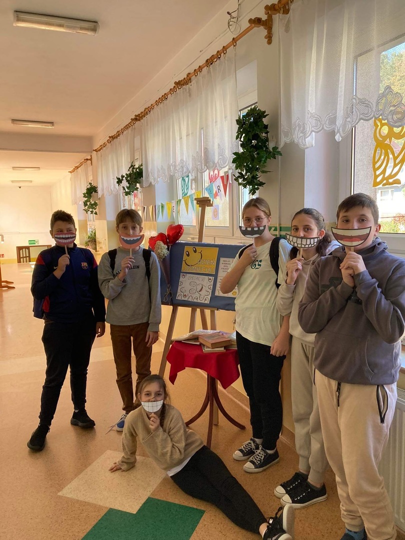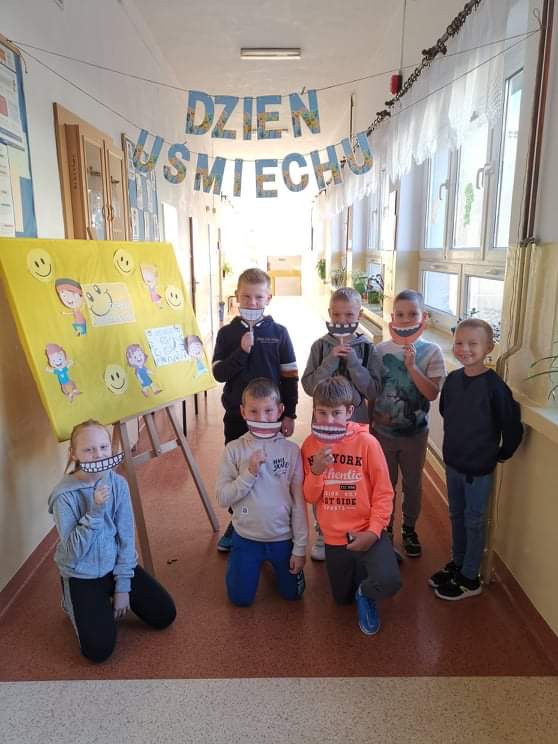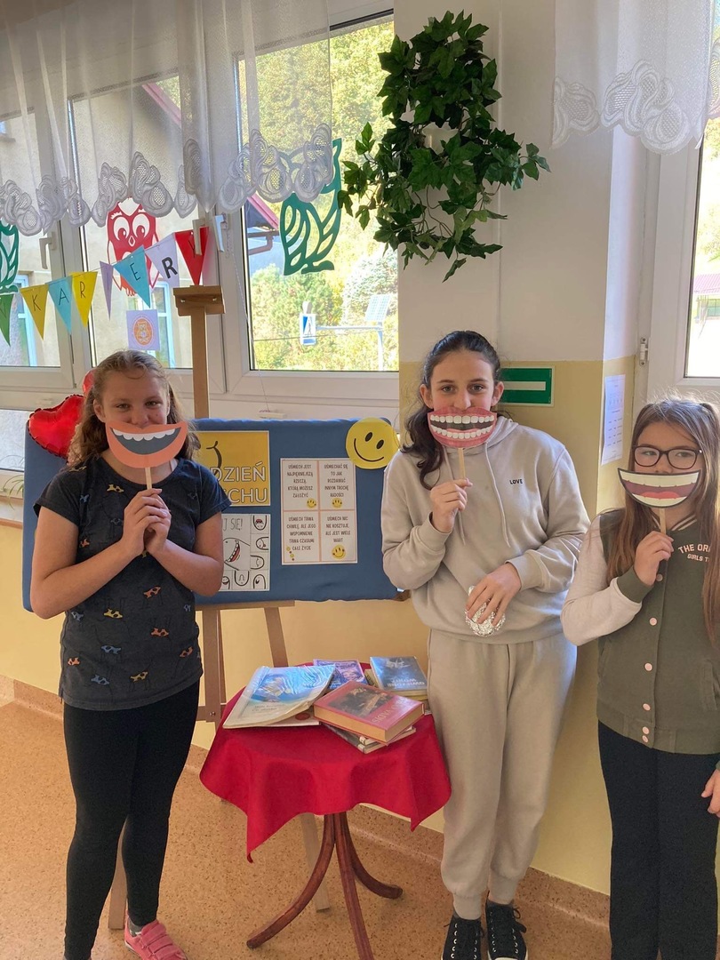 Uczniowie mieli możliwość zrobienia sobie zabawnych zdjęć z wielkimi uśmiechami. Na uczniów i wychowawców klas 4-8 czekało również małe wyzwanie - konkurs na Najbardziej Uśmiechniętą Klasę!