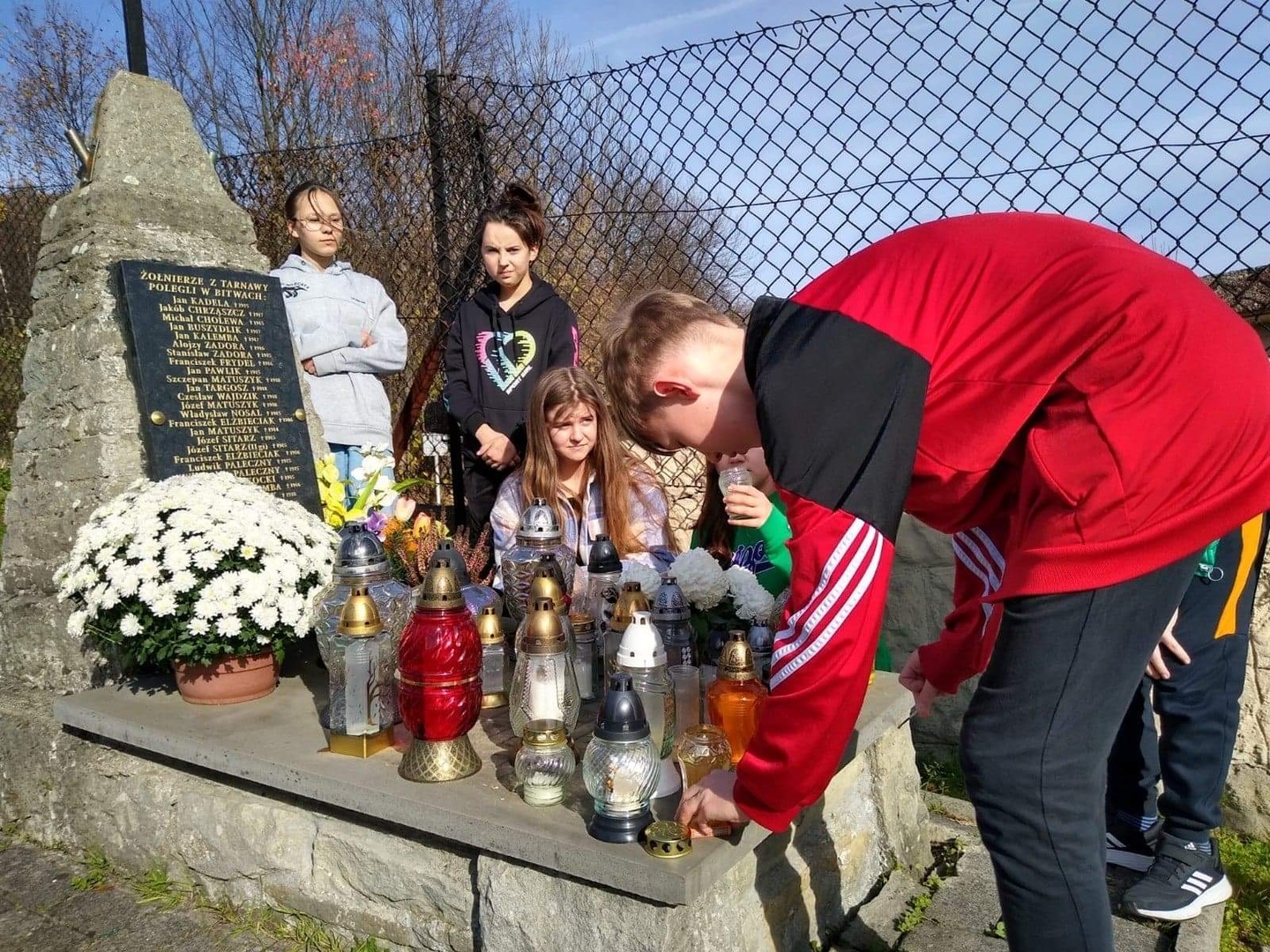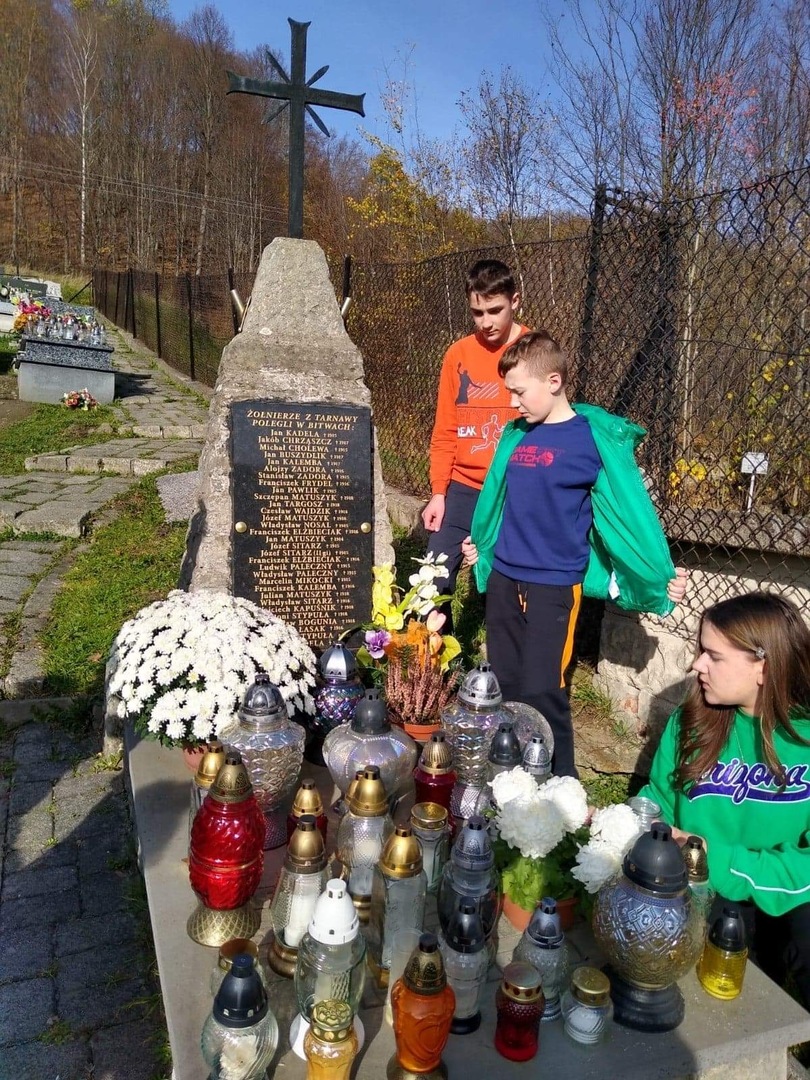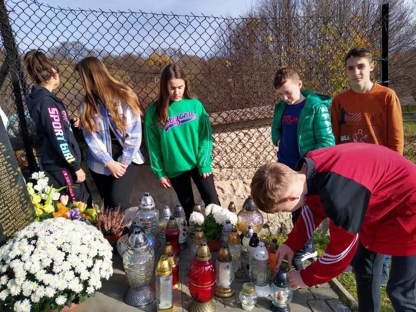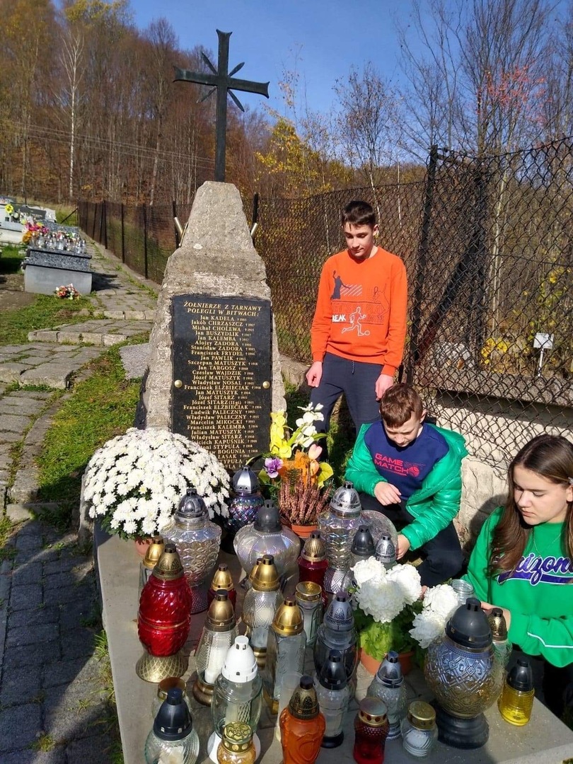 Z okazji zbliżającego się święta odzyskania przez Polskę niepodległości przedstawiciele Samorządu Uczniowskiego przeszli na teren cmentarza parafialnego, by złożyć wiązankę kwiatów i zapalić znicz ku czci i pamięci żołnierzy walczących o wolność Ojczyzny.
