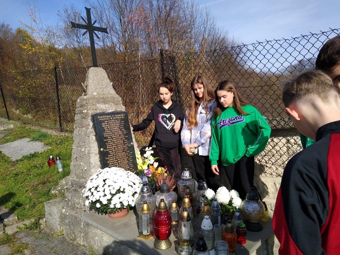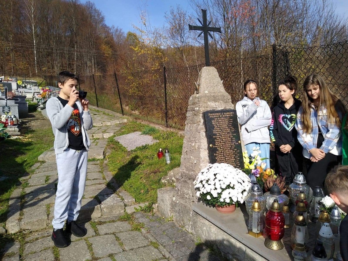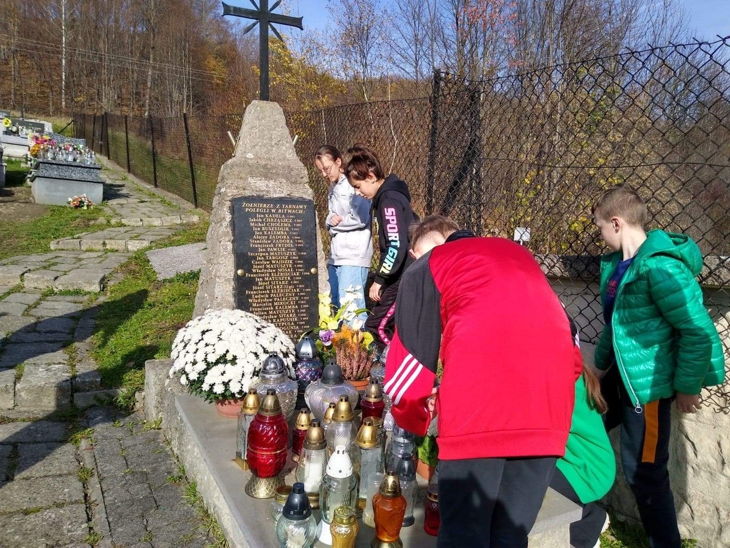 Z okazji zbliżającego się święta odzyskania przez Polskę niepodległości przedstawiciele Samorządu Uczniowskiego przeszli na teren cmentarza parafialnego, by złożyć wiązankę kwiatów i zapalić znicz ku czci i pamięci żołnierzy walczących o wolność Ojczyzny.