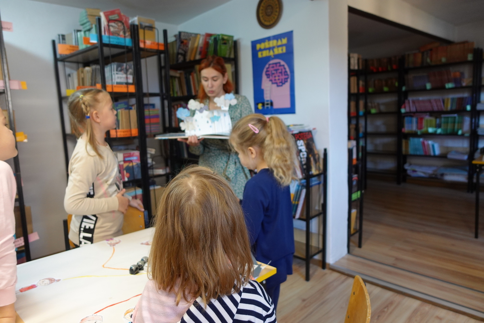 Oprócz kodowania drogi do biblioteki dla robotów, czekał na nich quiz oraz zabawa z książkami, które nie służą tylko do czytania ;)