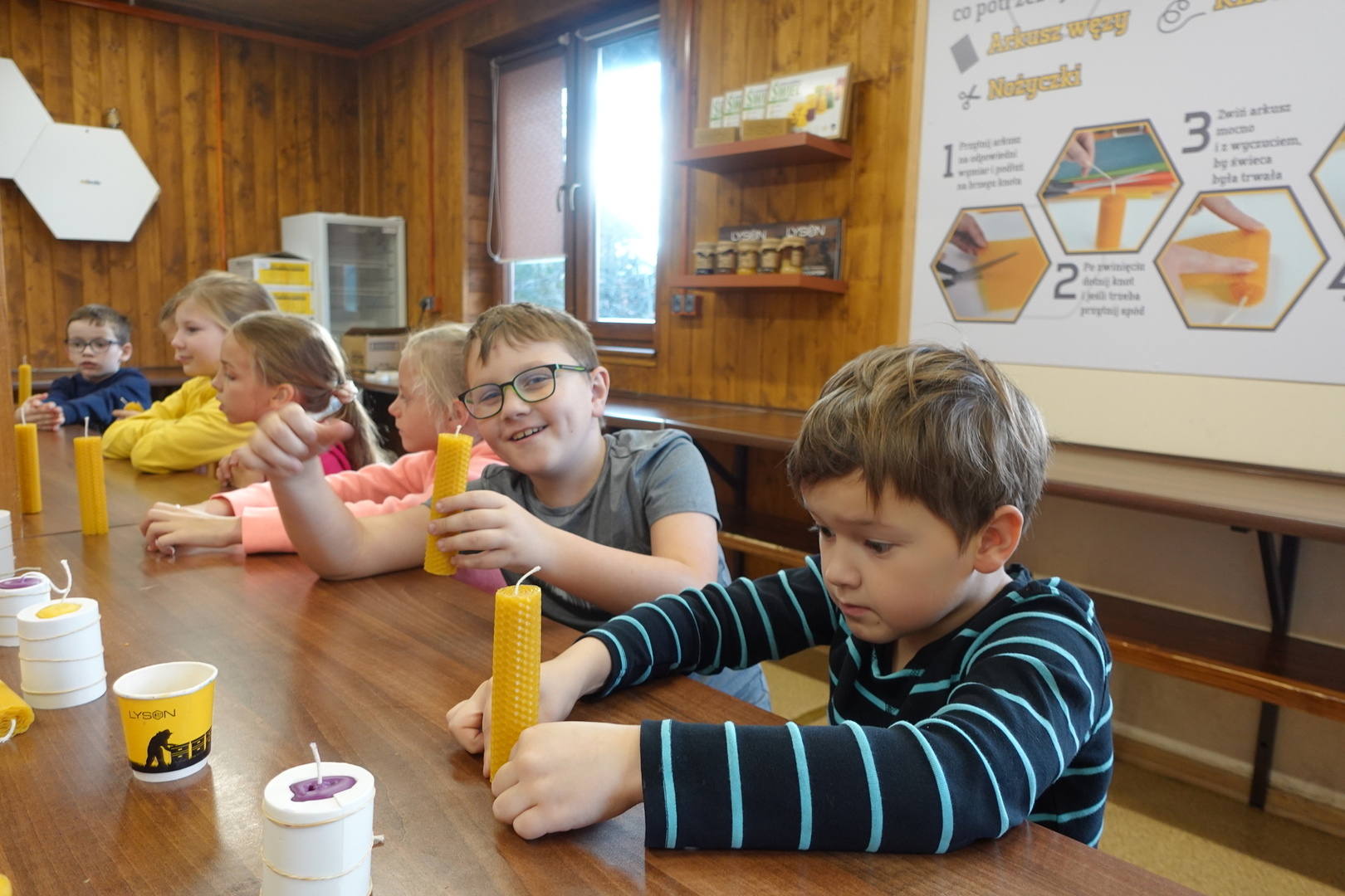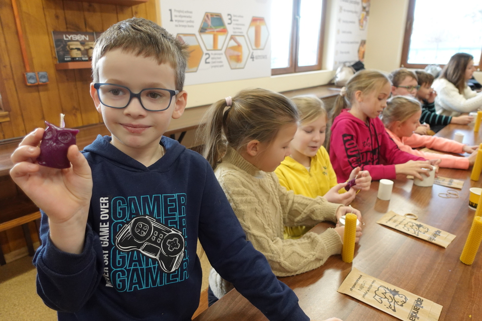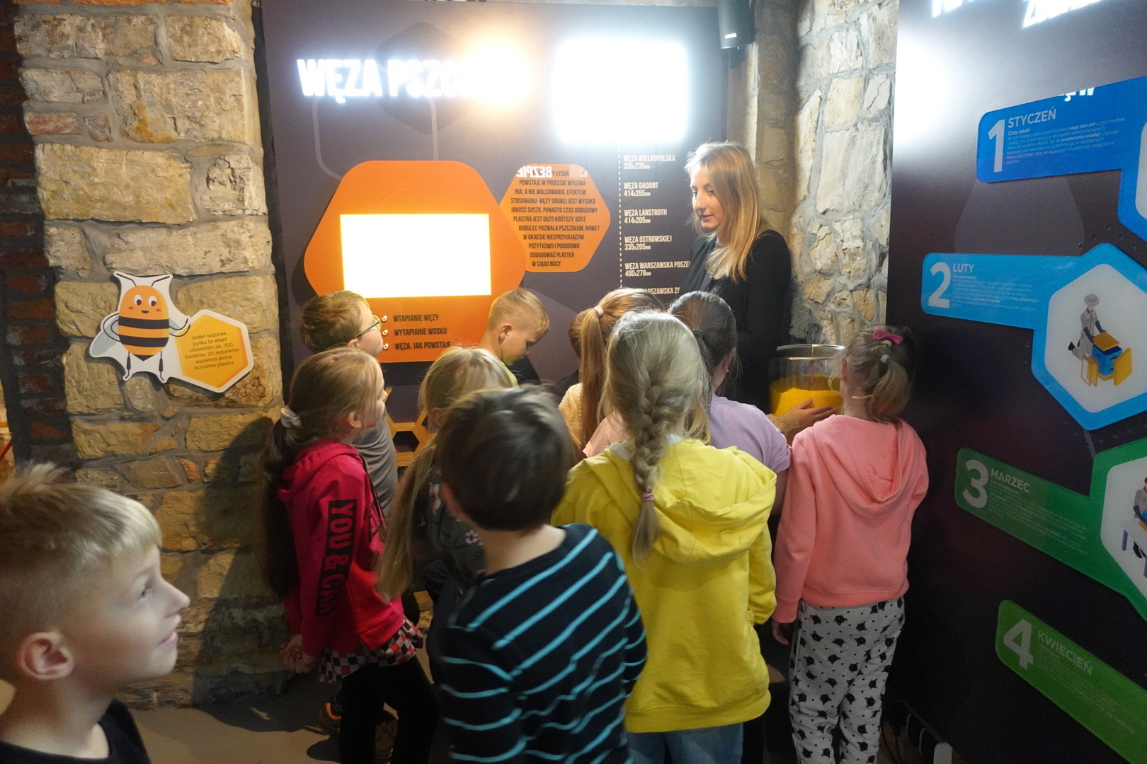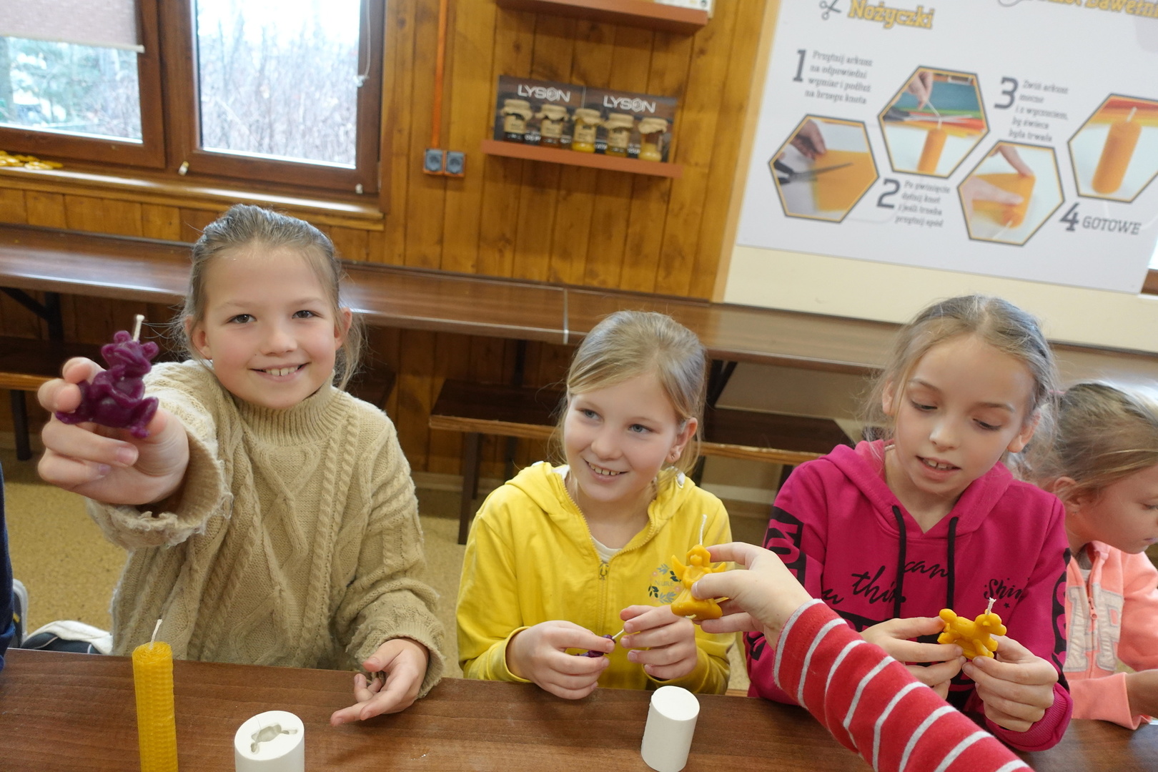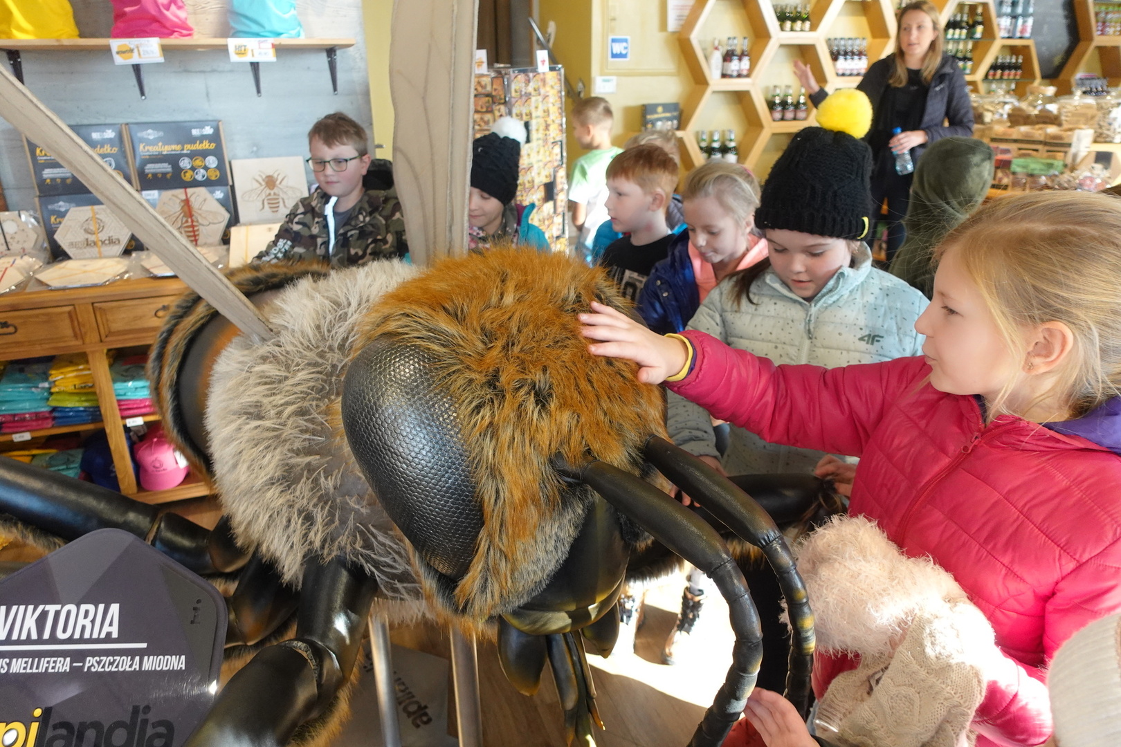 28 listopada dzieci z klas 1-3 miały okazję uczestniczyć w wycieczce do Interaktywnego Centrum Pszczelarskiego Apilandia w Kleczy Dolnej. Podczas tej wyprawy nie tylko odkryli tajemnice pszczół, ale także mogli zajrzeć do wnętrza prawdziwego ula, zobaczyć rury, którymi płynie miód, zapoznać się z największą pszczołą w Europie oraz samodzielnie wykonać dwie różne świece, które następnie zabrali ze sobą. Podczas warsztatów degustowali nie tylko miód, ale także drogocenny pyłek, który słynie z właściwości prozdrowotnych.