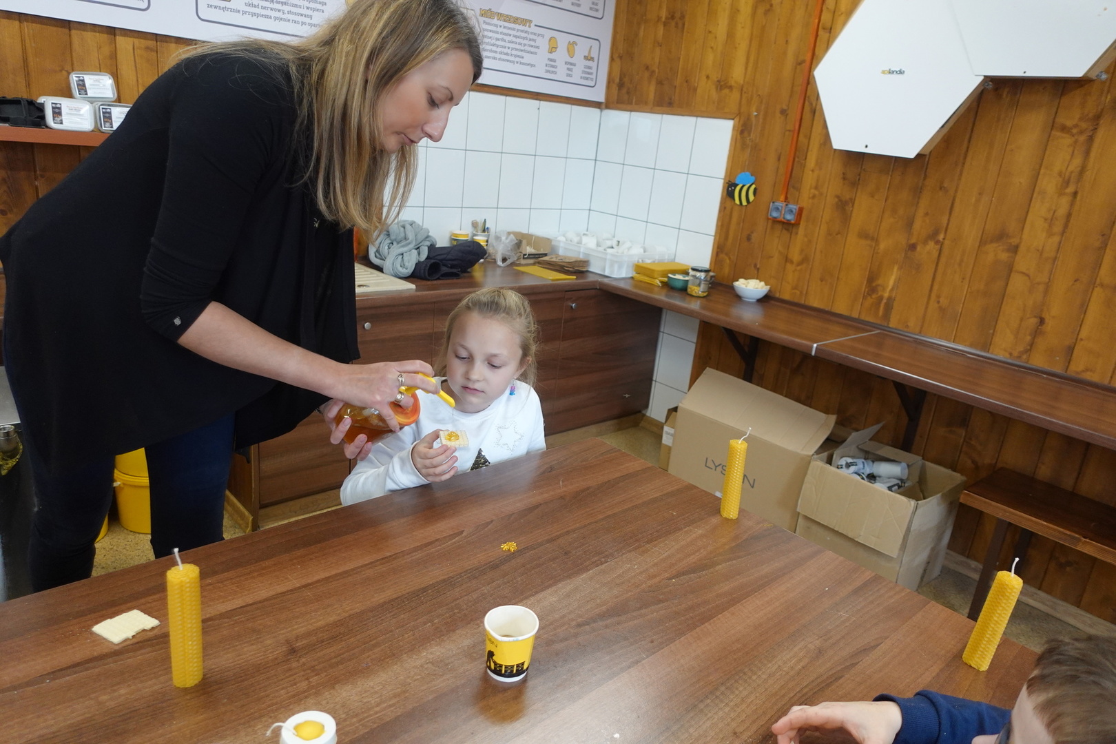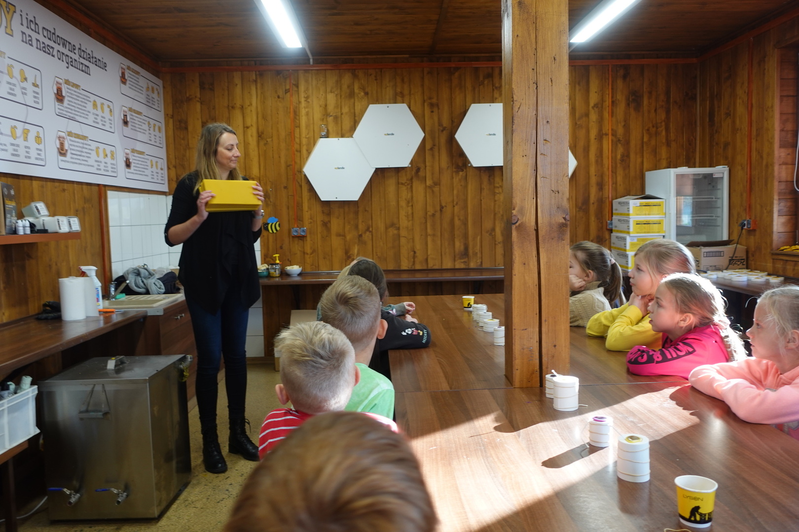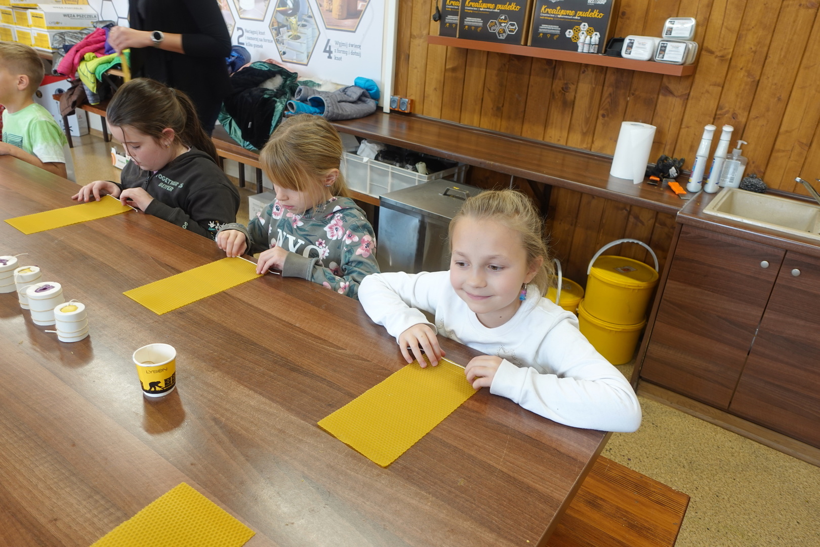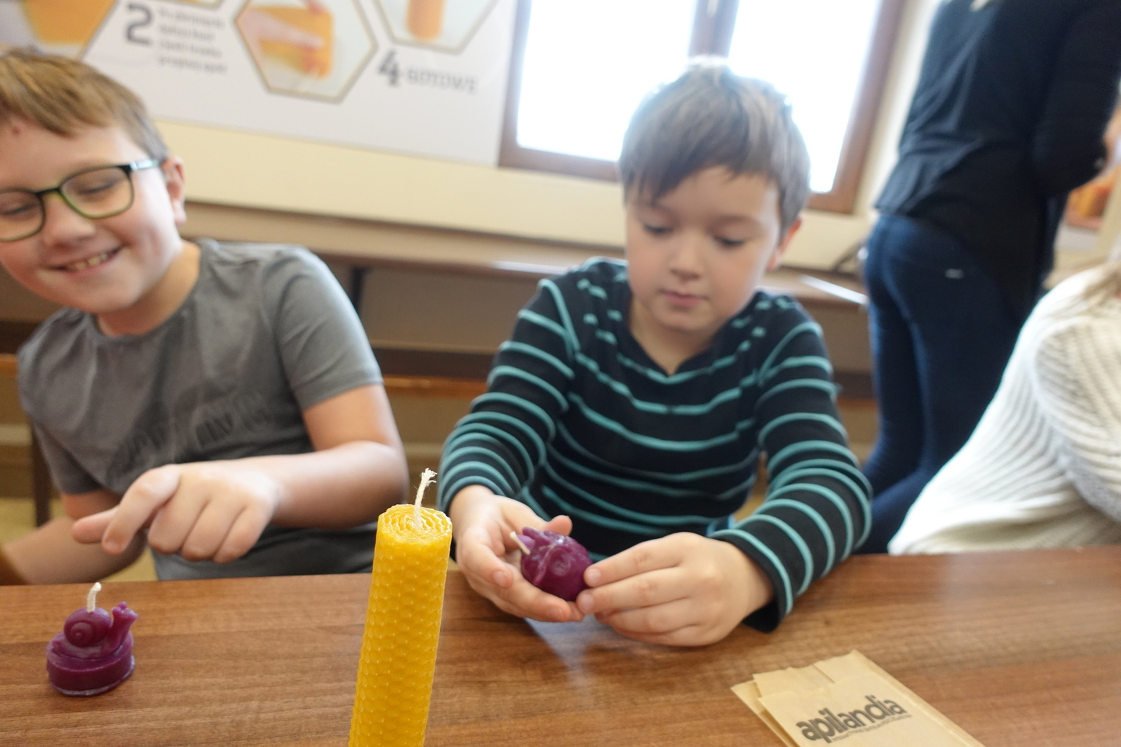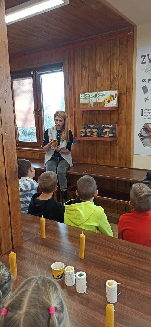 28 listopada dzieci z klas 1-3 miały okazję uczestniczyć w wycieczce do Interaktywnego Centrum Pszczelarskiego Apilandia w Kleczy Dolnej. Podczas tej wyprawy nie tylko odkryli tajemnice pszczół, ale także mogli zajrzeć do wnętrza prawdziwego ula, zobaczyć rury, którymi płynie miód, zapoznać się z największą pszczołą w Europie oraz samodzielnie wykonać dwie różne świece, które następnie zabrali ze sobą. Podczas warsztatów degustowali nie tylko miód, ale także drogocenny pyłek, który słynie z właściwości prozdrowotnych.