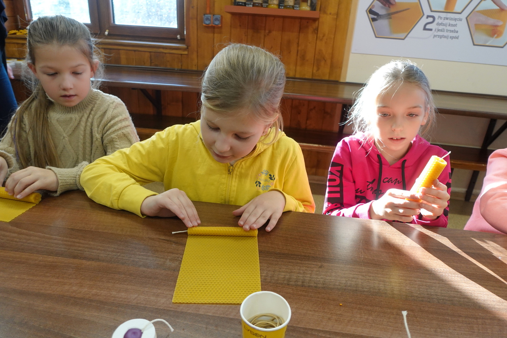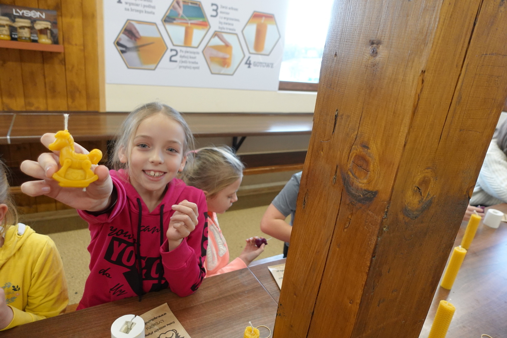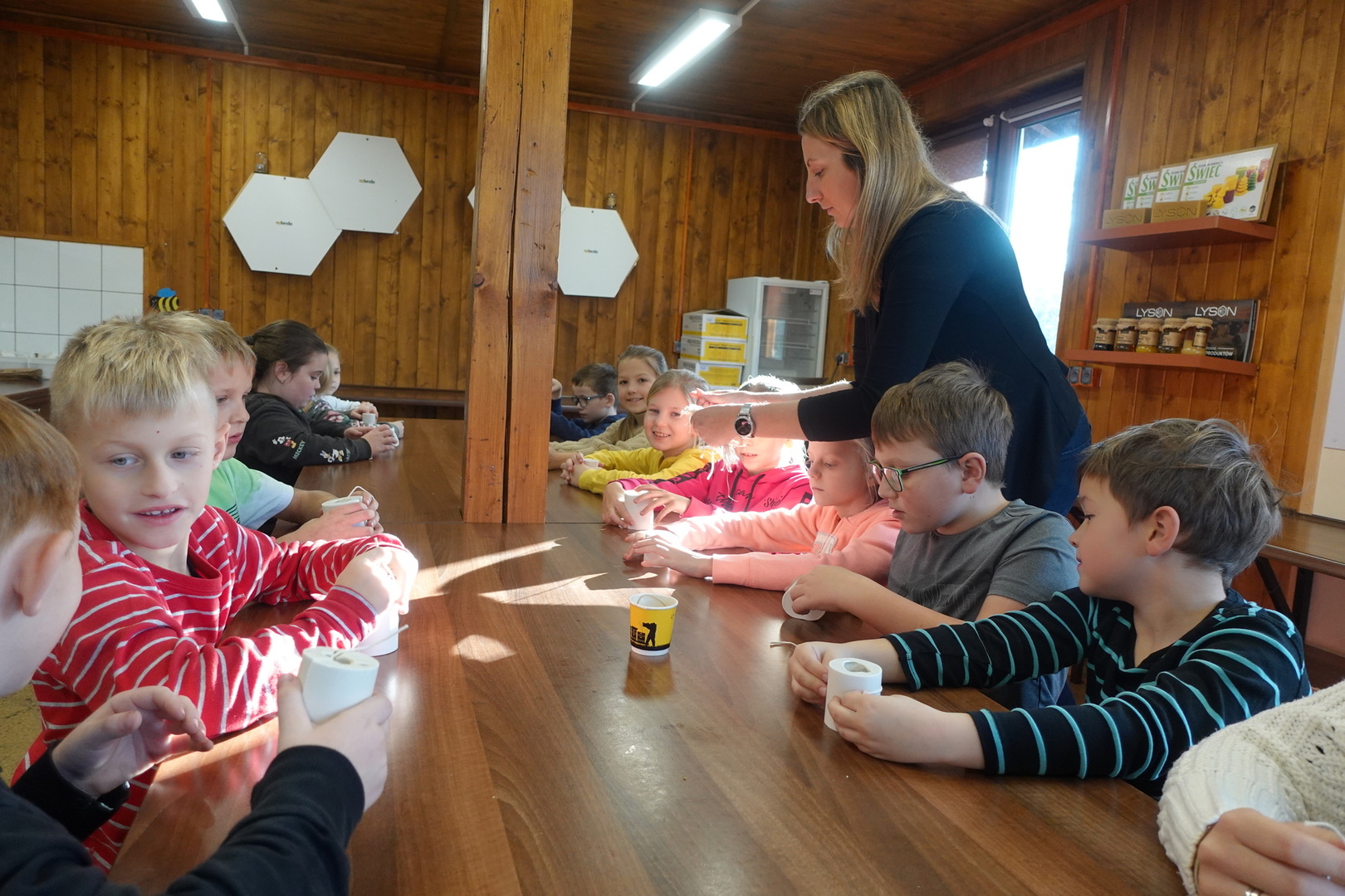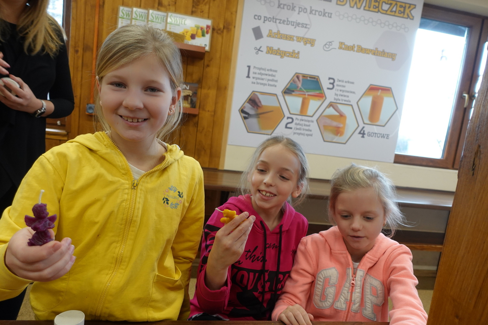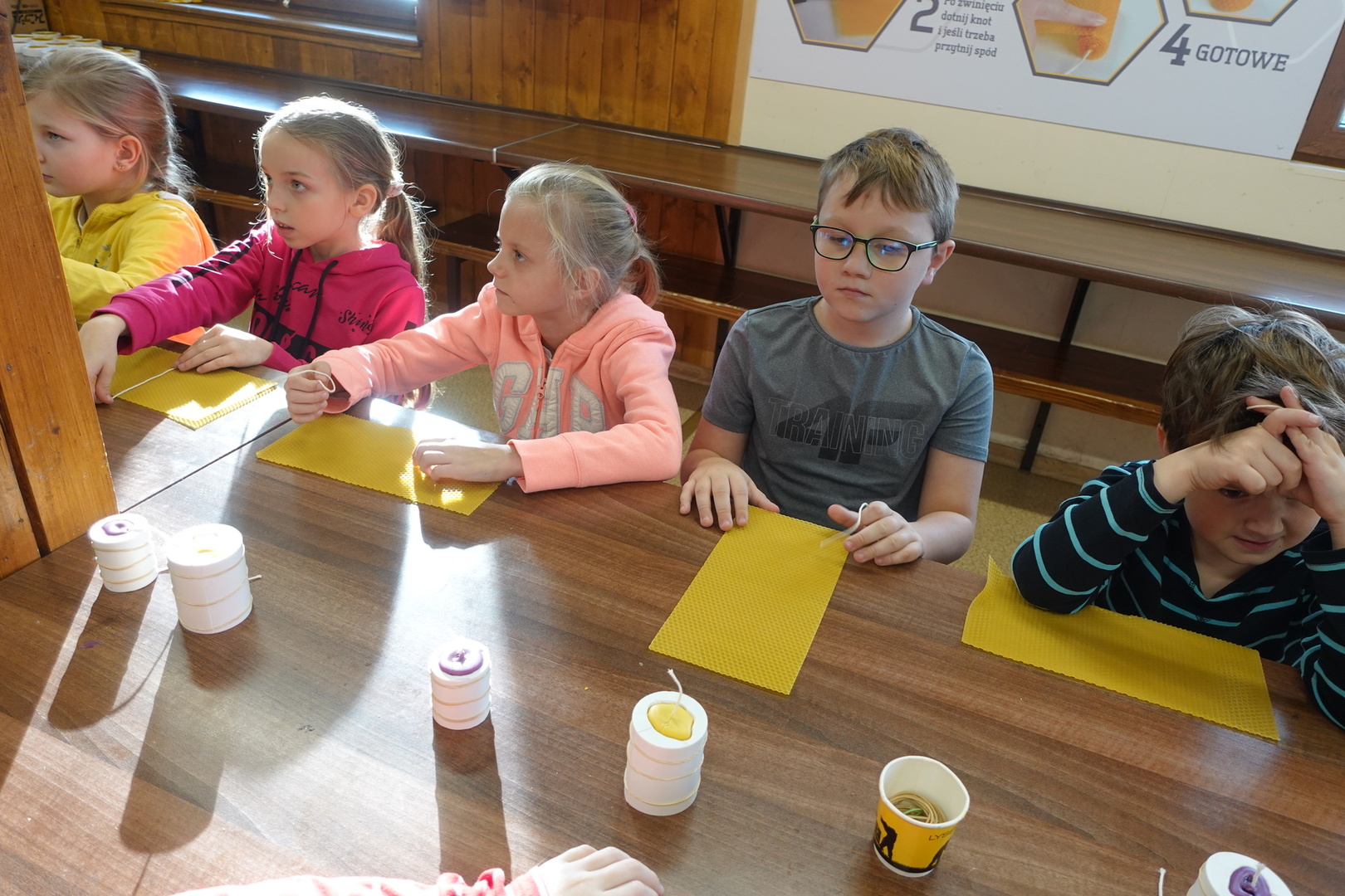28 listopada dzieci z klas 1-3 miały okazję uczestniczyć w wycieczce do Interaktywnego Centrum Pszczelarskiego Apilandia w Kleczy Dolnej. Podczas tej wyprawy nie tylko odkryli tajemnice pszczół, ale także mogli zajrzeć do wnętrza prawdziwego ula, zobaczyć rury, którymi płynie miód, zapoznać się z największą pszczołą w Europie oraz samodzielnie wykonać dwie różne świece, które następnie zabrali ze sobą. Podczas warsztatów degustowali nie tylko miód, ale także drogocenny pyłek, który słynie z właściwości prozdrowotnych.