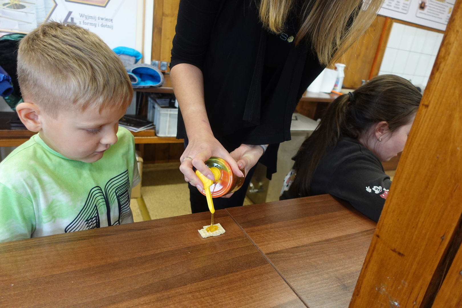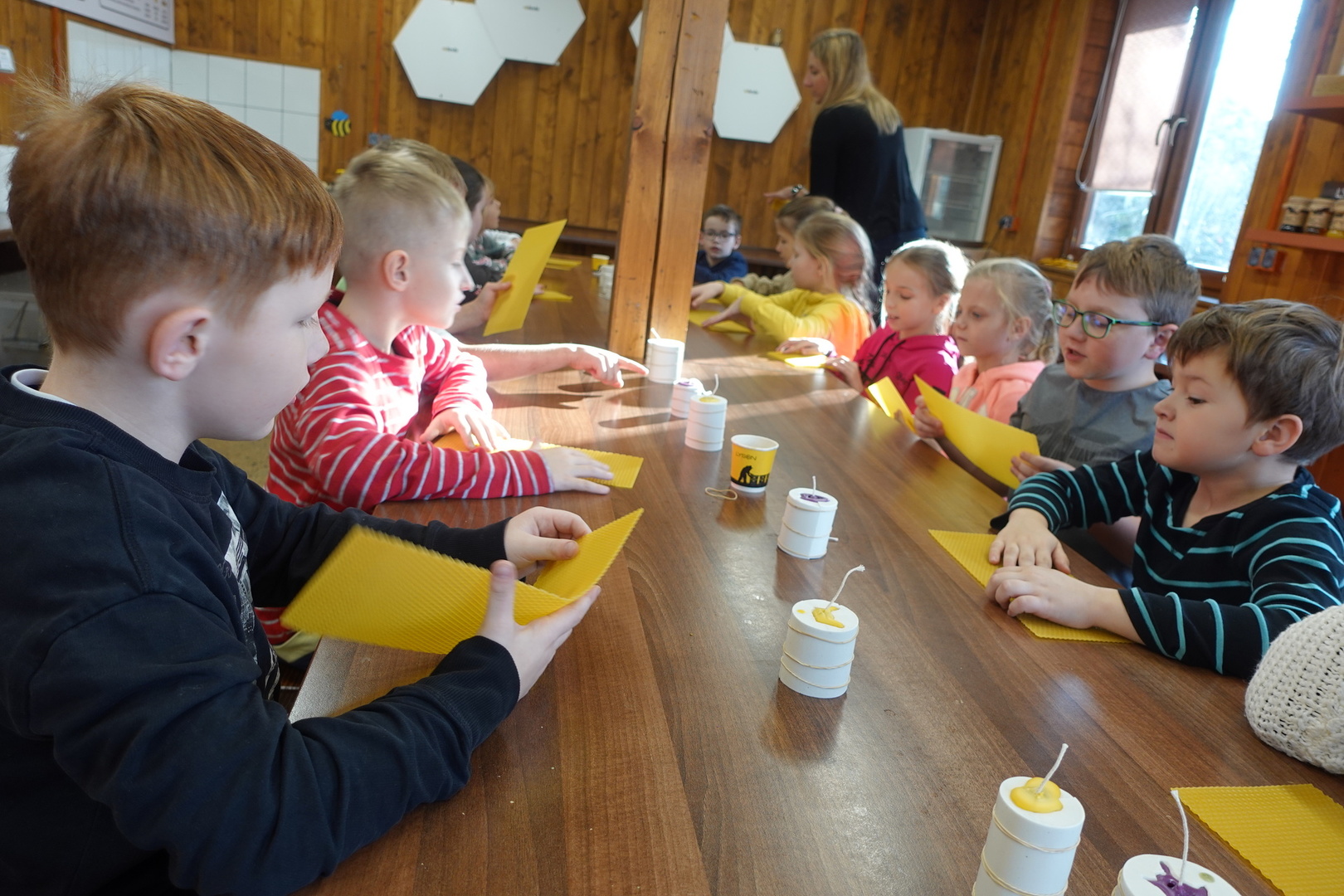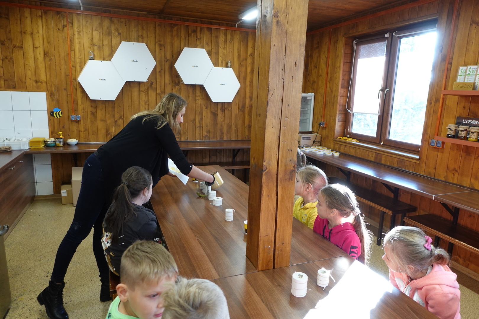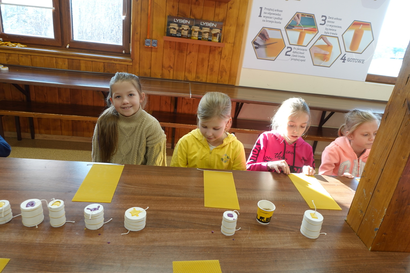 28 listopada dzieci z klas 1-3 miały okazję uczestniczyć w wycieczce do Interaktywnego Centrum Pszczelarskiego Apilandia w Kleczy Dolnej. Podczas tej wyprawy nie tylko odkryli tajemnice pszczół, ale także mogli zajrzeć do wnętrza prawdziwego ula, zobaczyć rury, którymi płynie miód, zapoznać się z największą pszczołą w Europie oraz samodzielnie wykonać dwie różne świece, które następnie zabrali ze sobą. Podczas warsztatów degustowali nie tylko miód, ale także drogocenny pyłek, który słynie z właściwości prozdrowotnych.