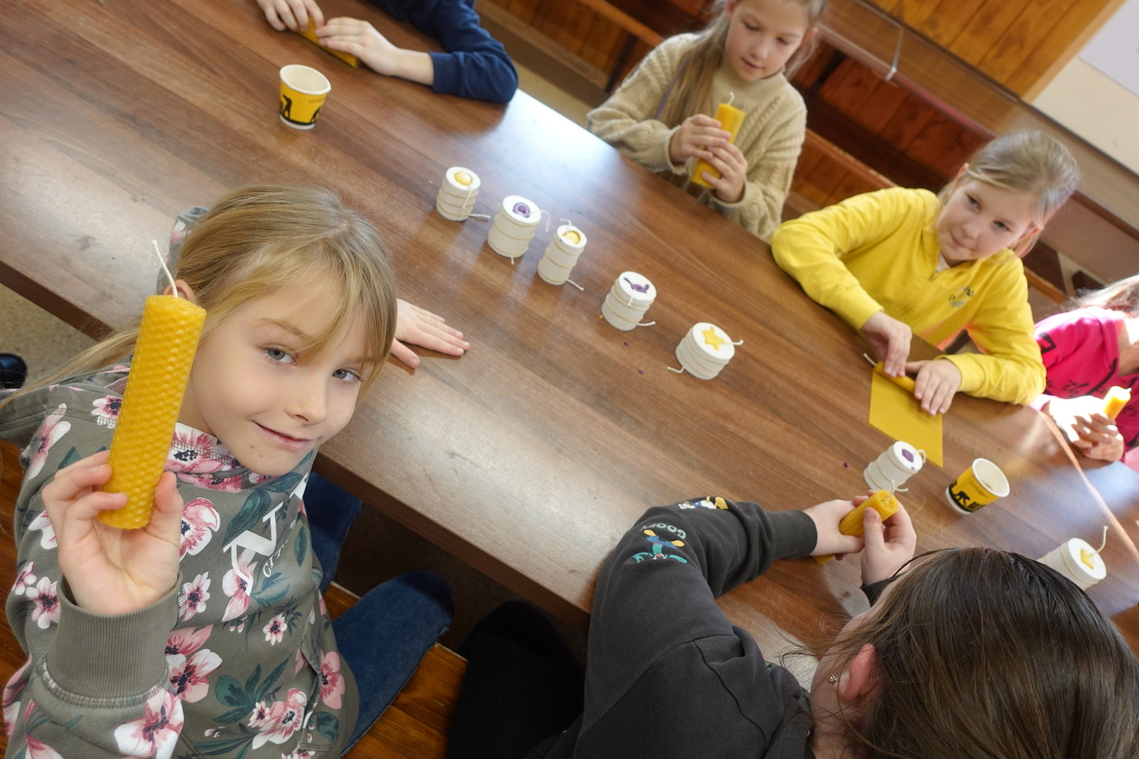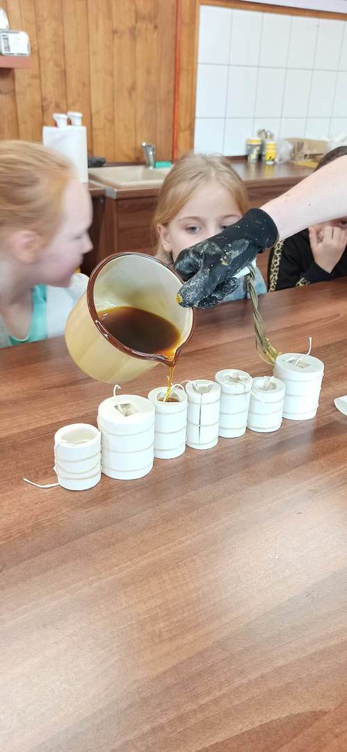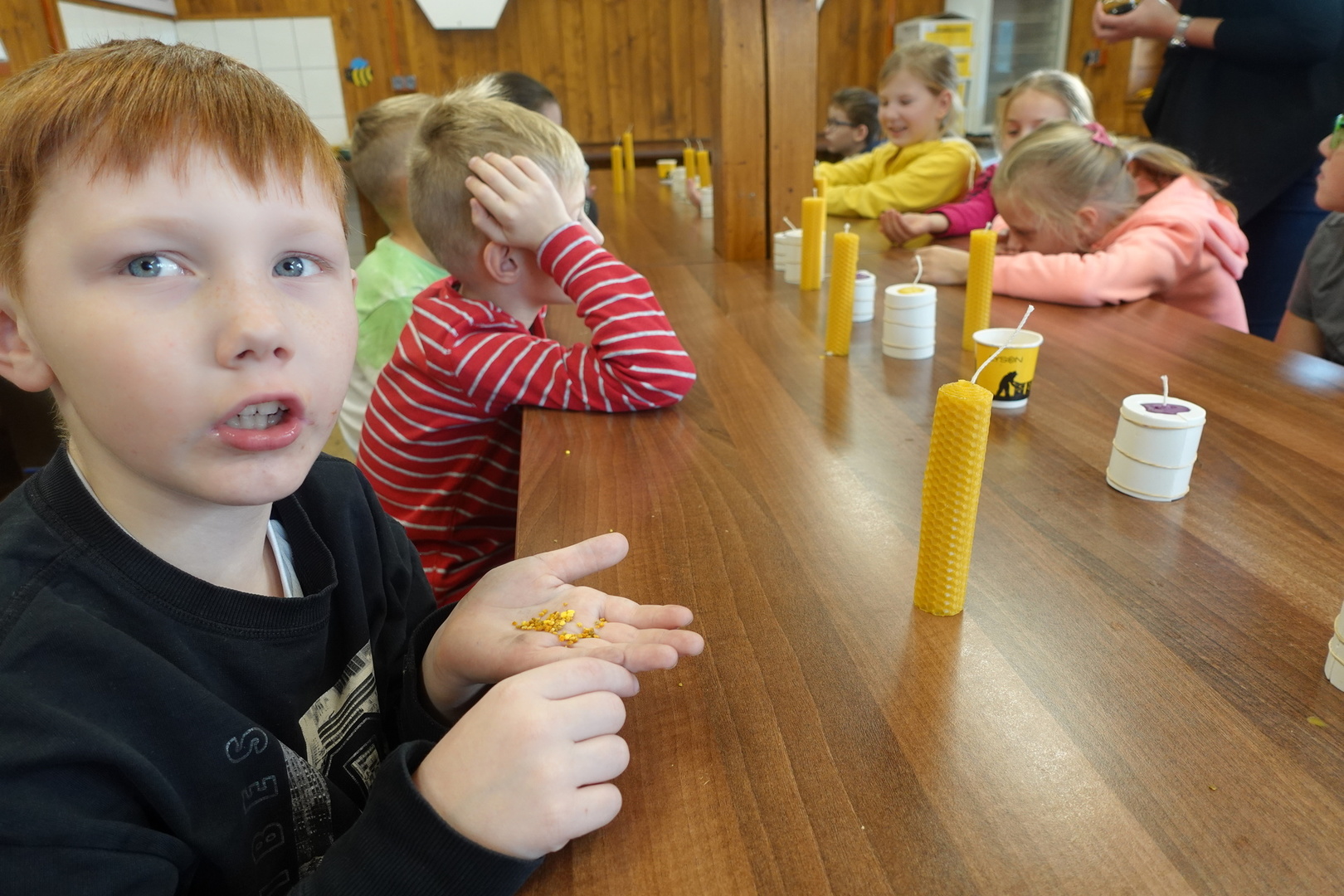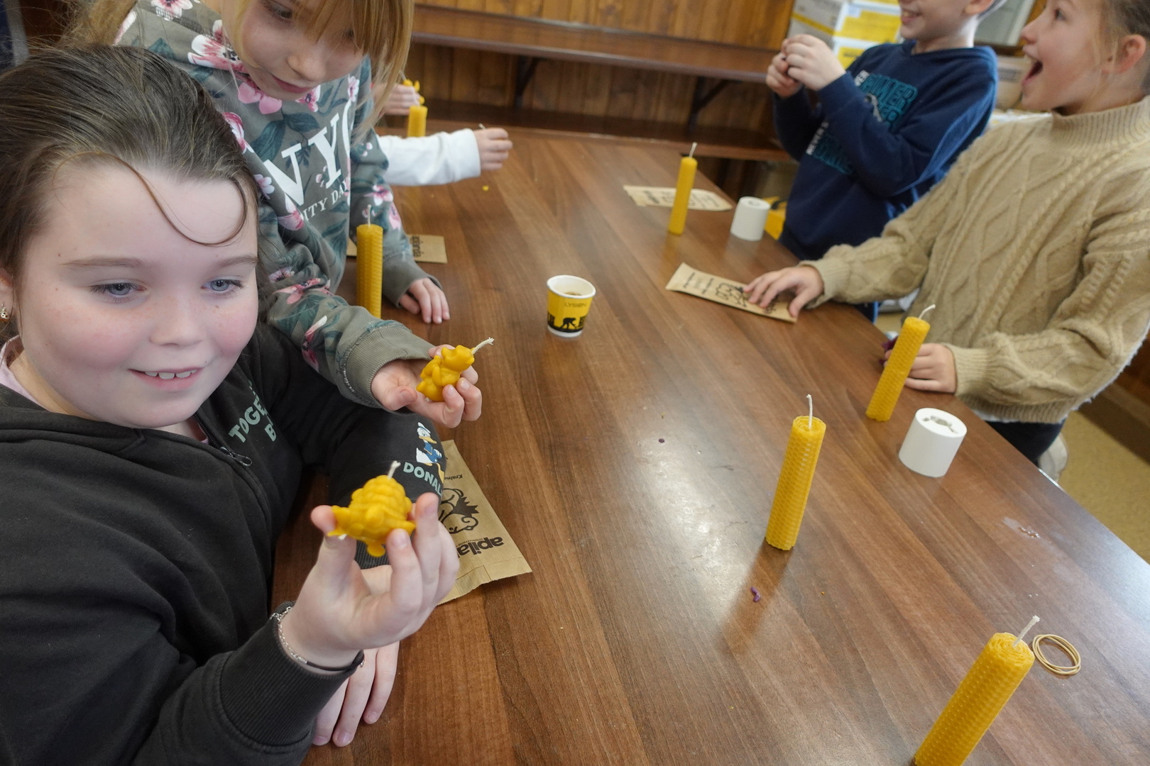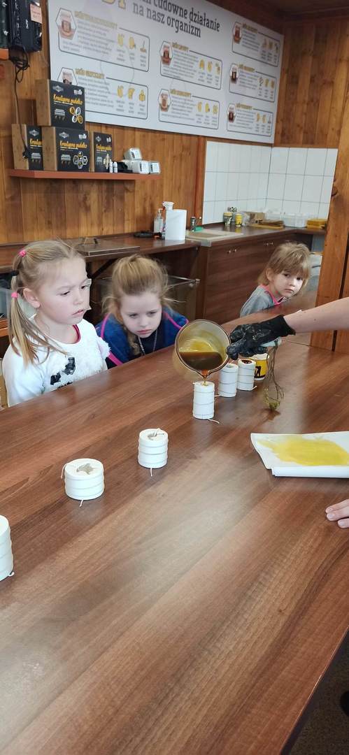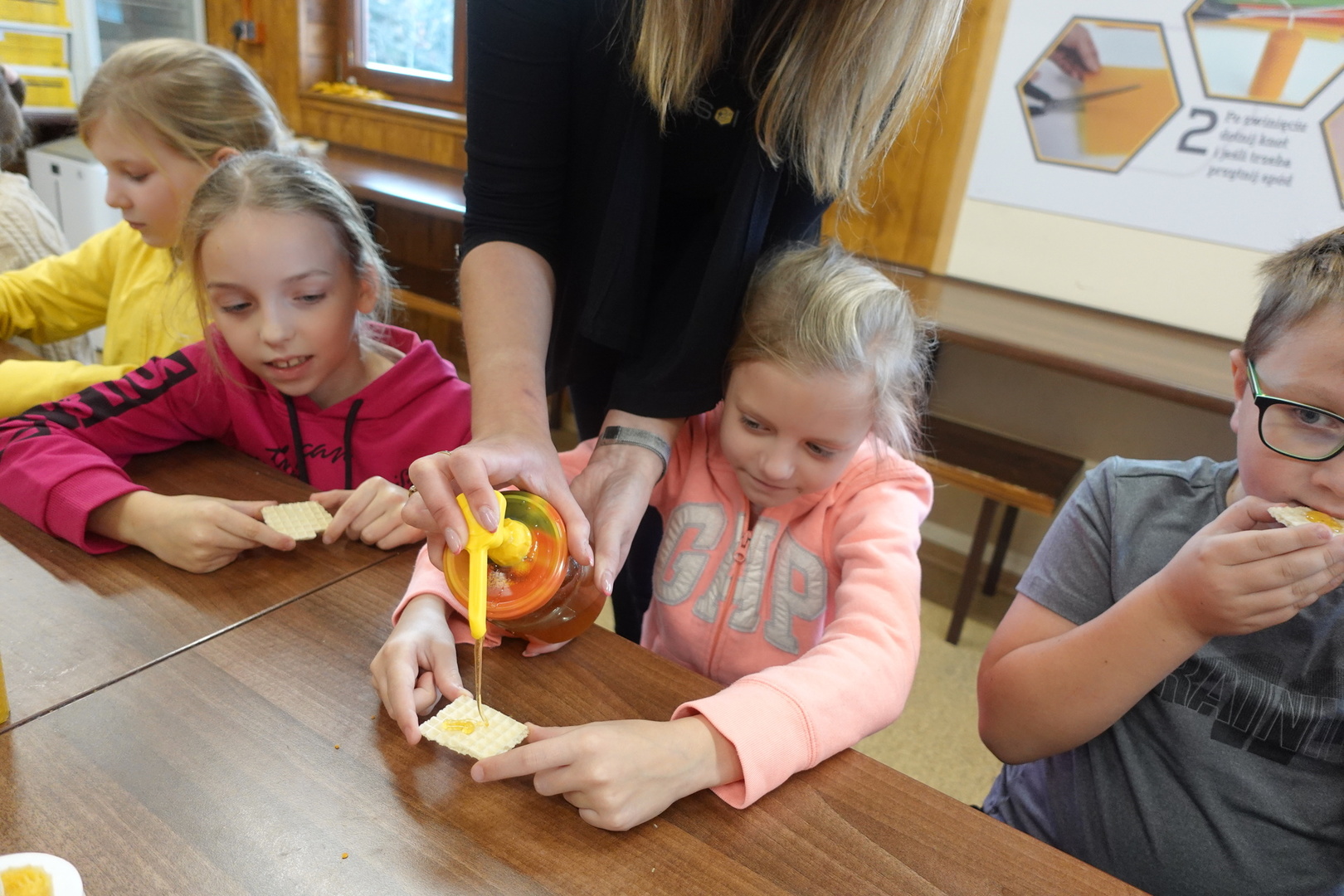 28 listopada dzieci z klas 1-3 miały okazję uczestniczyć w wycieczce do Interaktywnego Centrum Pszczelarskiego Apilandia w Kleczy Dolnej. Podczas tej wyprawy nie tylko odkryli tajemnice pszczół, ale także mogli zajrzeć do wnętrza prawdziwego ula, zobaczyć rury, którymi płynie miód, zapoznać się z największą pszczołą w Europie oraz samodzielnie wykonać dwie różne świece, które następnie zabrali ze sobą. Podczas warsztatów degustowali nie tylko miód, ale także drogocenny pyłek, który słynie z właściwości prozdrowotnych.