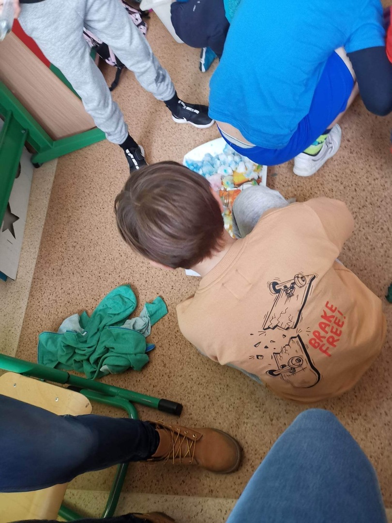 Na zajęciach dodatkowych uczniowie z klas I-III szaleli w białym puchu, a następnie szaleństwo to przenieśli do...klasy!