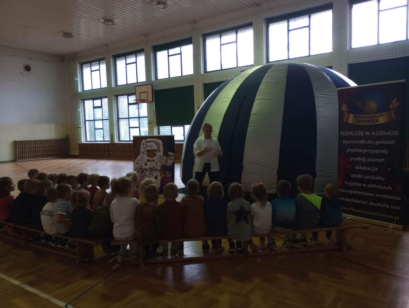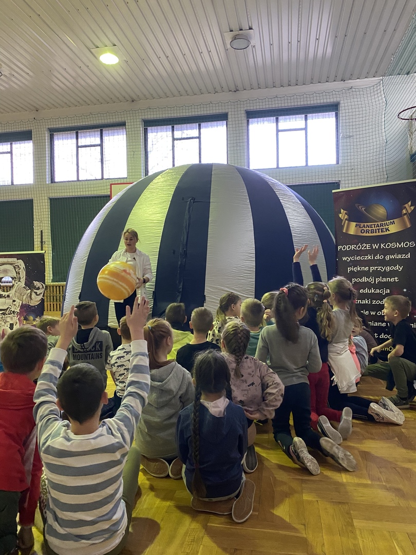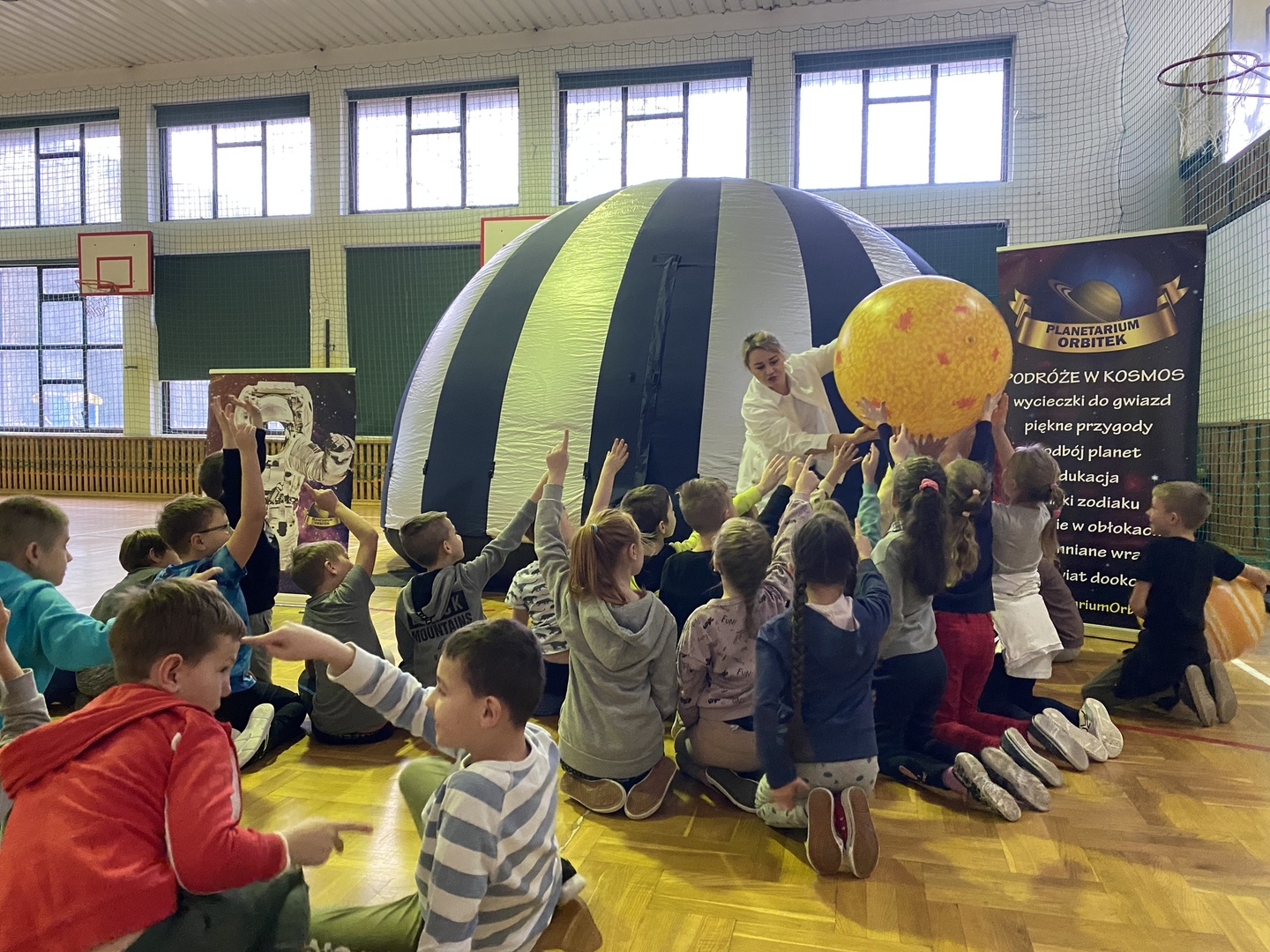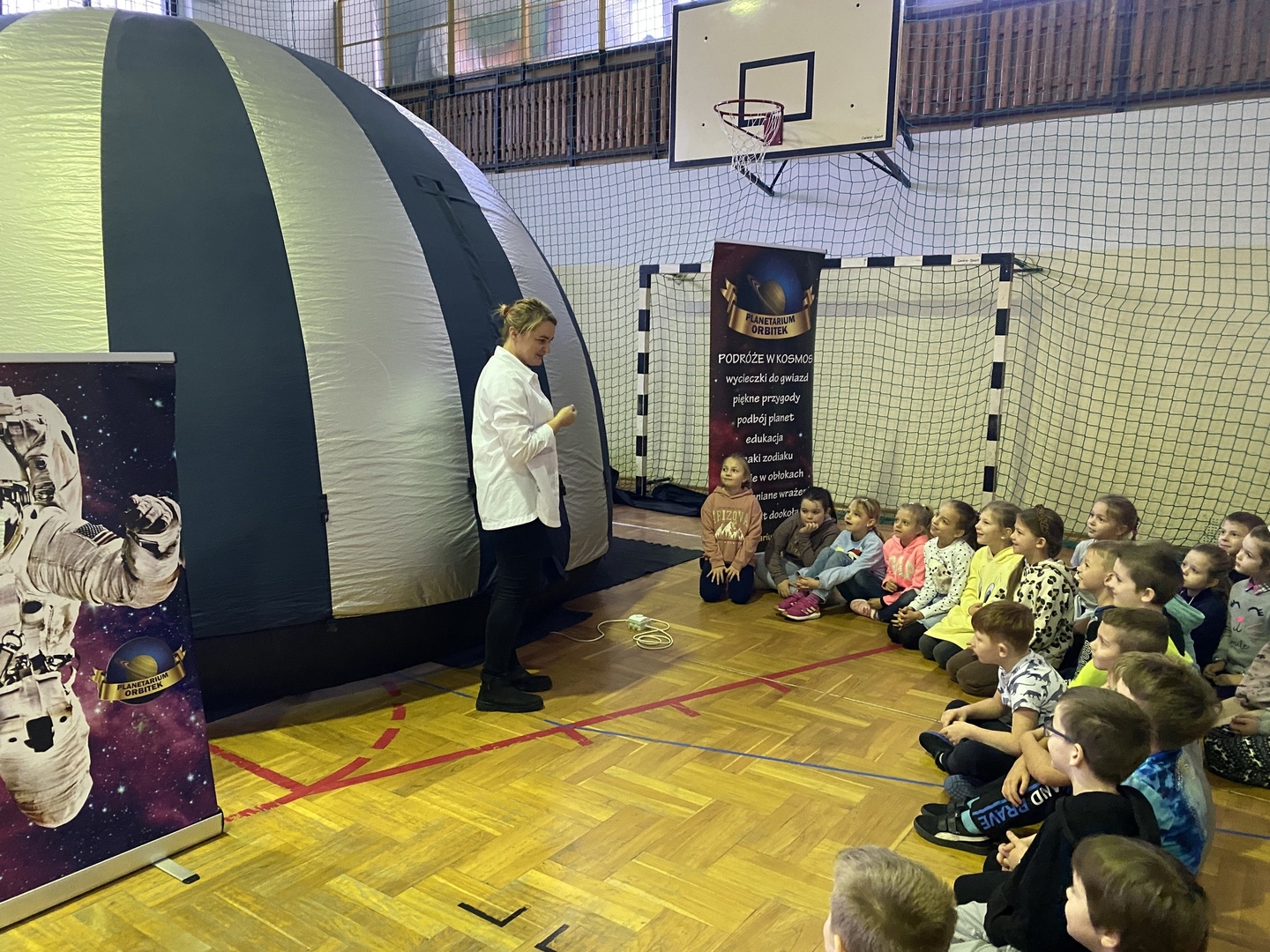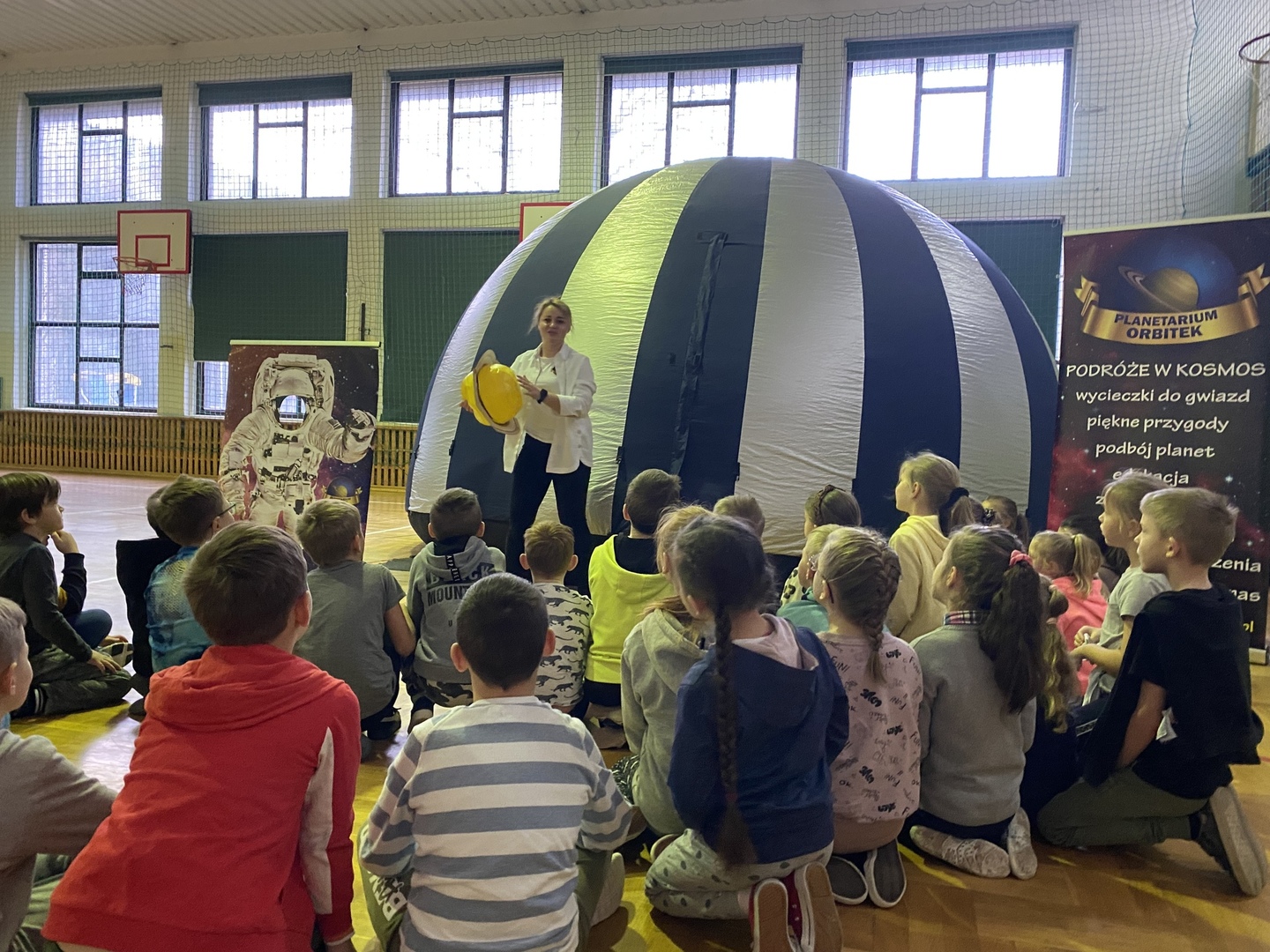 Kosmos i jego tajemnice to dla wielu osób temat zainteresowań. Nic więc dziwnego, że również dzieci są nim żywo zainteresowane. Podczas wizyty w mobilnym planetarium Orbitek, które odwiedziło naszą szkołę 12 stycznia, uczniowie od przedszkola do klasy 8, mieli możliwość zapoznania się z filmami oraz informacjami dostosowanymi do ich wieku. Dzięki fantastycznej Pani, która odpowiadała o poszczególnych planetach i gwiazdach, czas mijał nam wszystkim niepostrzeżenie :)