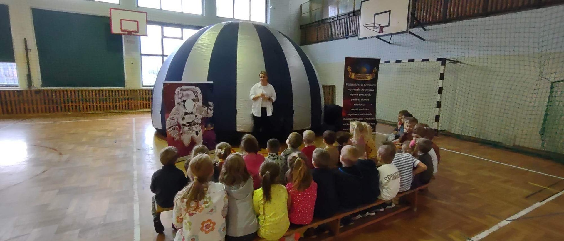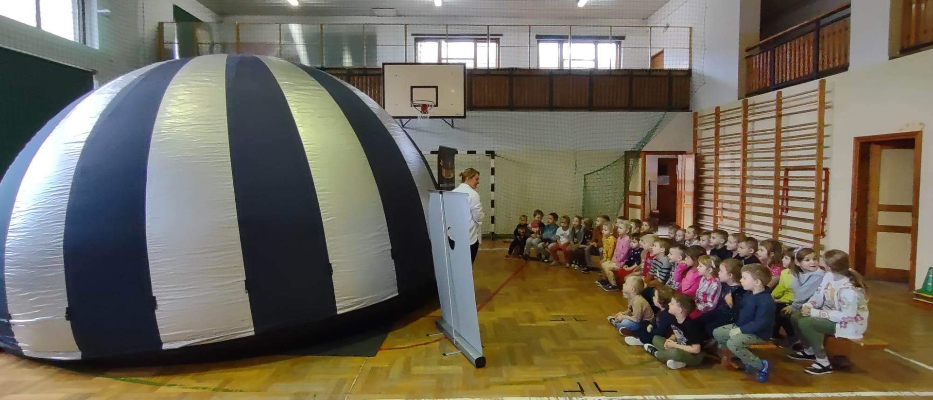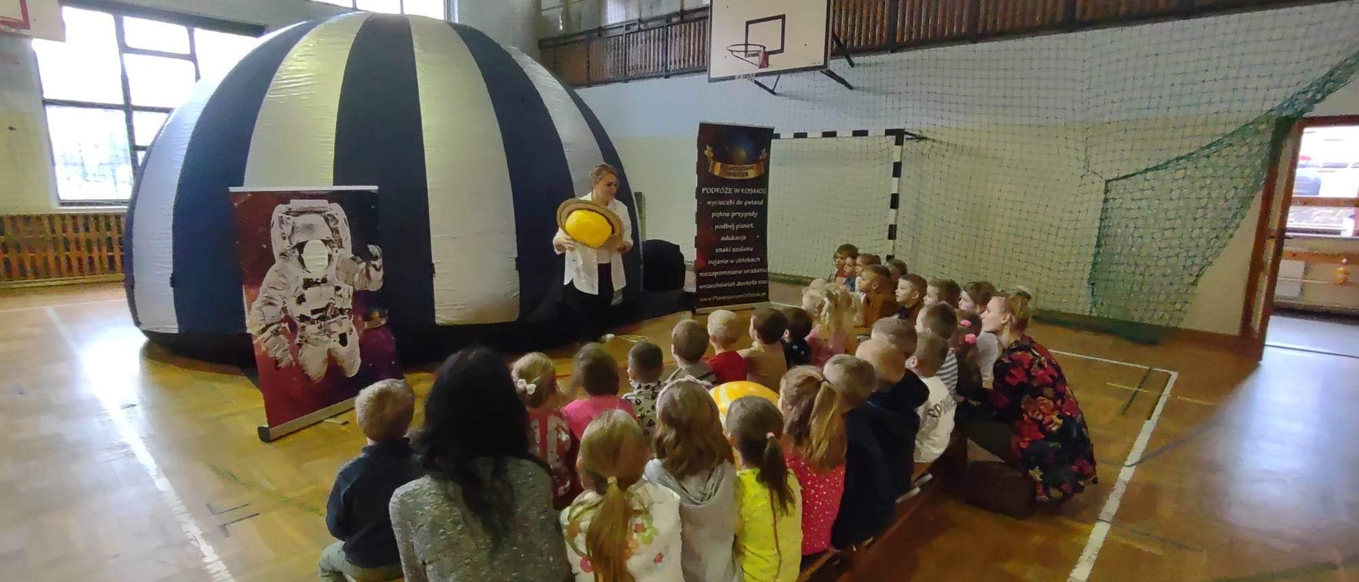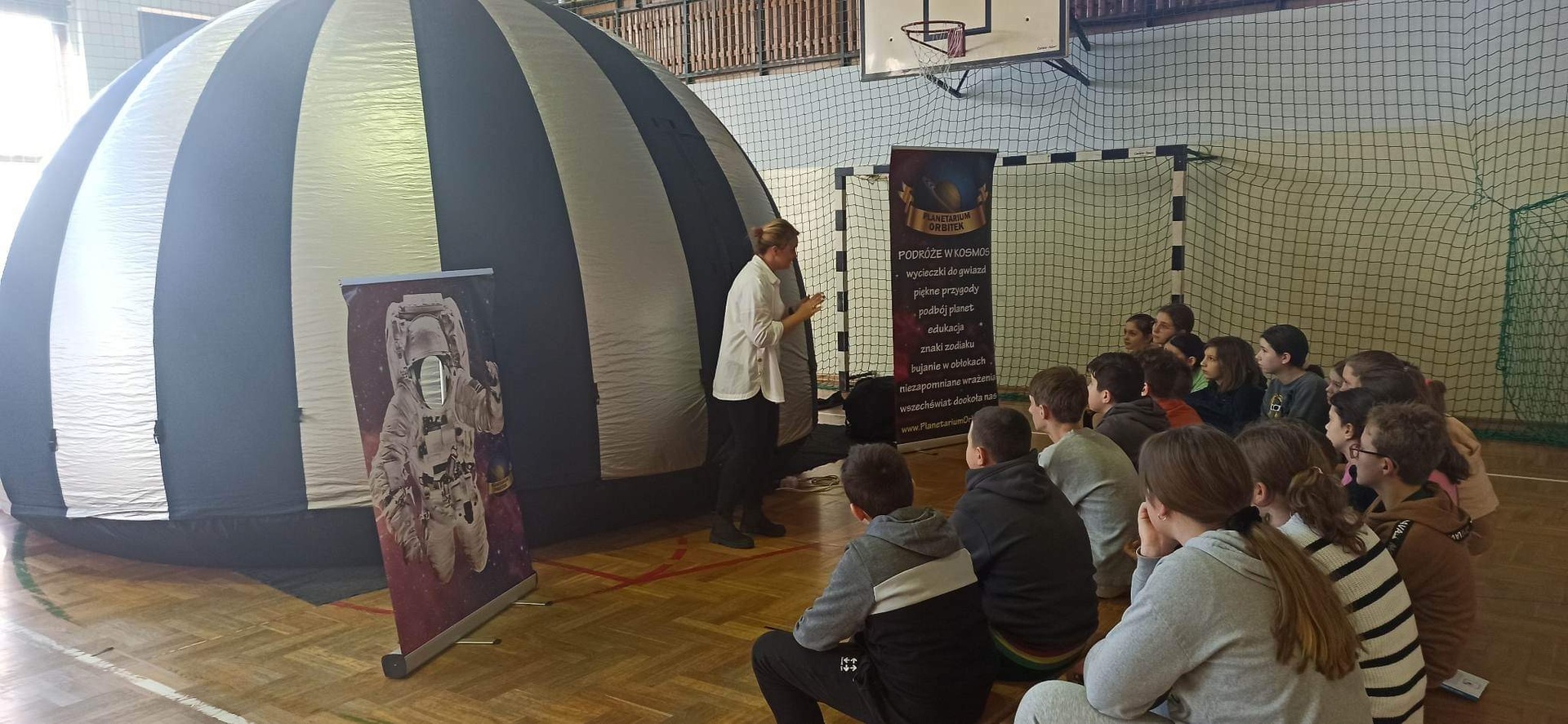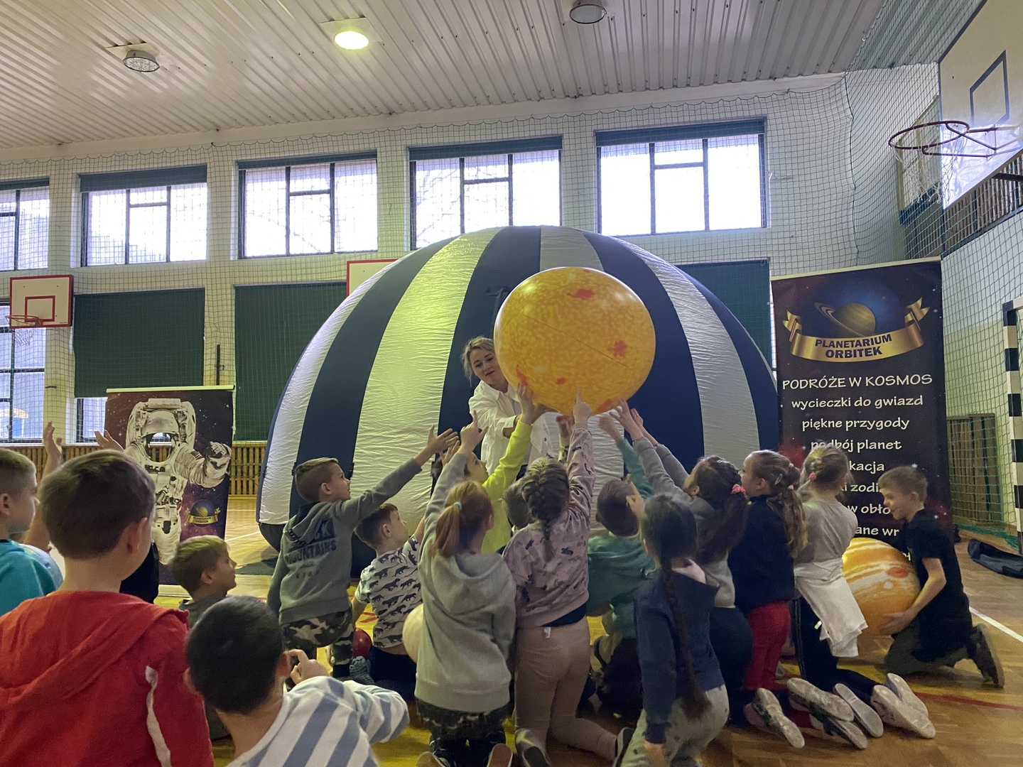 Kosmos i jego tajemnice to dla wielu osób temat zainteresowań. Nic więc dziwnego, że również dzieci są nim żywo zainteresowane. Podczas wizyty w mobilnym planetarium Orbitek, które odwiedziło naszą szkołę 12 stycznia, uczniowie od przedszkola do klasy 8, mieli możliwość zapoznania się z filmami oraz informacjami dostosowanymi do ich wieku. Dzięki fantastycznej Pani, która odpowiadała o poszczególnych planetach i gwiazdach, czas mijał nam wszystkim niepostrzeżenie :)