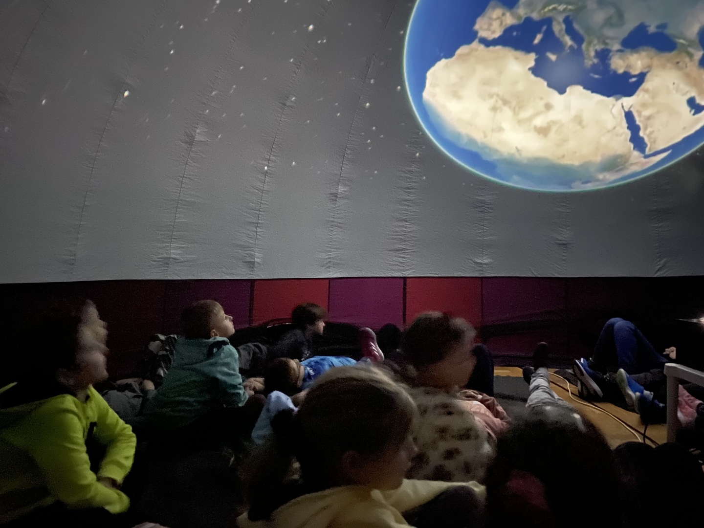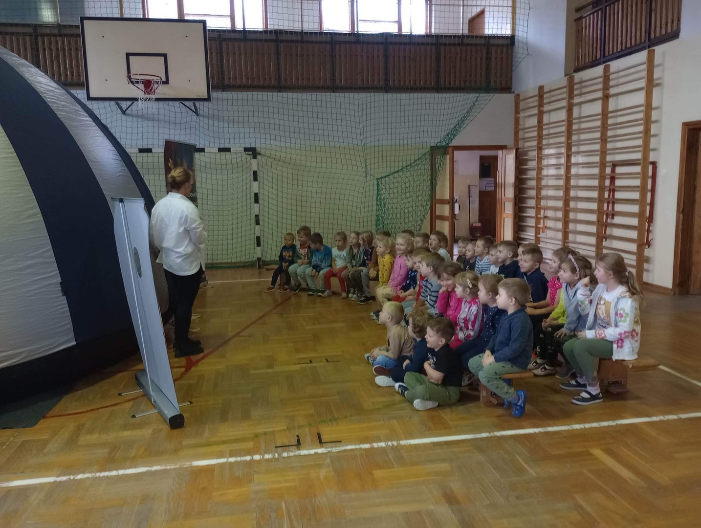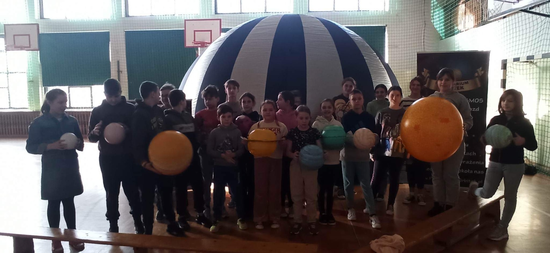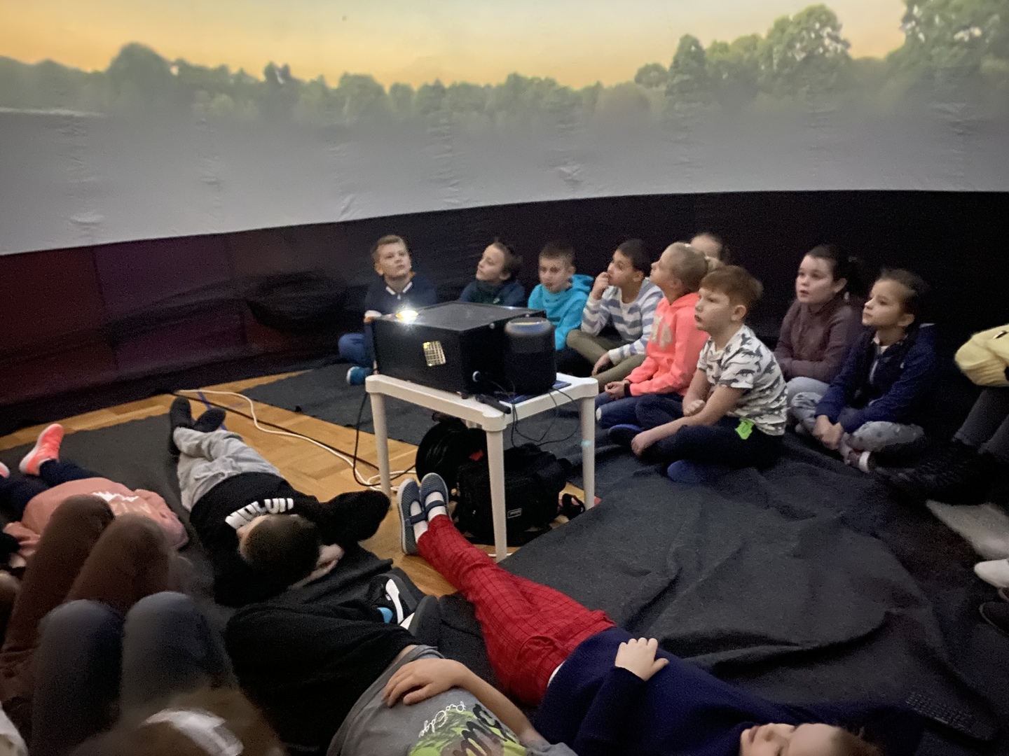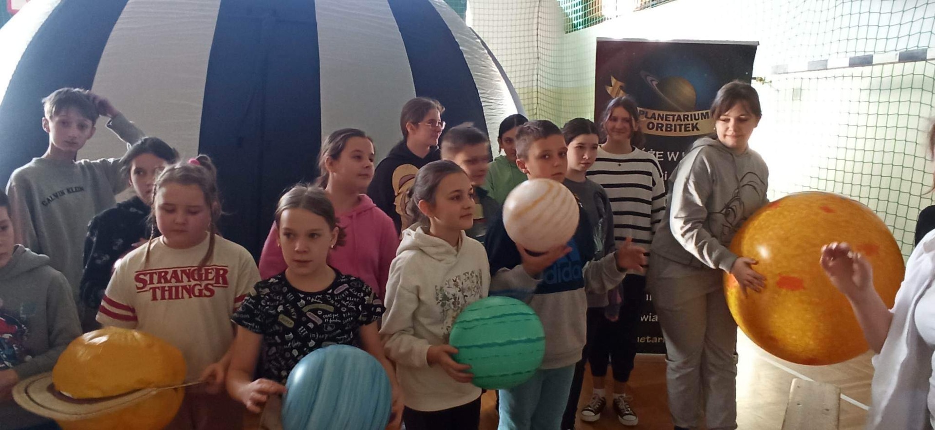 Kosmos i jego tajemnice to dla wielu osób temat zainteresowań. Nic więc dziwnego, że również dzieci są nim żywo zainteresowane. Podczas wizyty w mobilnym planetarium Orbitek, które odwiedziło naszą szkołę 12 stycznia, uczniowie od przedszkola do klasy 8, mieli możliwość zapoznania się z filmami oraz informacjami dostosowanymi do ich wieku. Dzięki fantastycznej Pani, która odpowiadała o poszczególnych planetach i gwiazdach, czas mijał nam wszystkim niepostrzeżenie :)