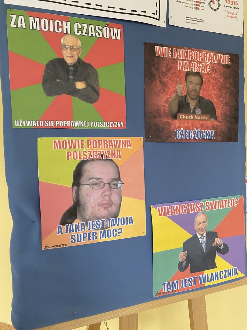 Dodatkowo na szkolnym korytarzu umieszczona została gazetka, przypominająca o tym jakich błędów nie popełniać :)