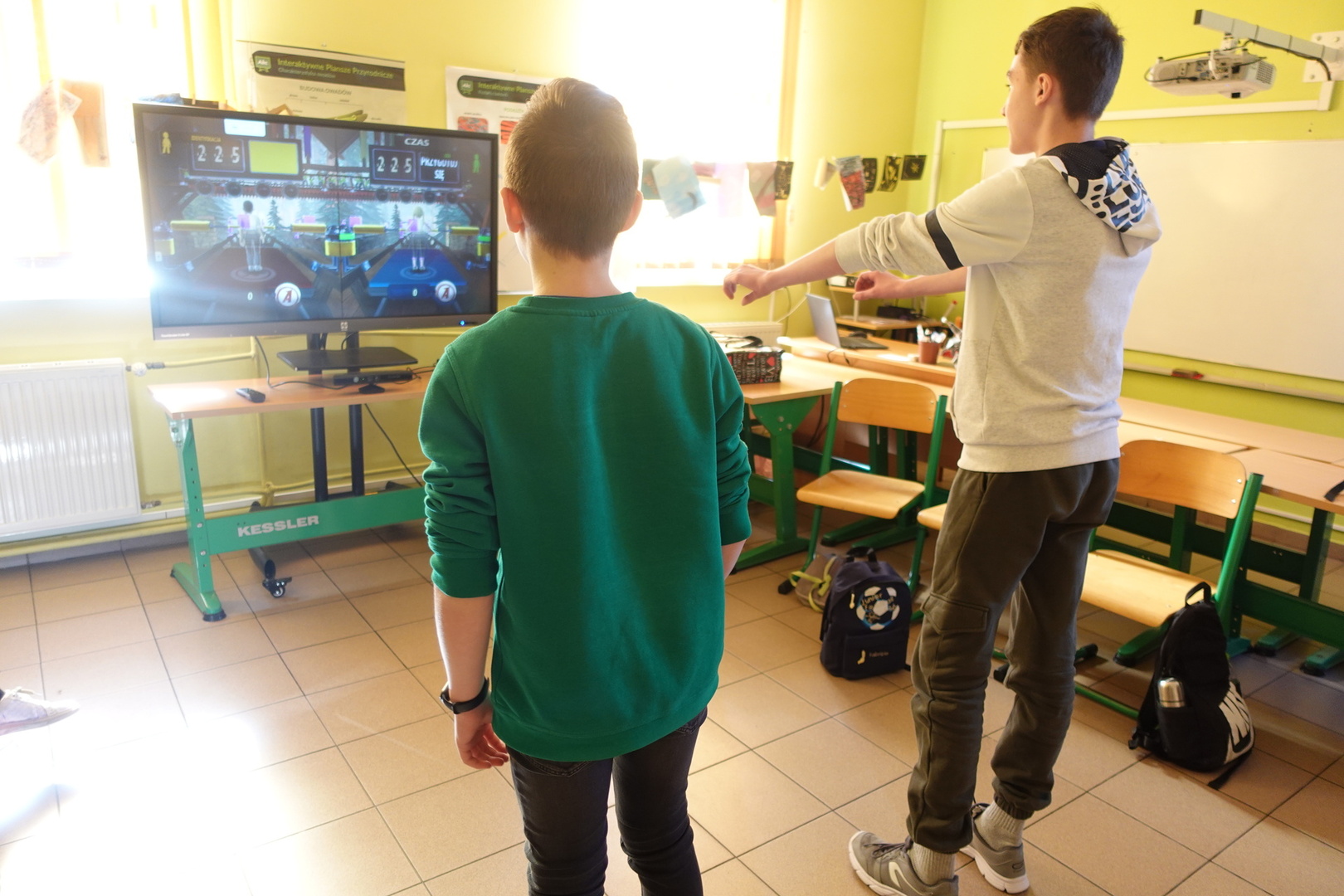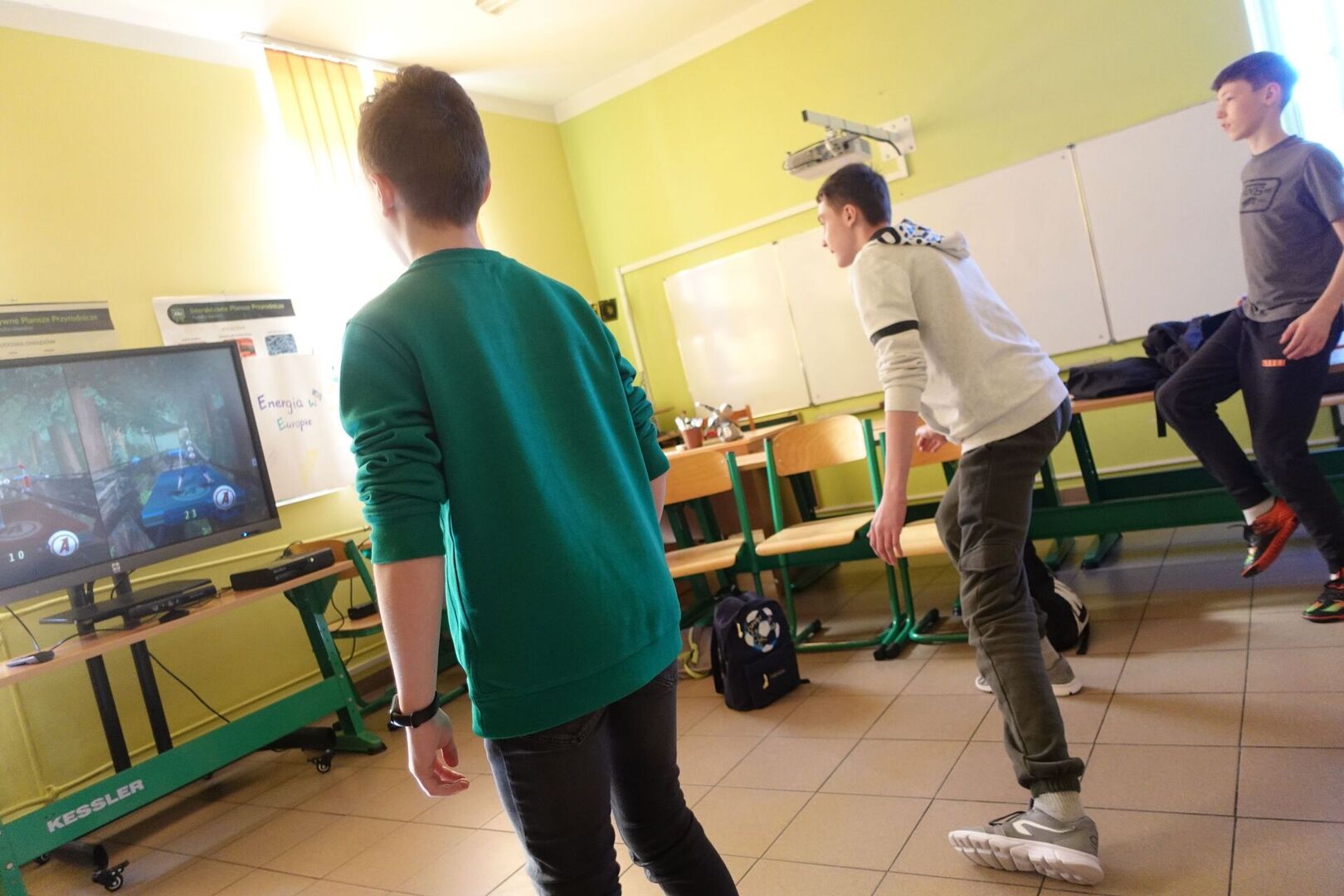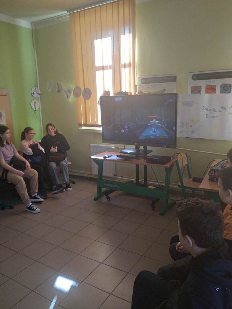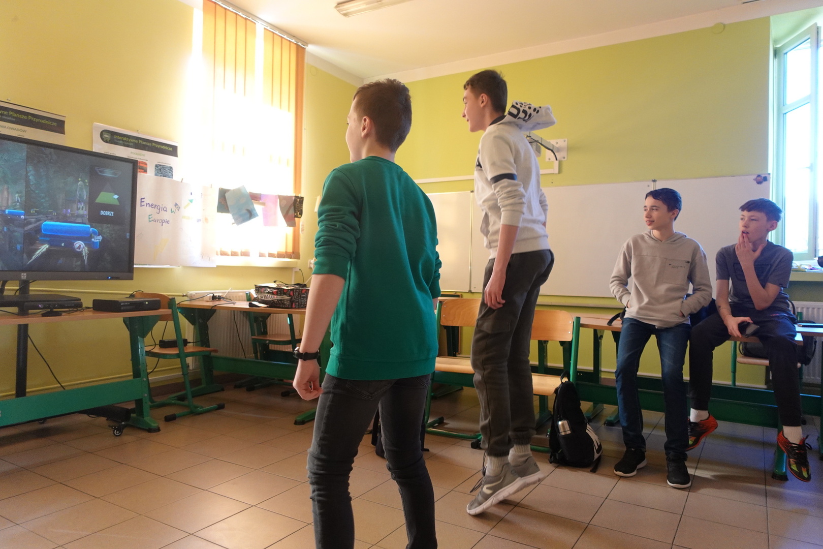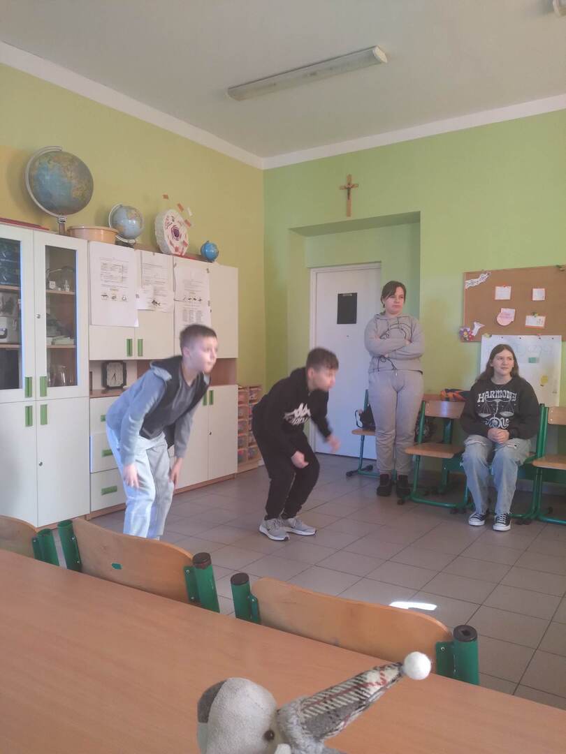 Pokój IV – Dzień liczby Pi - Z okazji Dnia Liczby Pi uczniowie w parach rywalizowali podczas gry Kahoot’a. Wszystkie zadania dotyczyły własności, zastosowania i ciekawostek związanych z Ludolfiną. Pytania były ciekawe a odpowiedzi zaskakujące. Było dużo śmiechu, ale też można było wiele się dowiedzieć o słynnej Pi Pokój V - Pierwszy dzień wiosny W ostatnim pokoju uczniowie poprzez zabawę i rywalizację aktywnie obchodzili pierwszy dzień wiosny. Konkurowali ze sobą podczas gry ruchowej – Kinekt.