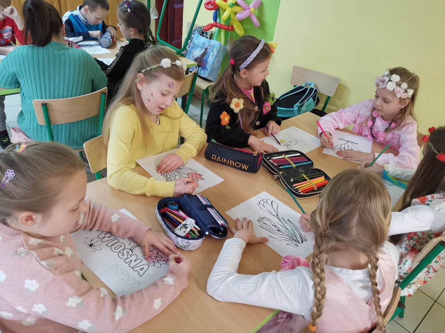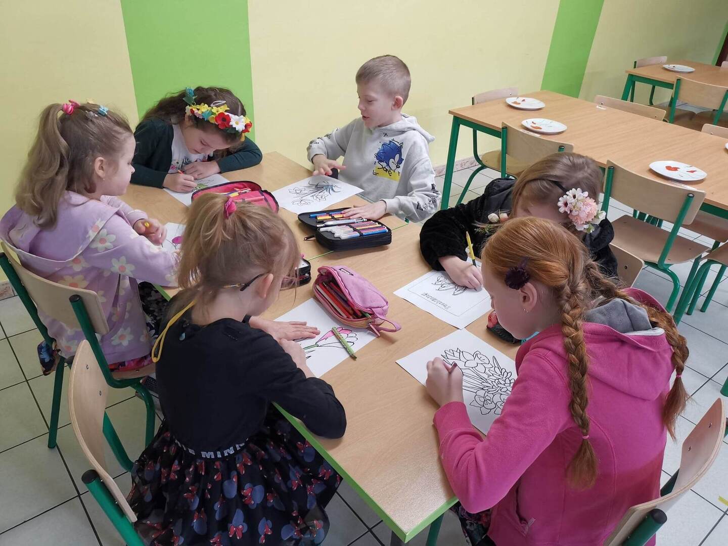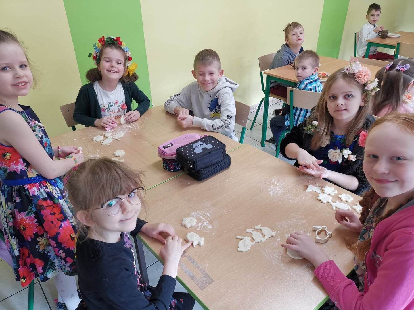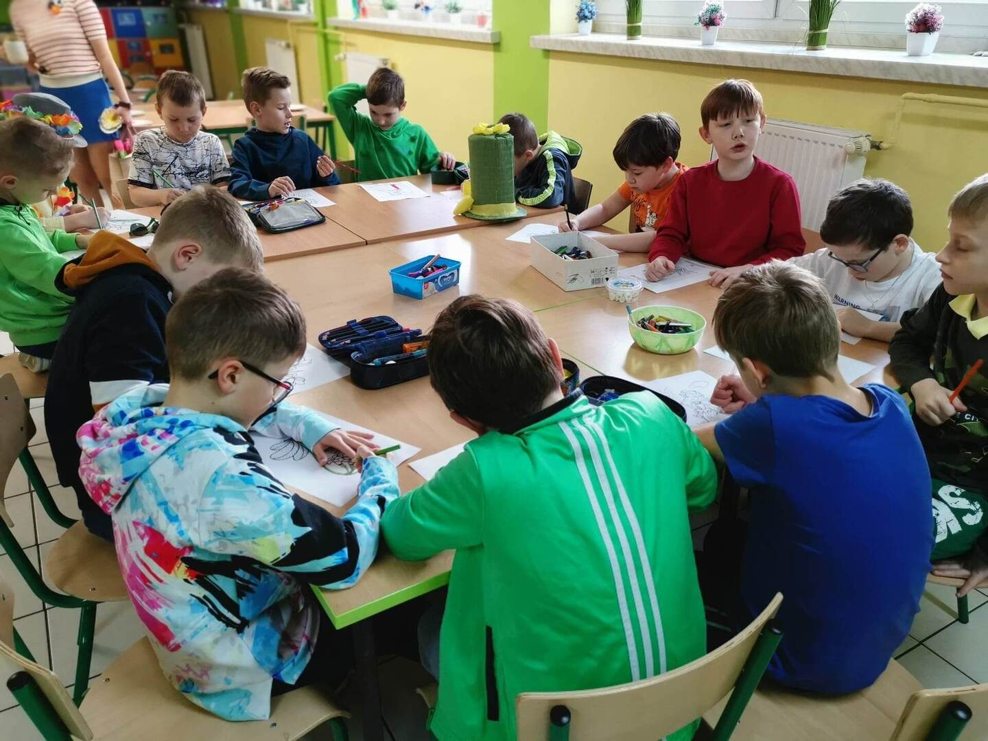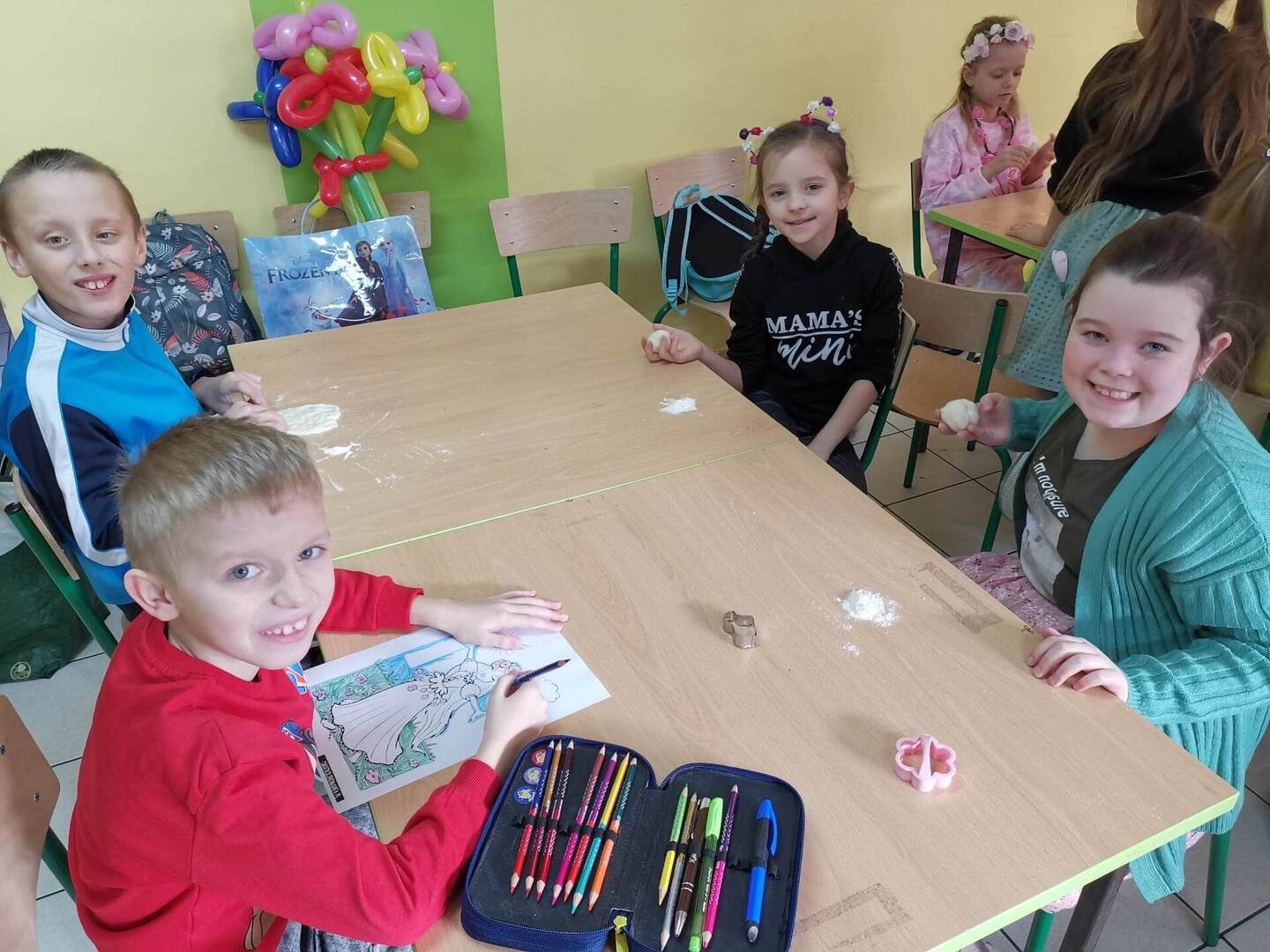 W przedszkolu wszystkie pozostałe aktywności tego dnia skupione były wokół tematu wiosny. Natomiast uczniowie klas 1-3 wzieli udział w rozgrywkach sportowych oraz pokoju zagadek, gdzie drużynowo rozwiązywali przygotowane dla nich łamigłówki :) Dodatkowo wzięli udział w bibliotecznych warsztatach, podczas których wykonywali wiosenne ozdoby z masy solnej, które później przyozdobiły szkolny korytarz.