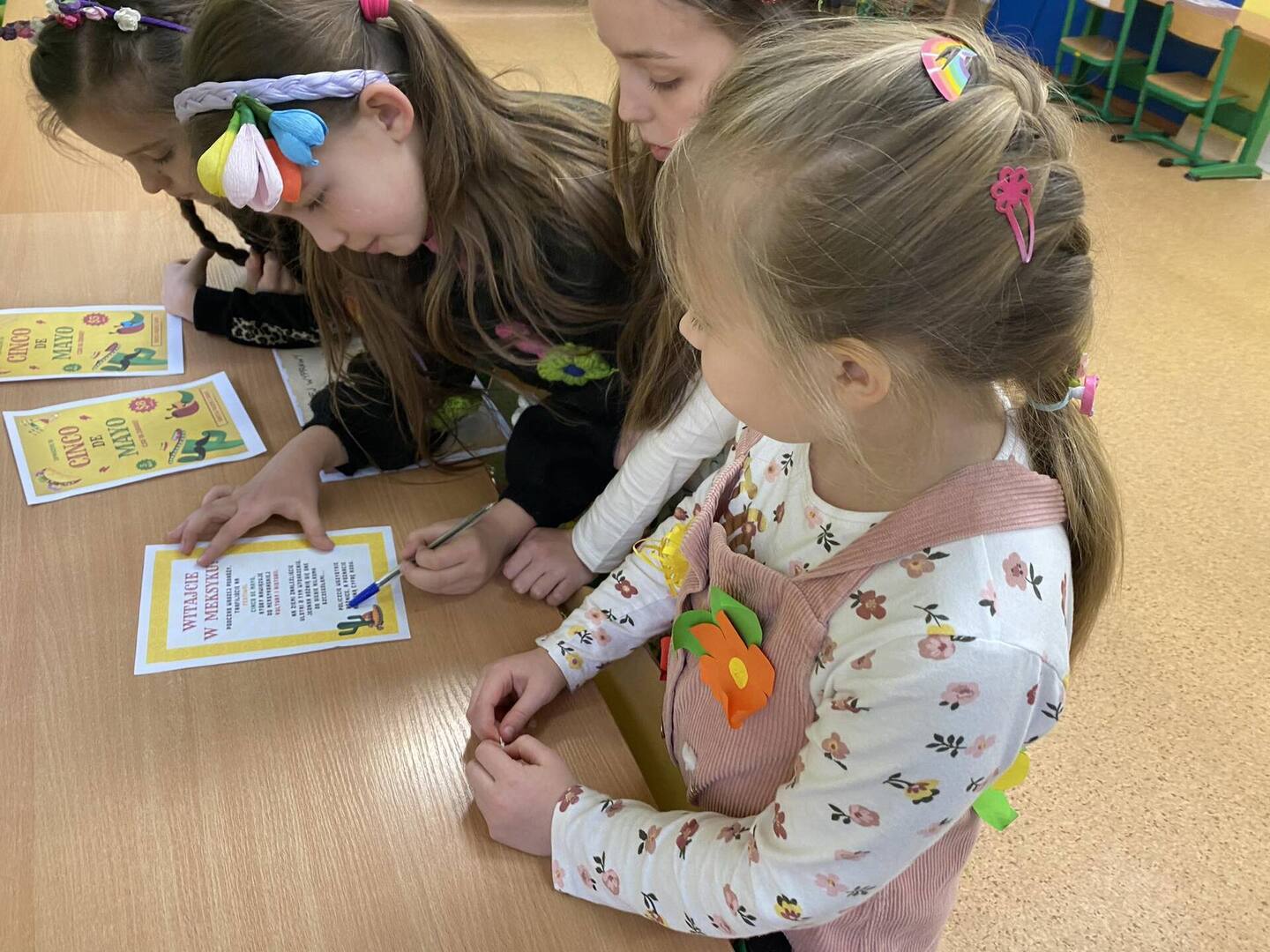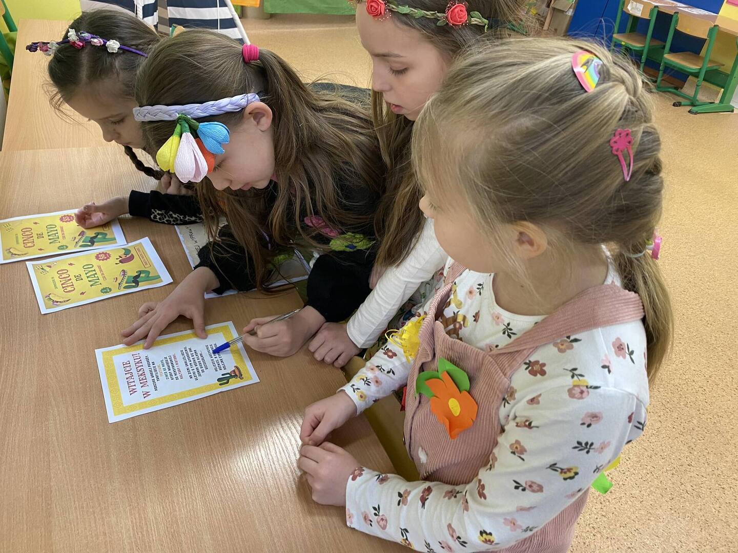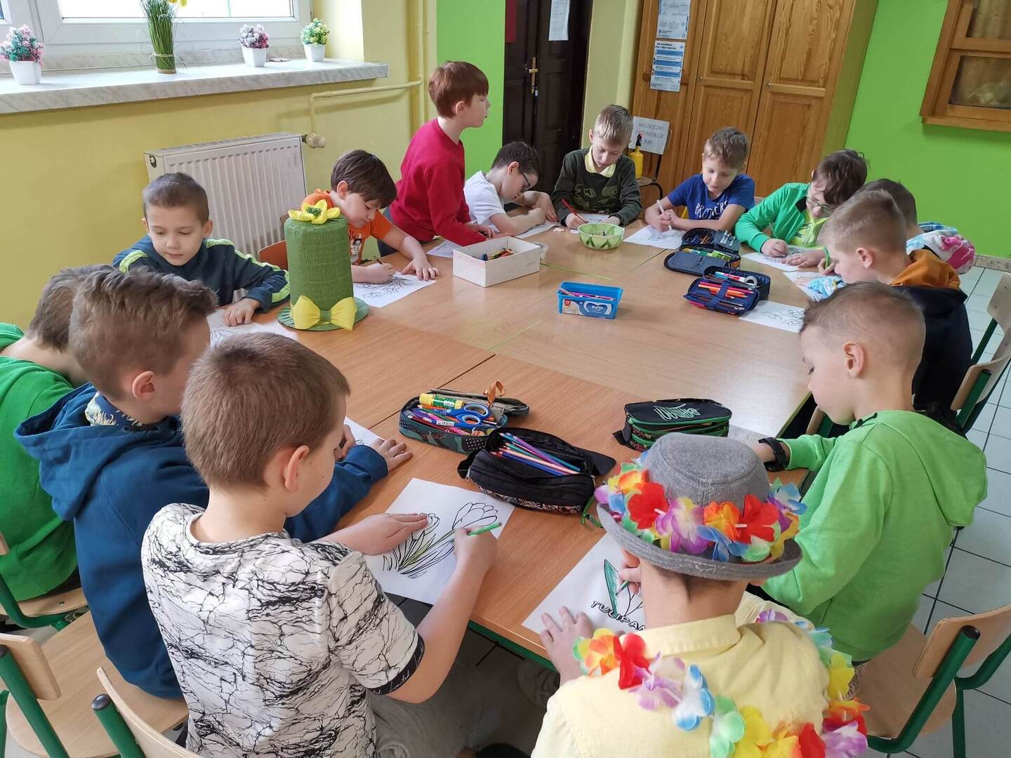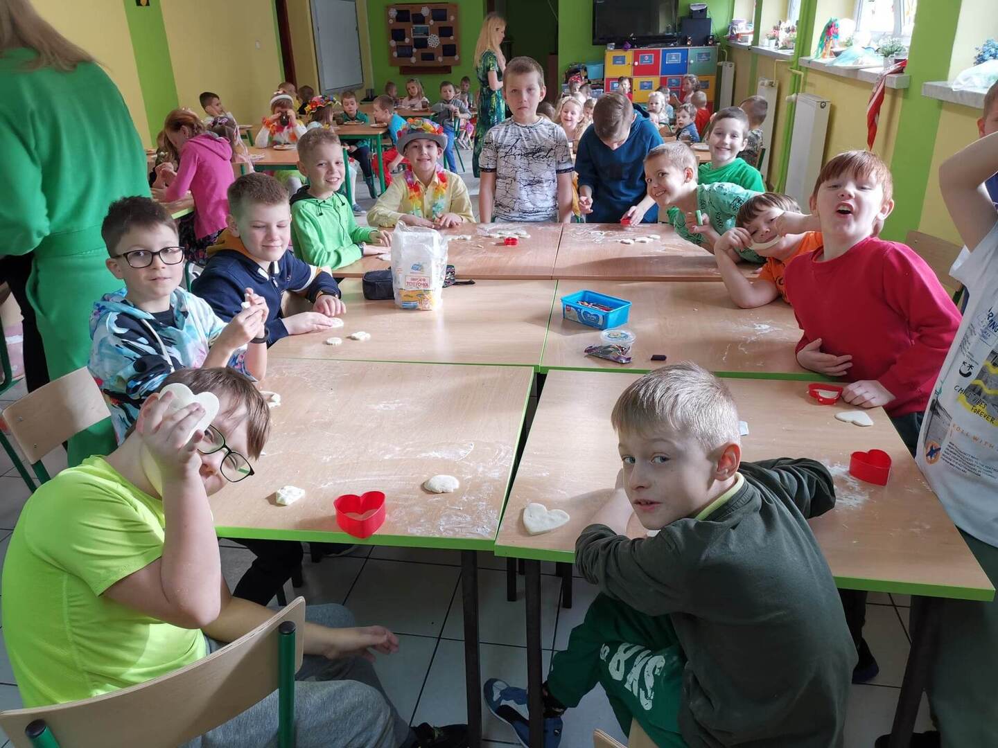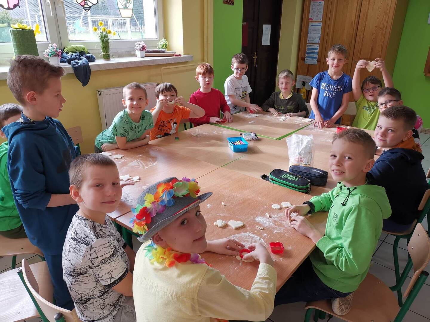 W przedszkolu wszystkie pozostałe aktywności tego dnia skupione były wokół tematu wiosny. Natomiast uczniowie klas 1-3 wzieli udział w rozgrywkach sportowych oraz pokoju zagadek, gdzie drużynowo rozwiązywali przygotowane dla nich łamigłówki :) Dodatkowo wzięli udział w bibliotecznych warsztatach, podczas których wykonywali wiosenne ozdoby z masy solnej, które później przyozdobiły szkolny korytarz.