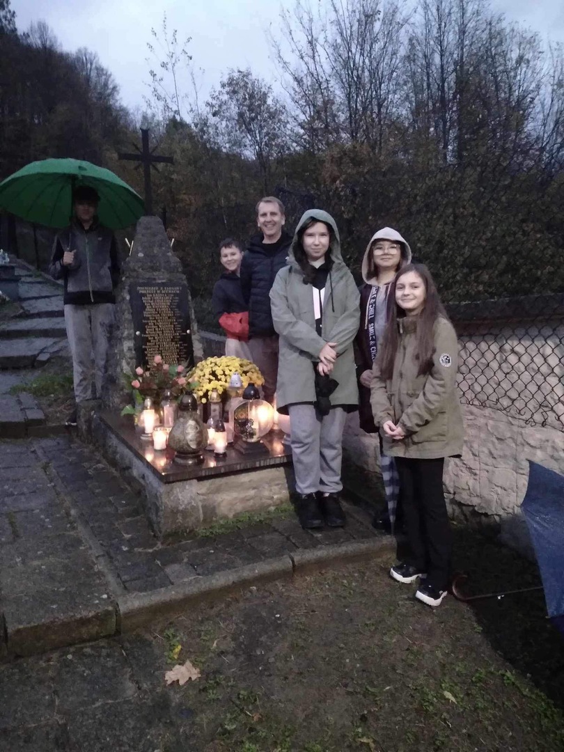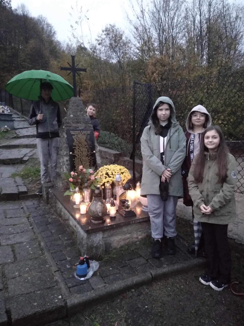 Grupa młodych Wolontariuszy wyczyściła groby, zapaliła znicze i pomodliła się za spoczywających na naszym cmentarzu.