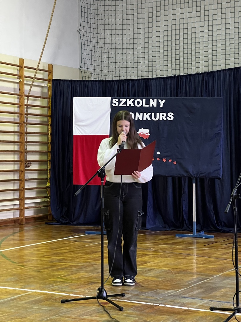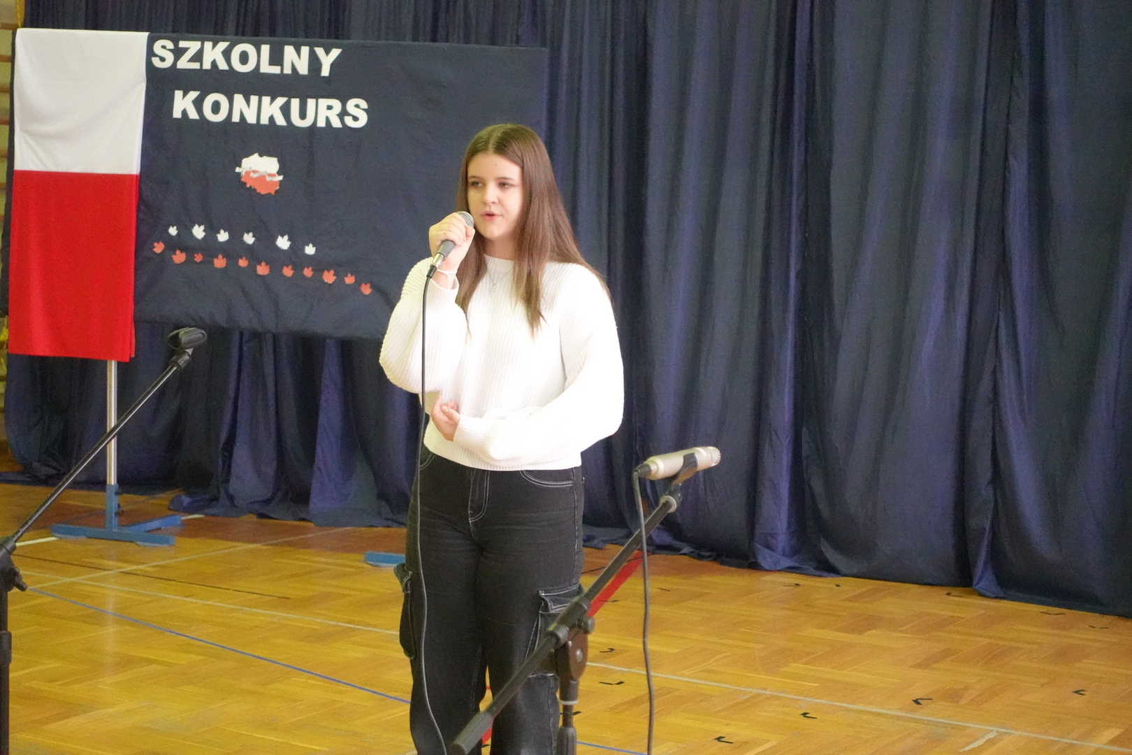 W dniu 15 listopada r. odbył się Szkolny Konkurs Pieśni Patriotycznej. Konkurs skierowany był do wszystkich uczniów naszej szkoły. Celem konkursu było wspieranie wychowania patriotycznego młodzieży, popularyzacja pieśni patriotycznych, pielęgnowanie kulturowego dziedzictwa narodowego.