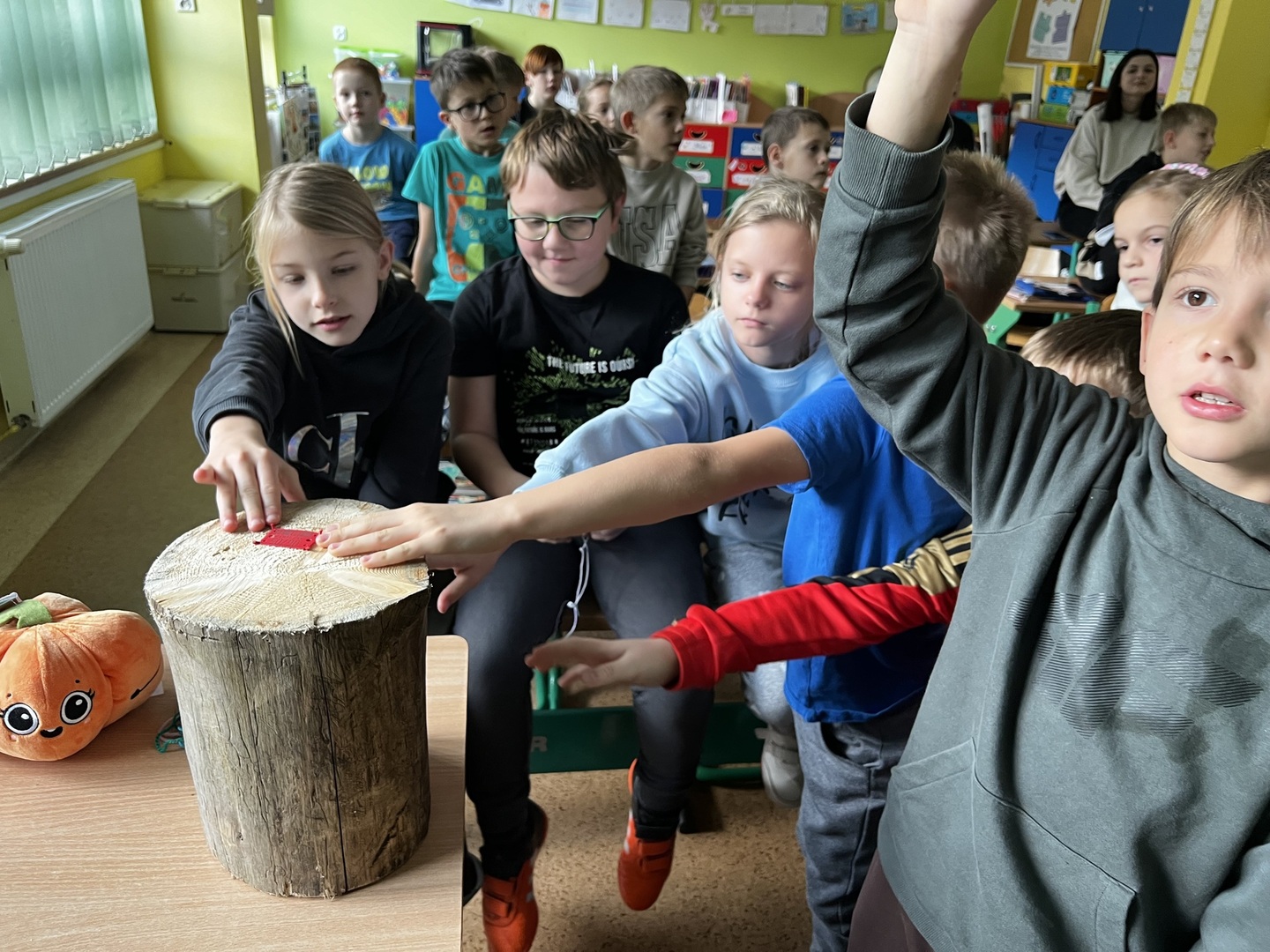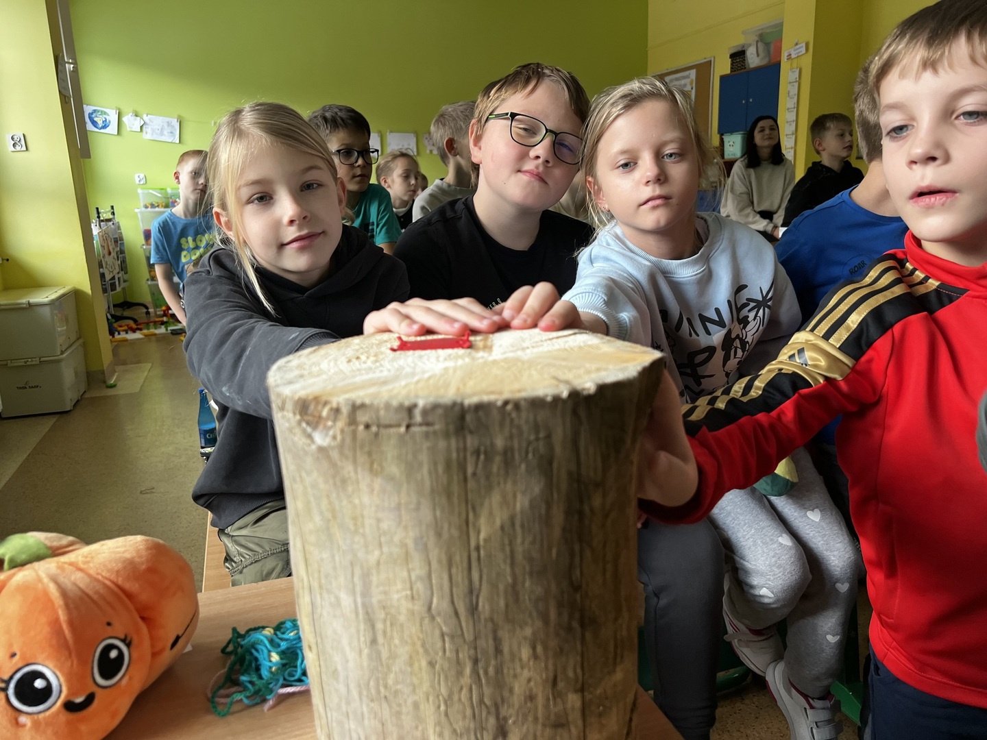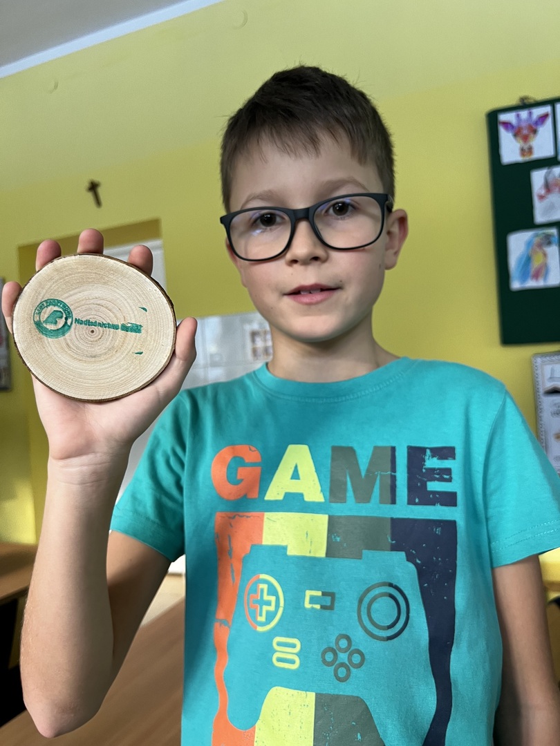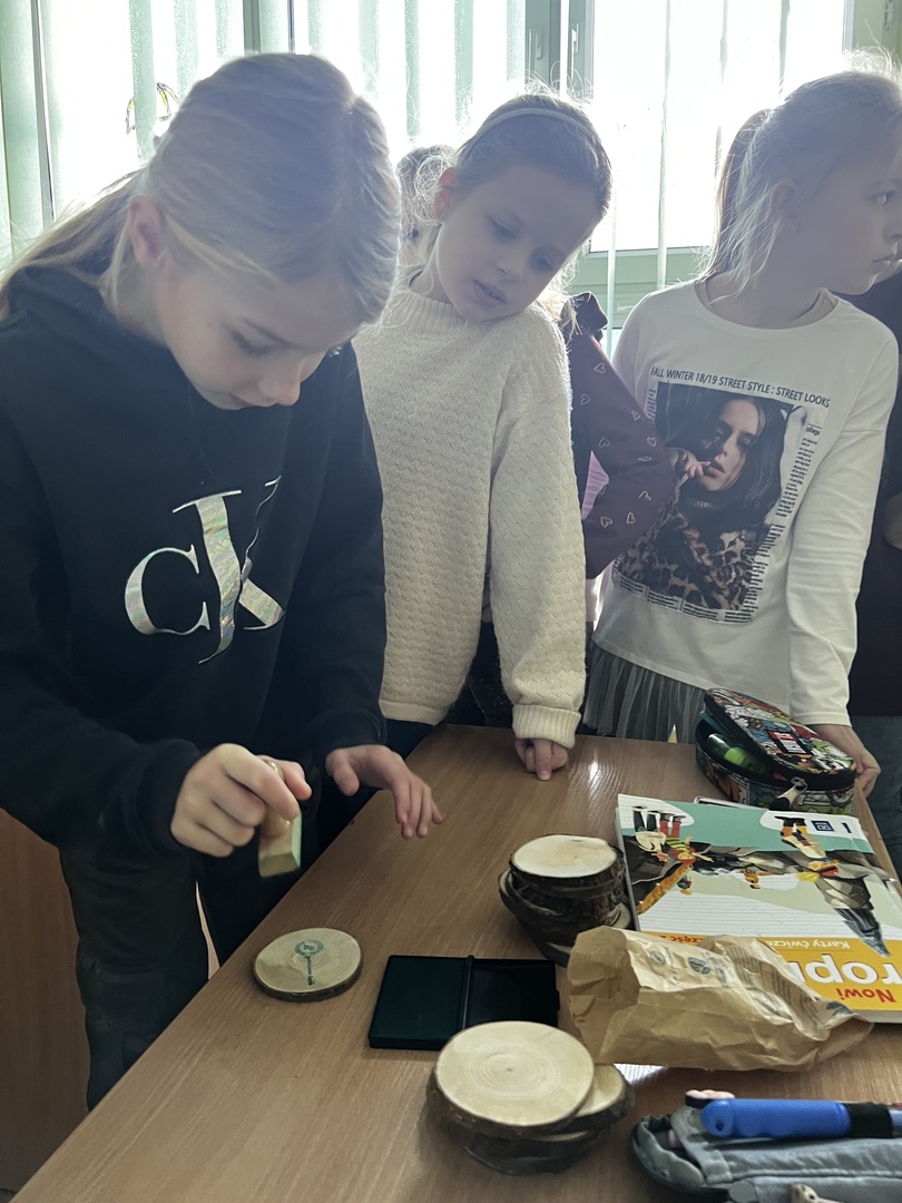 Najbardziej aktywne i zaangażowane dzieci zostały uhonorowane pamiątkowymi nagrodami, co było fantastycznym wyróżnieniem za ich zaangażowanie i zainteresowanie tematem. Ale niespodzianka czekała na każdego ucznia! Uczniowie otrzymali drewniane krążki, które mogli ozdobić. To nie tylko pamiątka tego wyjątkowego spotkania, ale i szansa na stworzenie własnego, unikalnego dzieła sztuki.