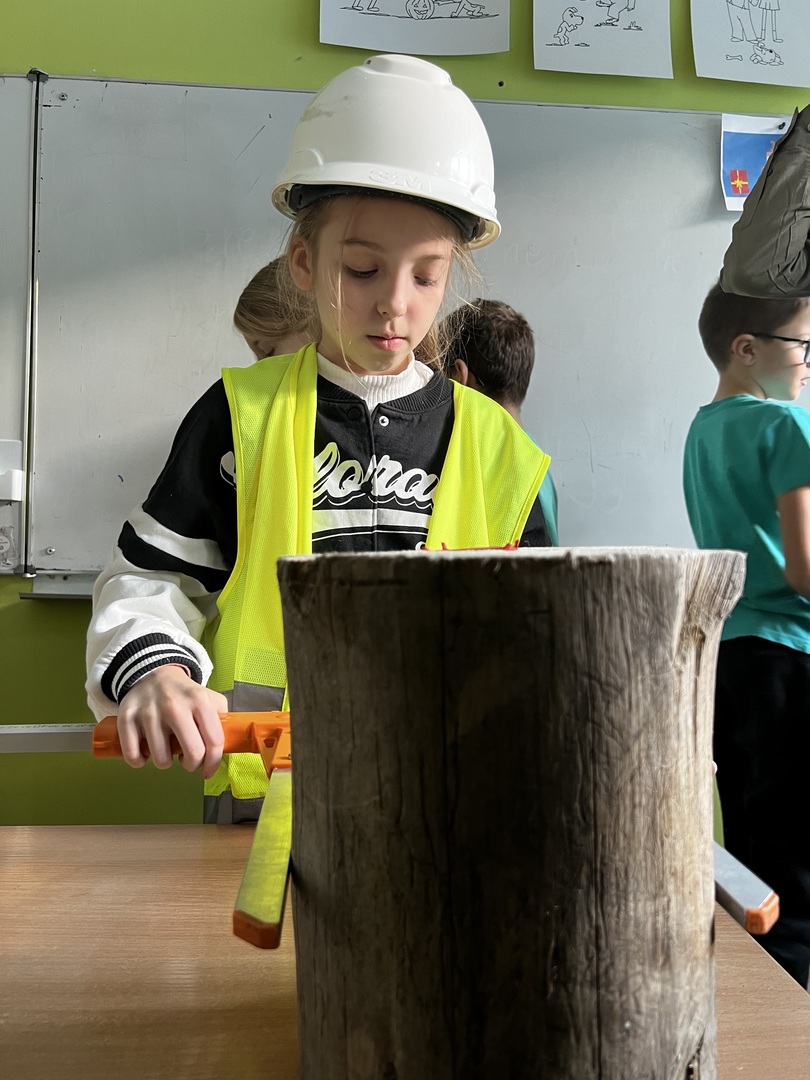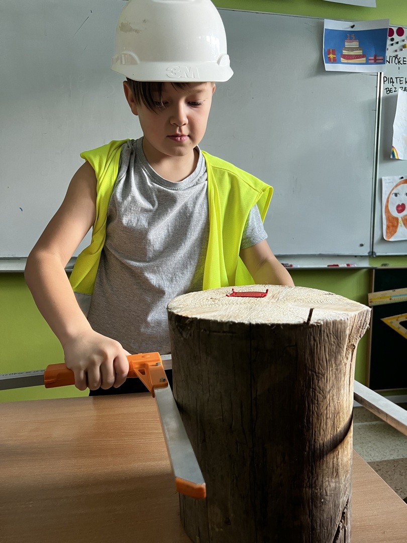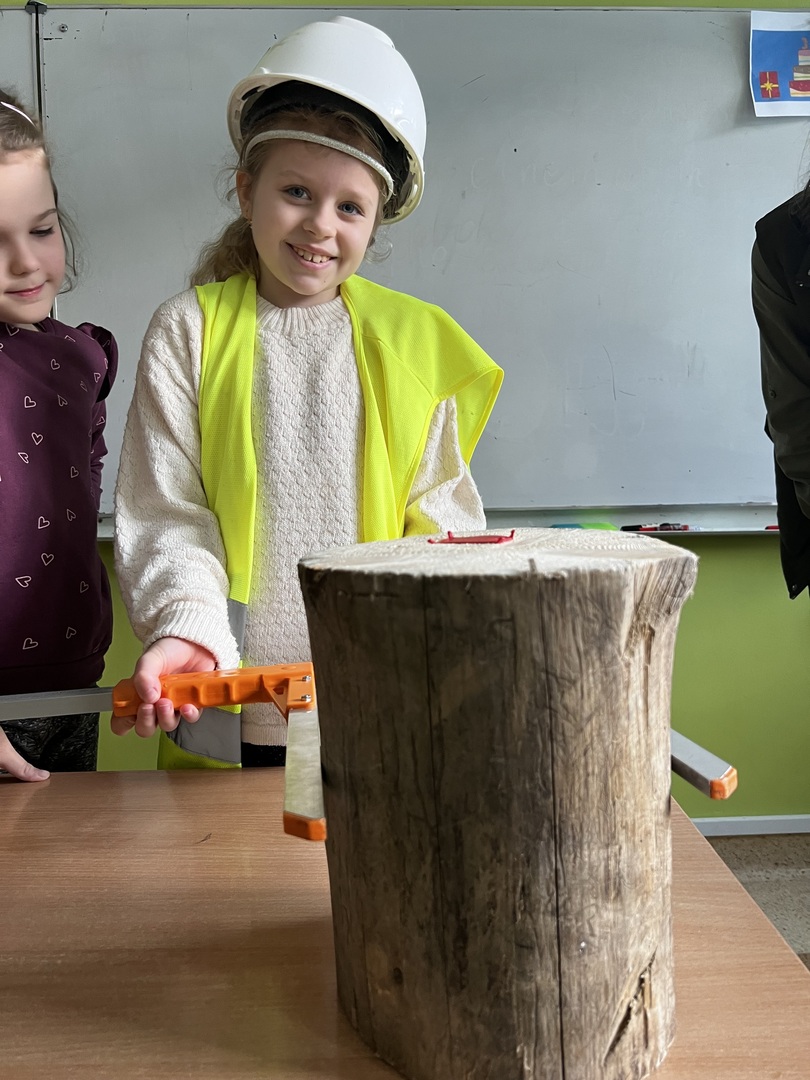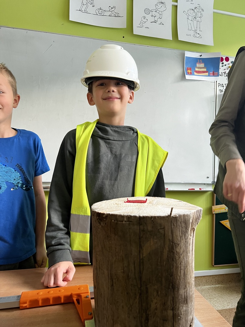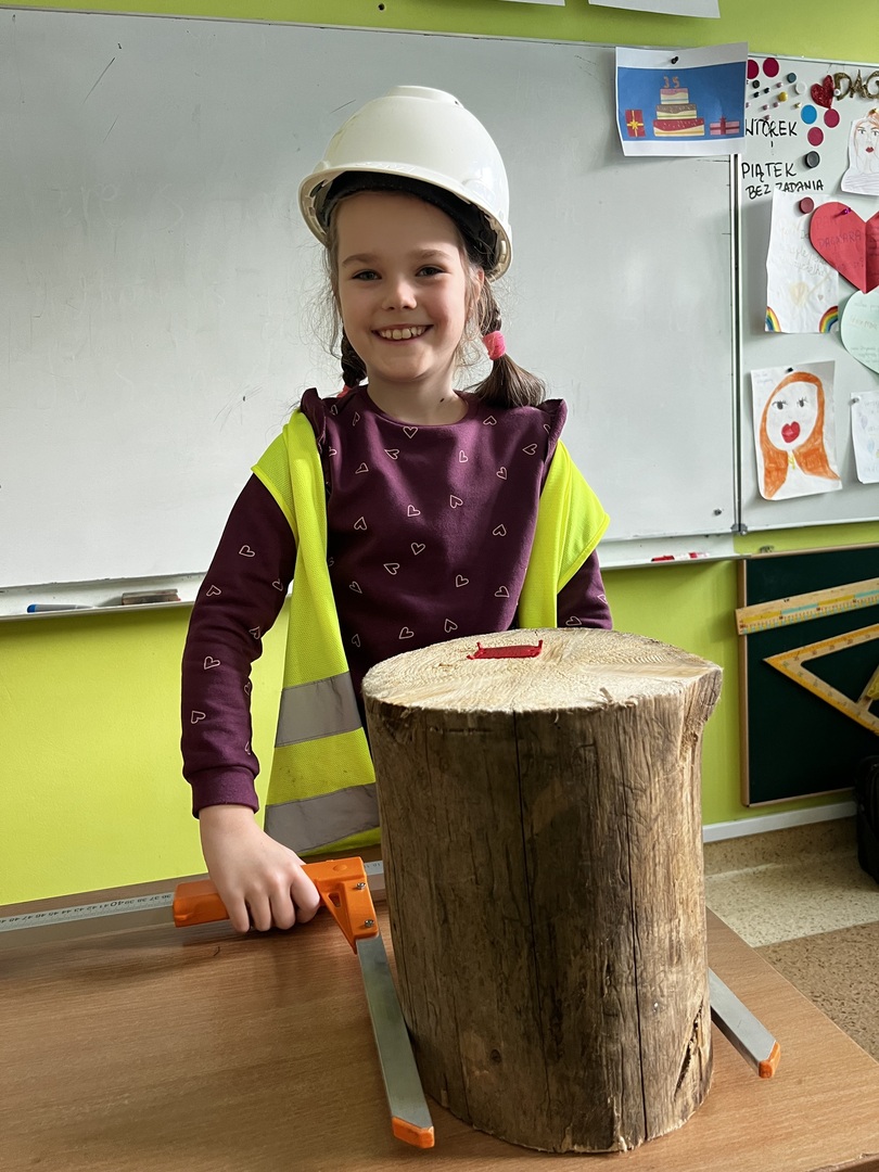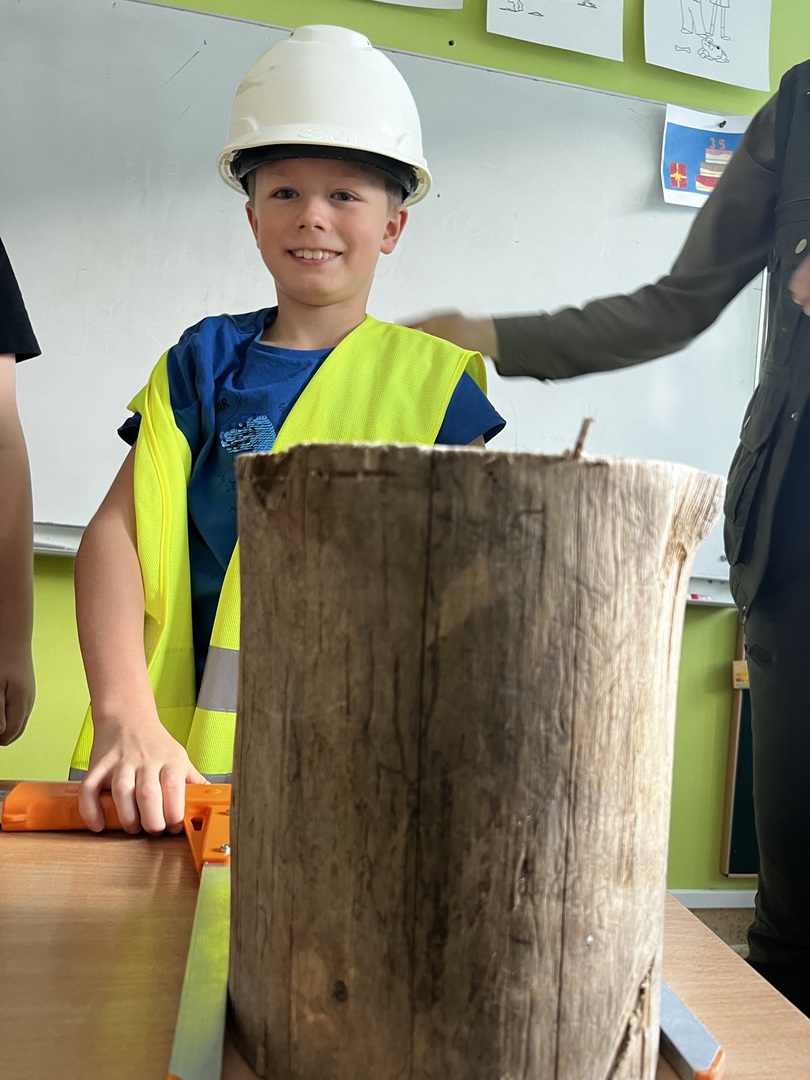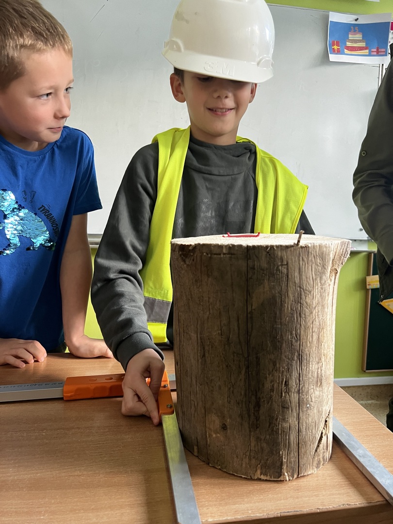 Jednak to nie wszystko! Była też praktyczna część spotkania. Dzieci miały okazję poznać tajniki pomiaru drzewa. To było niezwykłe doświadczenie, gdyż każdy mógł spróbować swoich sił w tej leśnej sztuce. Atmosfera była pełna radości i entuzjazmu, gdy uczniowie mierzyli i porównywali wielkość drzew.