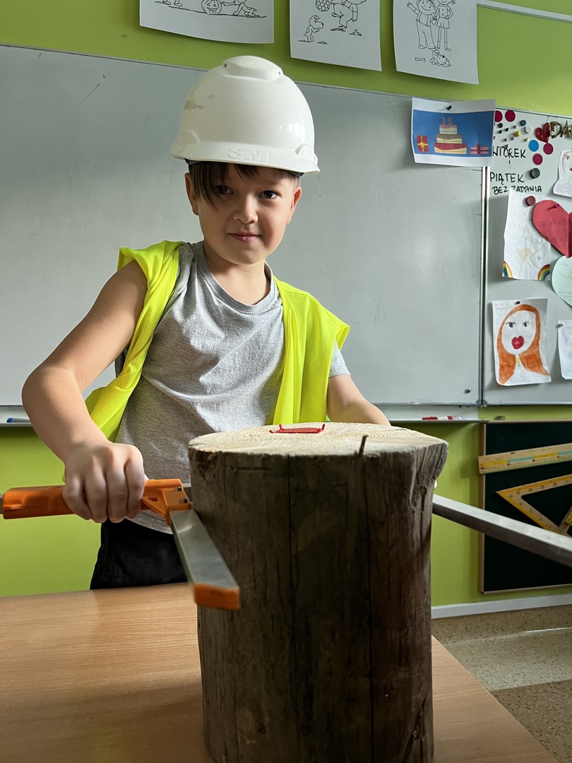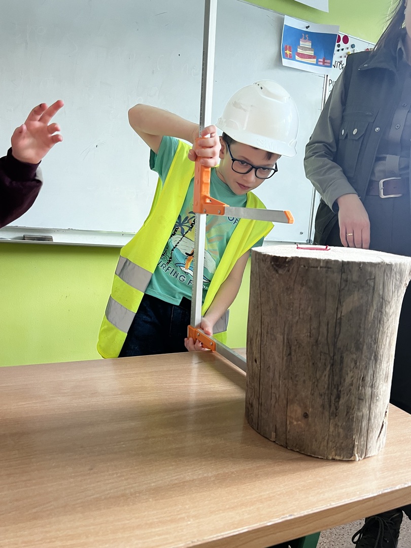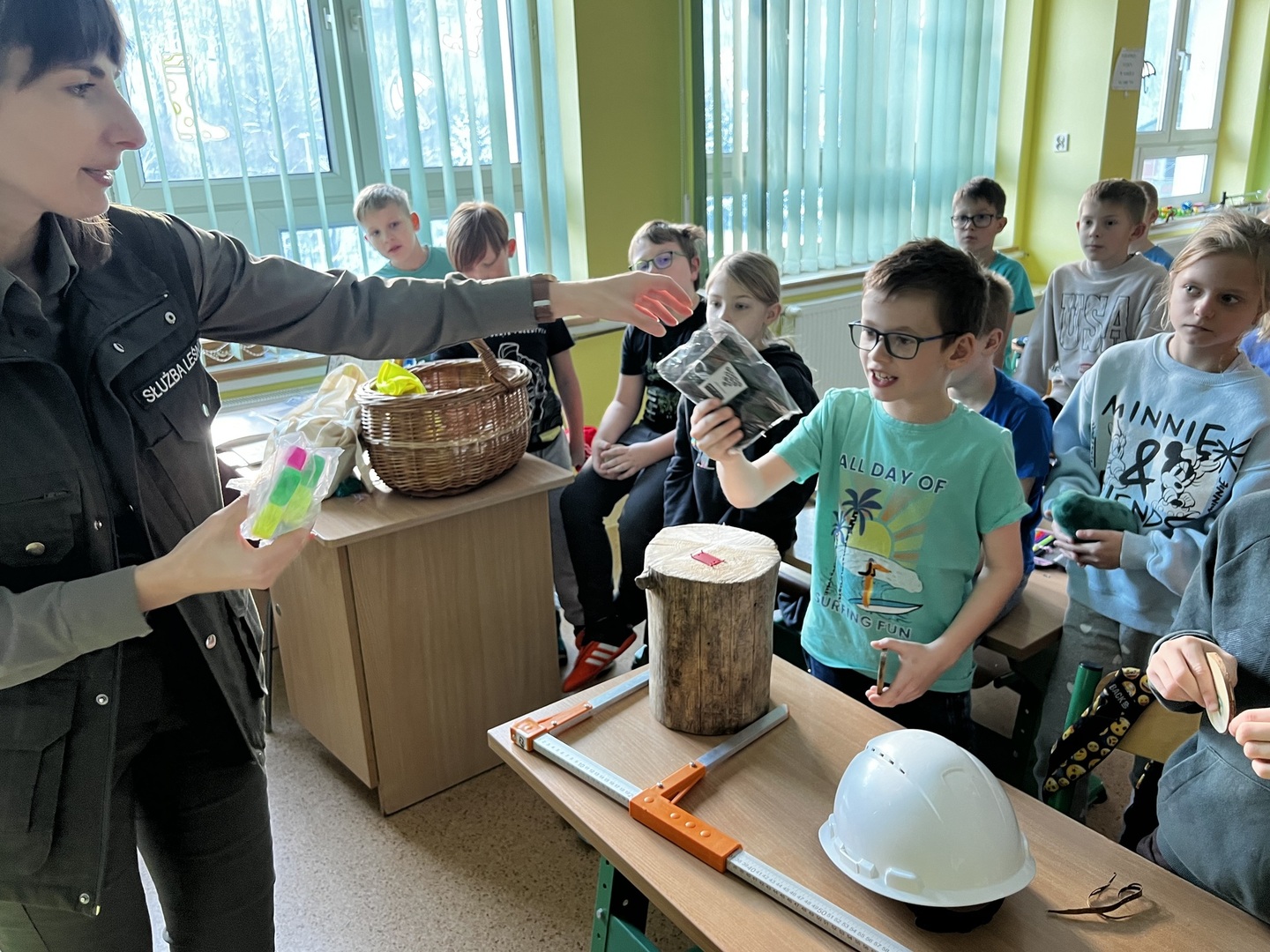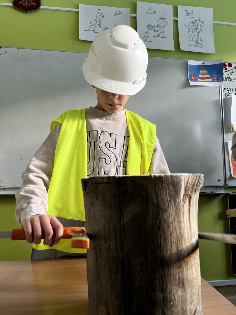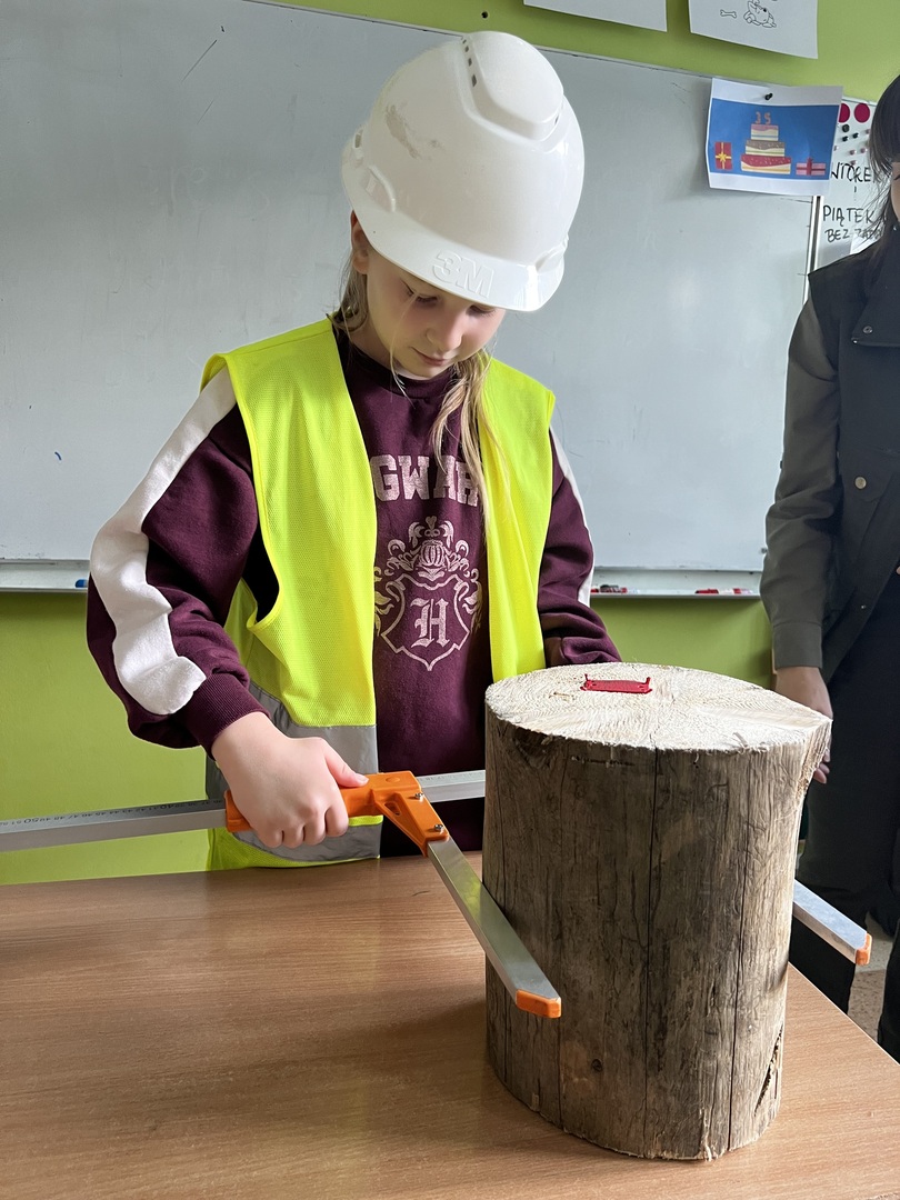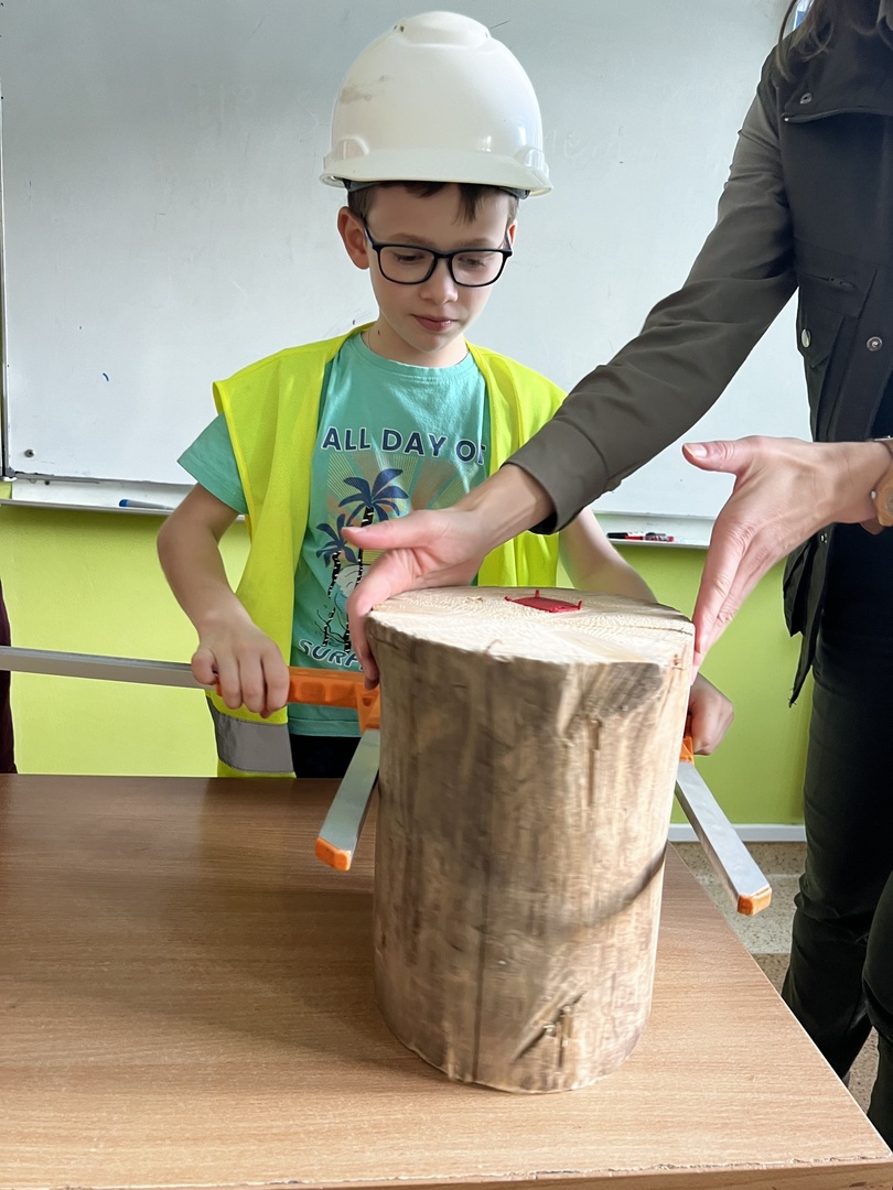 Jednak to nie wszystko! Była też praktyczna część spotkania. Dzieci miały okazję poznać tajniki pomiaru drzewa. To było niezwykłe doświadczenie, gdyż każdy mógł spróbować swoich sił w tej leśnej sztuce. Atmosfera była pełna radości i entuzjazmu, gdy uczniowie mierzyli i porównywali wielkość drzew.