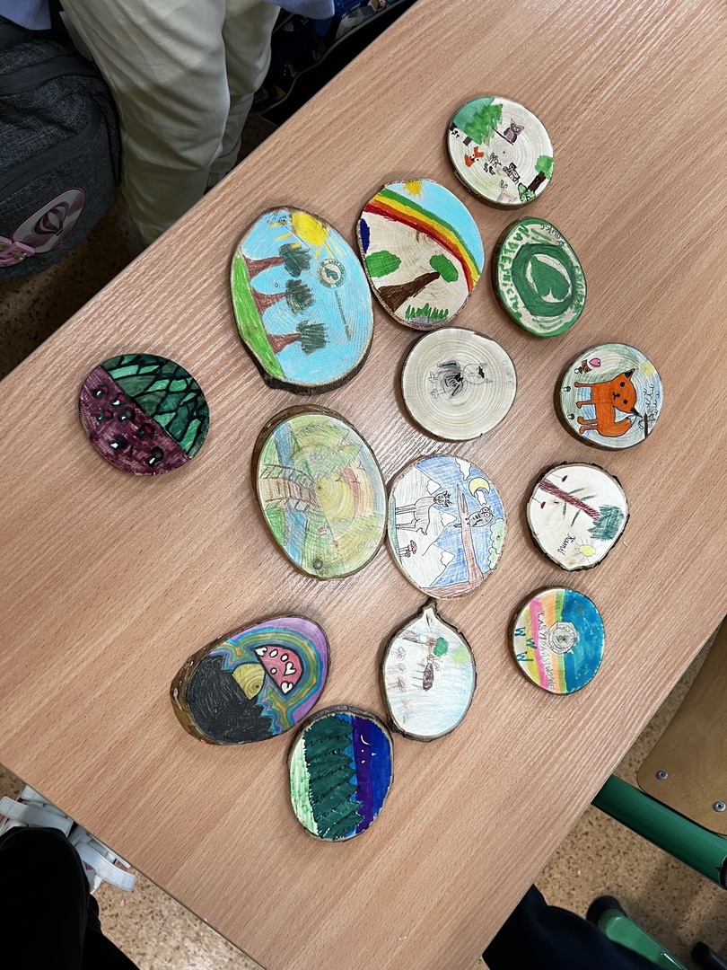 Drewniane krążki były niczym małe płótna dla naszej kreatywności. Po odbiciu na nich pieczątki z nadleśnictwa, dzieci mogły dać upust swojej wyobraźni, ozdabiając je według własnego pomysłu. To było magiczne przeżycie widzieć, jak każde dziecko tworzyło coś wyjątkowego i wyrażało siebie poprzez sztukę.