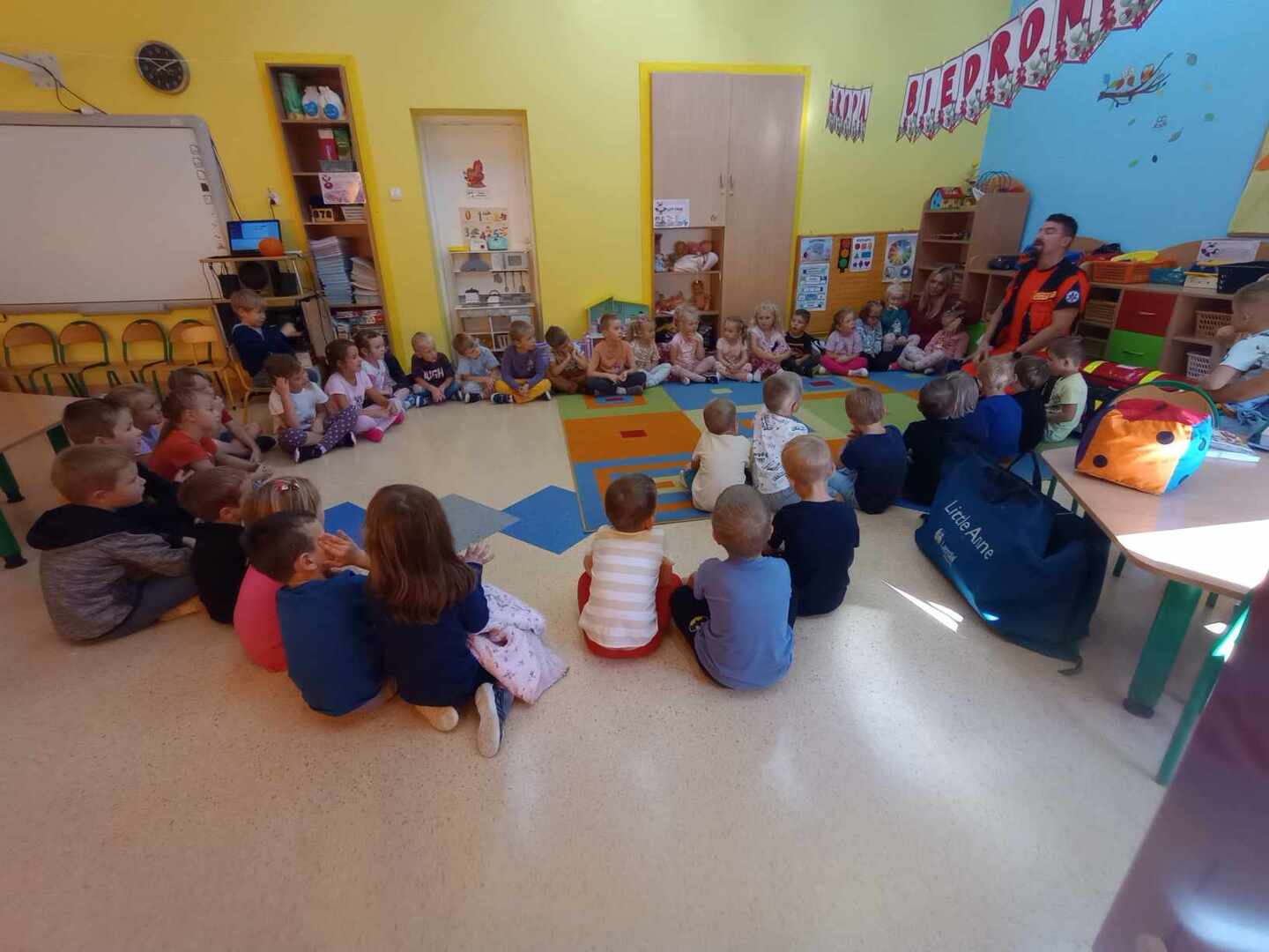Rozpoczęło się od fascynujących spotkań z różnymi osobami, które zaprezentowały nam swoje codzienne zawody i pasje. Ratownik medyczny, listonoszka oraz górnik to tylko niektórzy z ciekawych ludzi, których mieliśmy okazję poznać. Ale nie tylko prawdziwi bohaterowie zawitali do naszego przedszkola - również postać z bajki, Czerwony Kapturek, uświetniła naszą przestrzeń swoją obecnością.