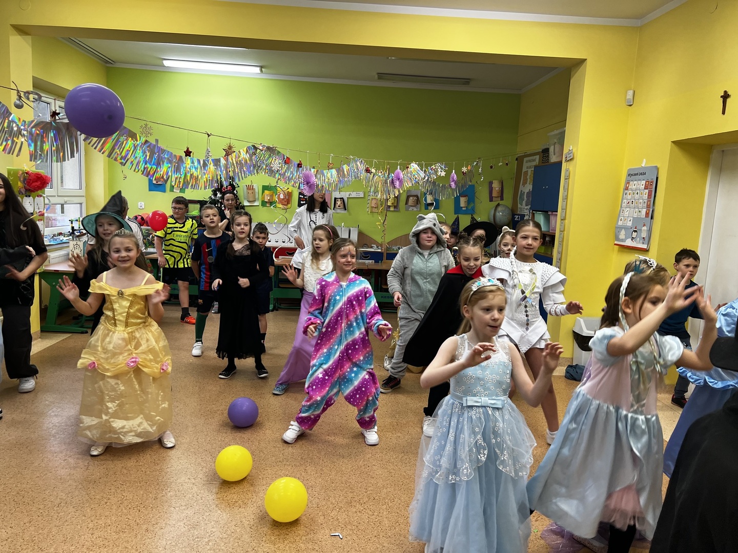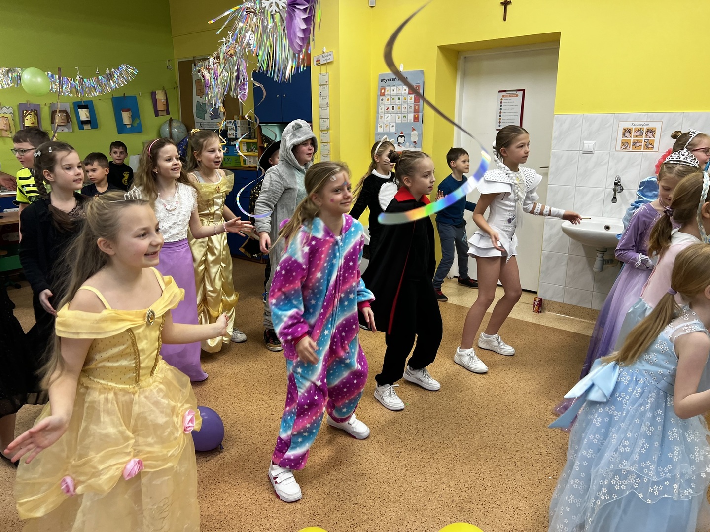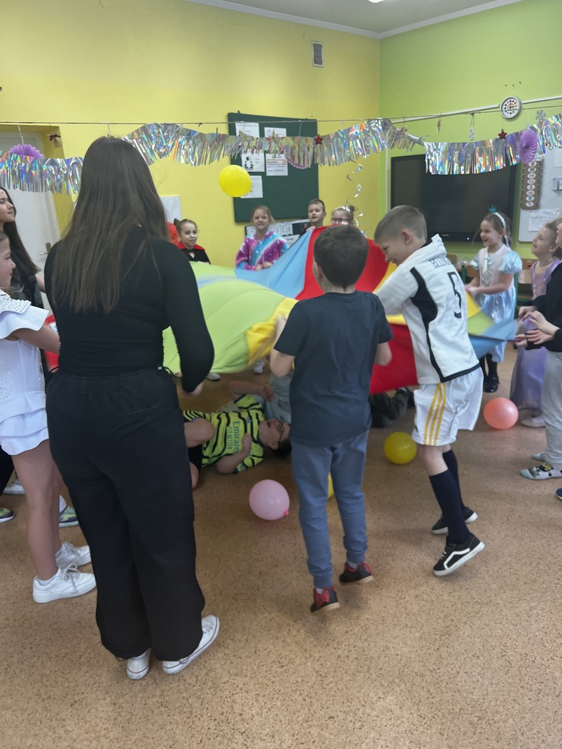 24 stycznia uczniowie klas 1, 2 i 3 mieli okazję wejść do świata marzeń podczas szkolnego balu karnawałowego. Sala lekcyjna zamieniła się w krainę magii, gdzie każde dziecko mogło stać się bohaterem z ulubionej bajki, sportowcem czy nawet superbohaterem.