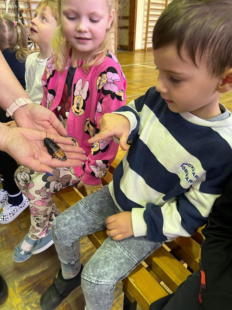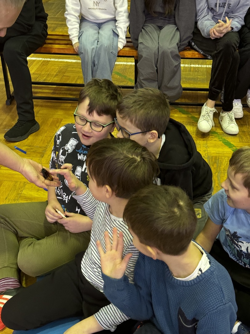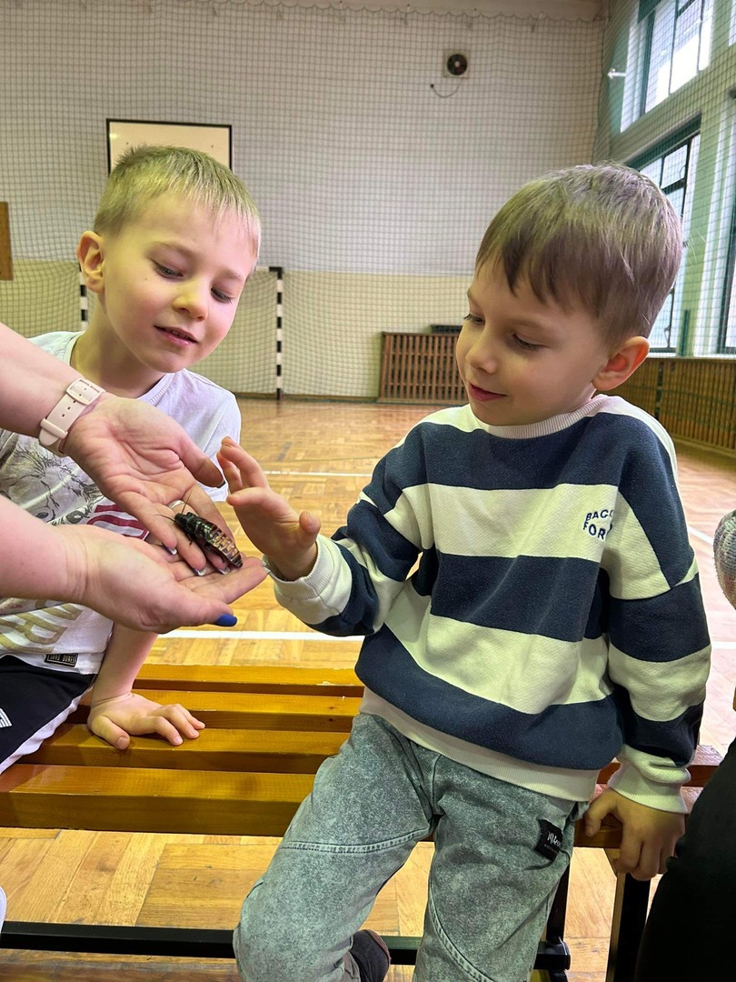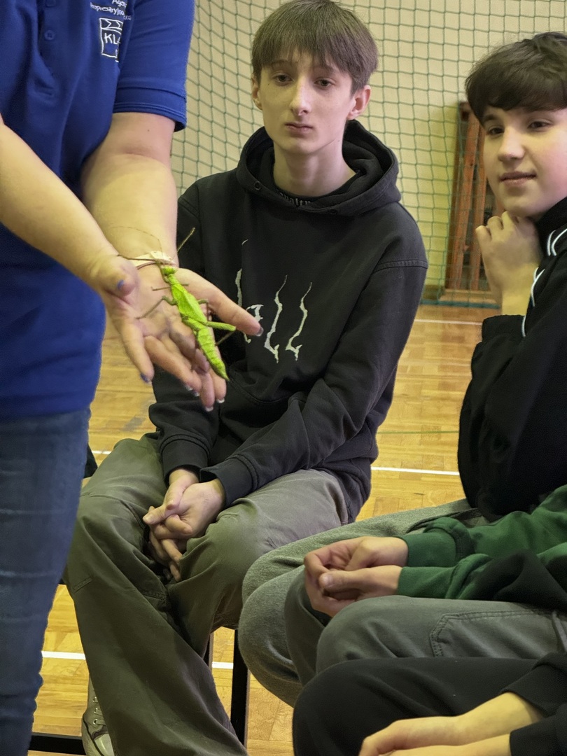 Jednym z głównych punktów programu było oglądanie żywych okazów owadów, które zostały specjalnie przygotowane dla naszej grupy. Widzieliśmy modliszkę, patyczaka, liśćca, straszyki i nawet karaczany. Możliwość obserwacji tych owadów w naturalnym środowisku była niezwykle ekscytująca, a dotknięcie karaczanów pozwoliło nam bliżej przyjrzeć się ich pancerzowi i zrozumieć ich budowę.