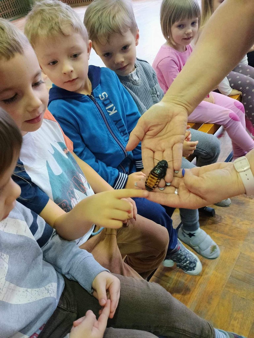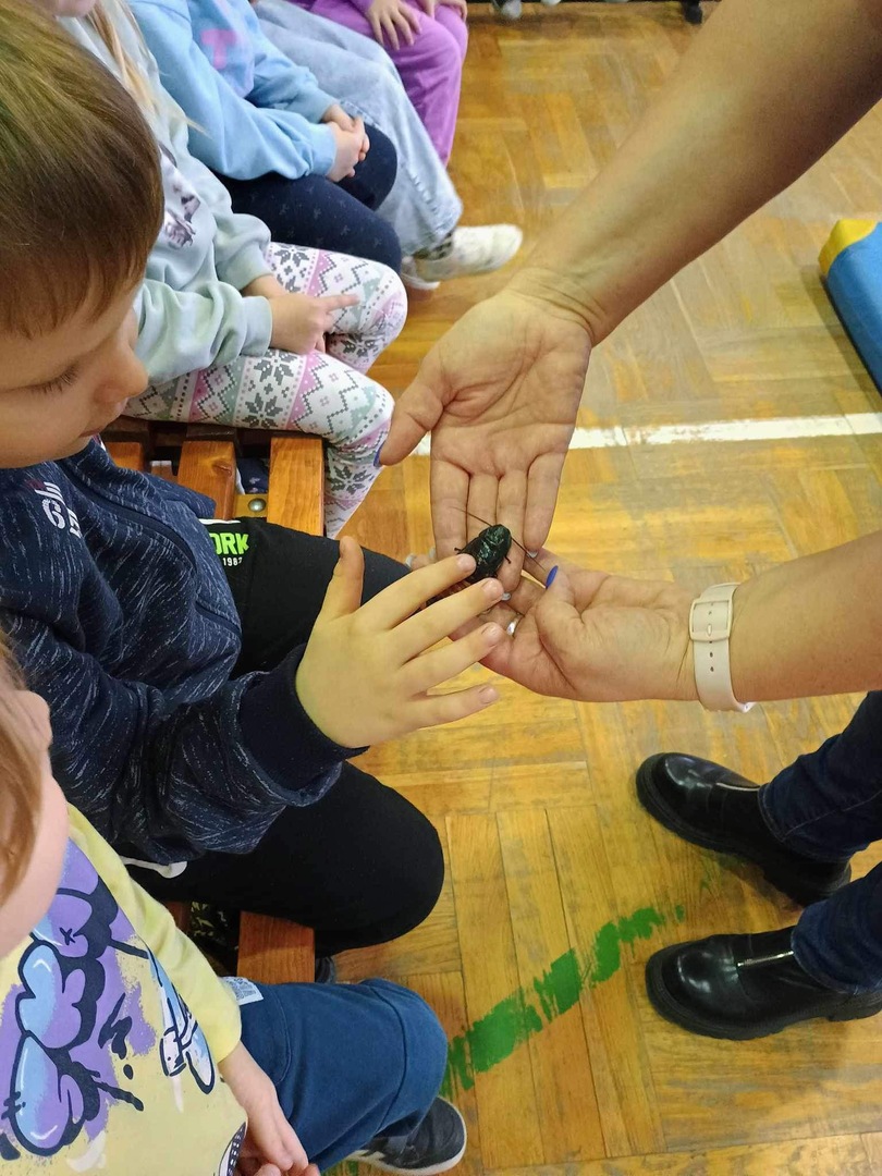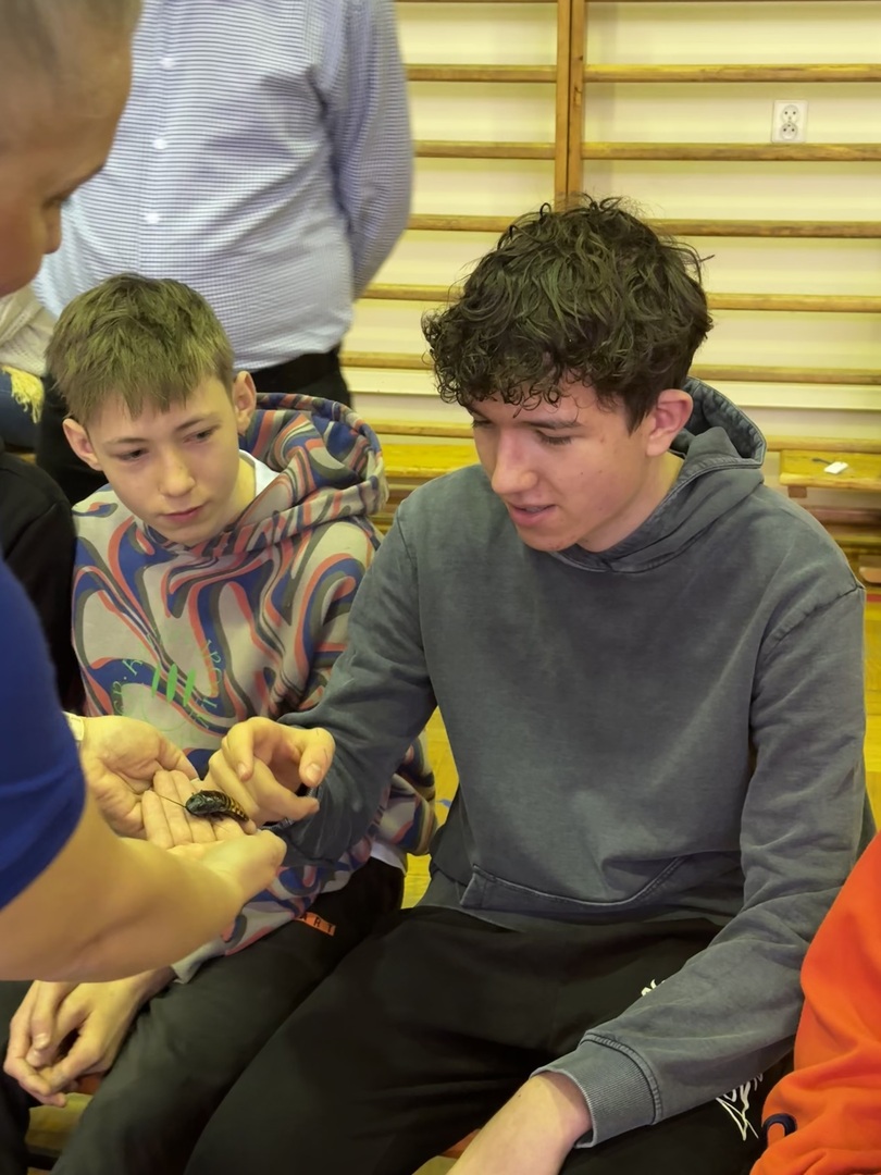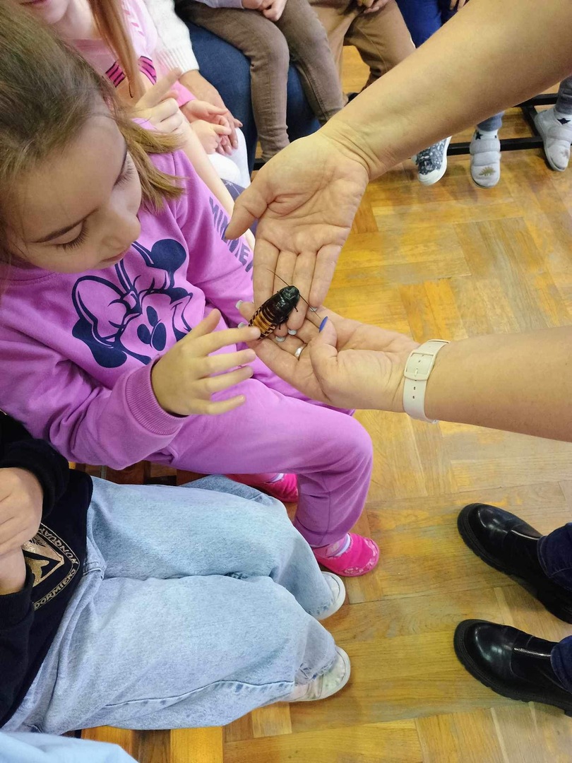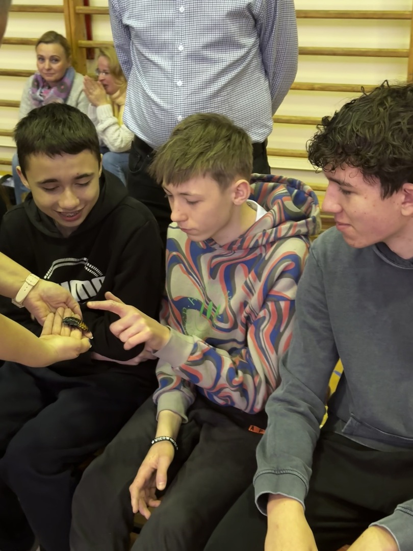 Jednym z głównych punktów programu było oglądanie żywych okazów owadów, które zostały specjalnie przygotowane dla naszej grupy. Widzieliśmy modliszkę, patyczaka, liśćca, straszyki i nawet karaczany. Możliwość obserwacji tych owadów w naturalnym środowisku była niezwykle ekscytująca, a dotknięcie karaczanów pozwoliło nam bliżej przyjrzeć się ich pancerzowi i zrozumieć ich budowę.