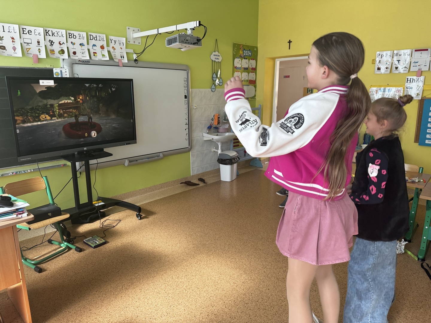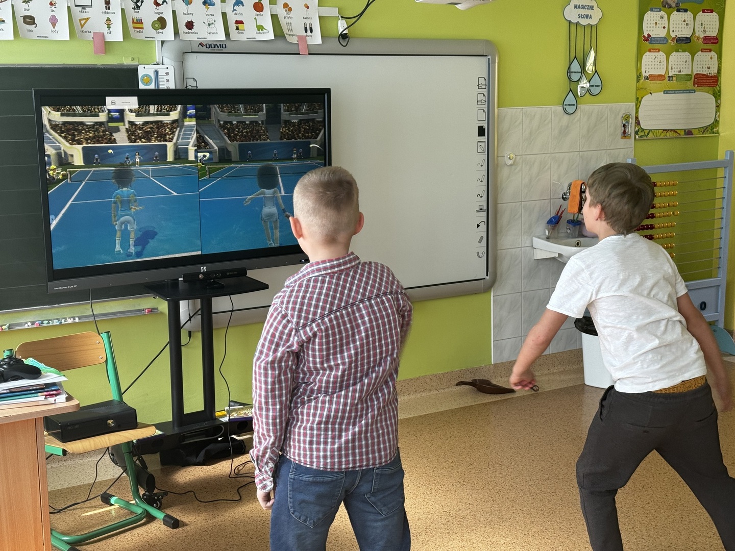 Ale to nie koniec atrakcji! Uczniowie mieli również okazję rozluźnić się podczas sportowych rozgrywek, korzystając z konsoli Xbox z Kinectem. Najbardziej popularne dyscypliny to tenis, rzutki oraz emocjonujące zjazdy narciarskie. To było niezwykłe doświadczenie, które pozwoliło nam spędzić czas aktywnie i wesoło!