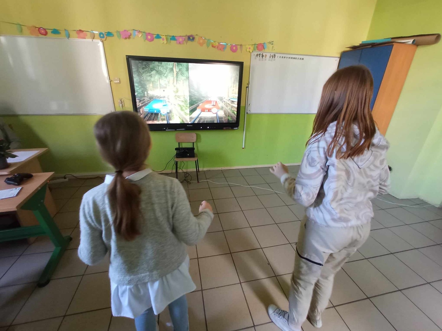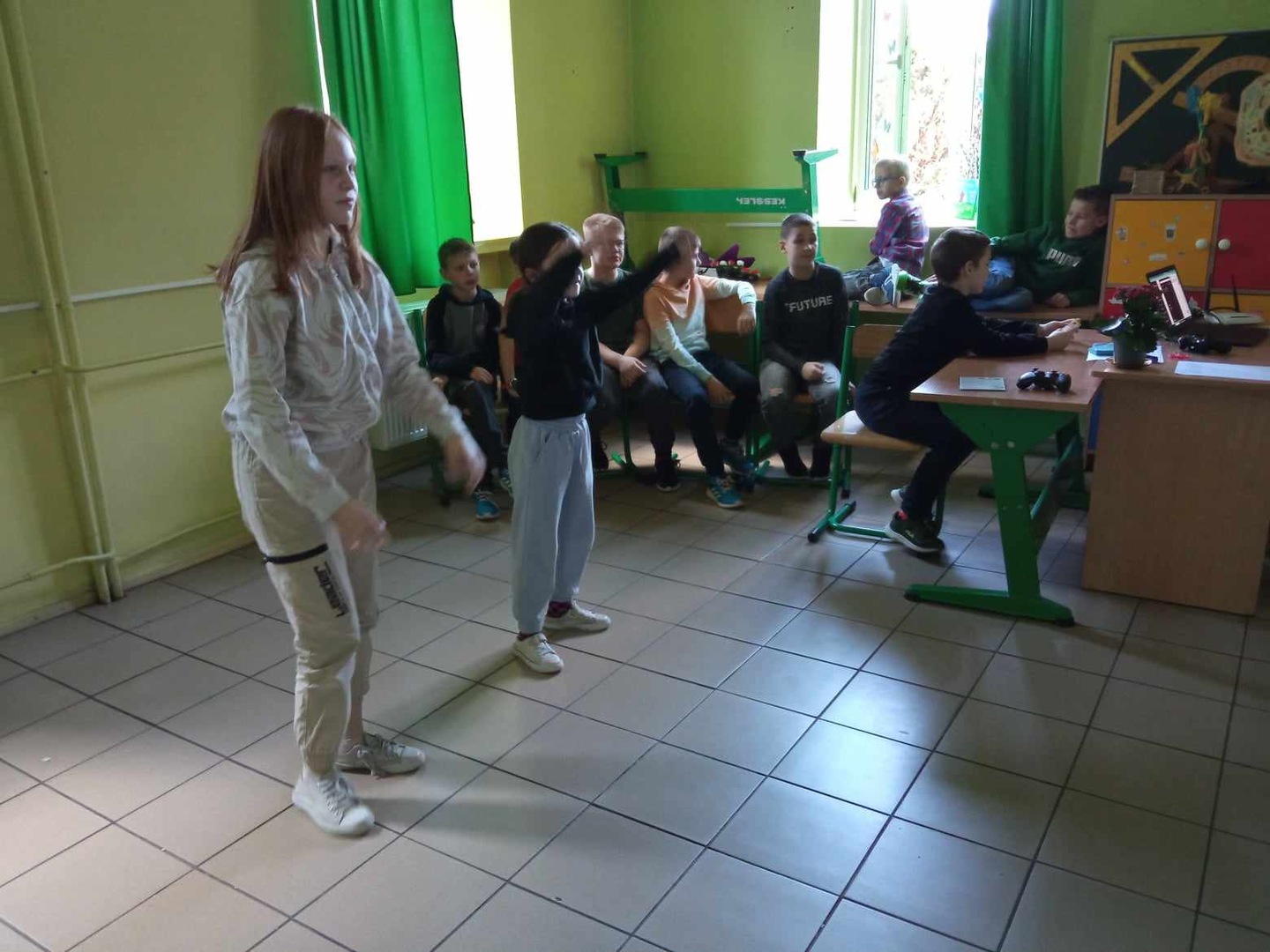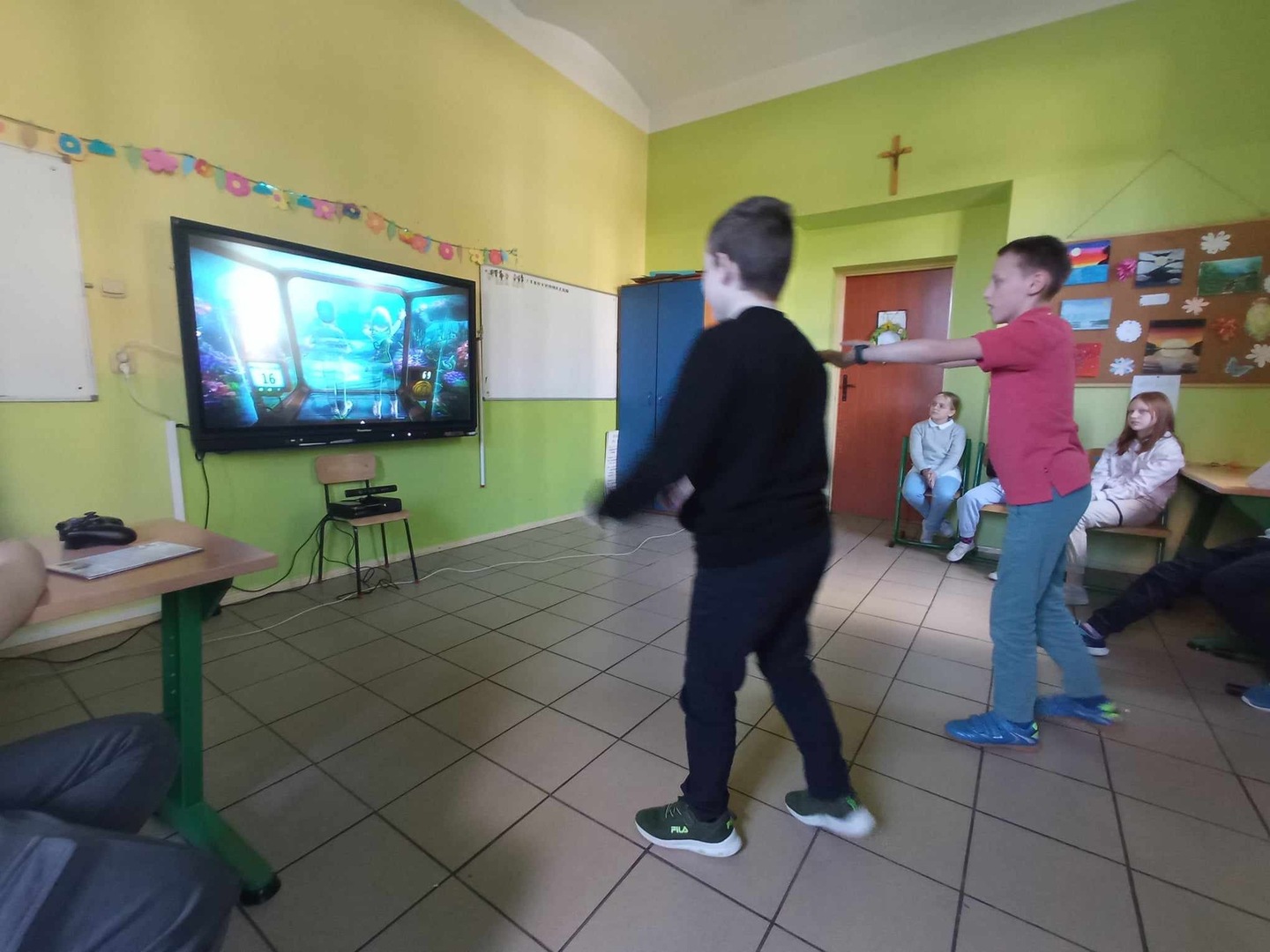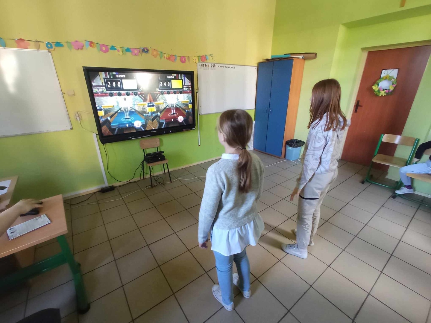 W ostatnim pokoju nasi wychowankowie mieli okazję troszeczkę się poruszać rywalizując ze sobą w dyscyplinach sportowych. Wykorzystanie do tej aktywności multimedialnego kinekta mocno uatrakcyjniło zabawę.