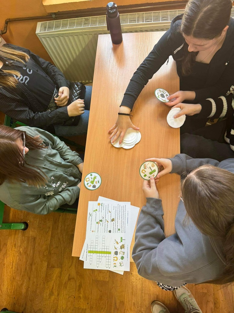 Z okazji dnia świętego Patryka uczniowie poznawali i ćwiczyli słownictwo związane ze świętem. Odbyło się to w atrakcyjnej formie gry karcianej i grupowej oraz quizu wiedzy.
