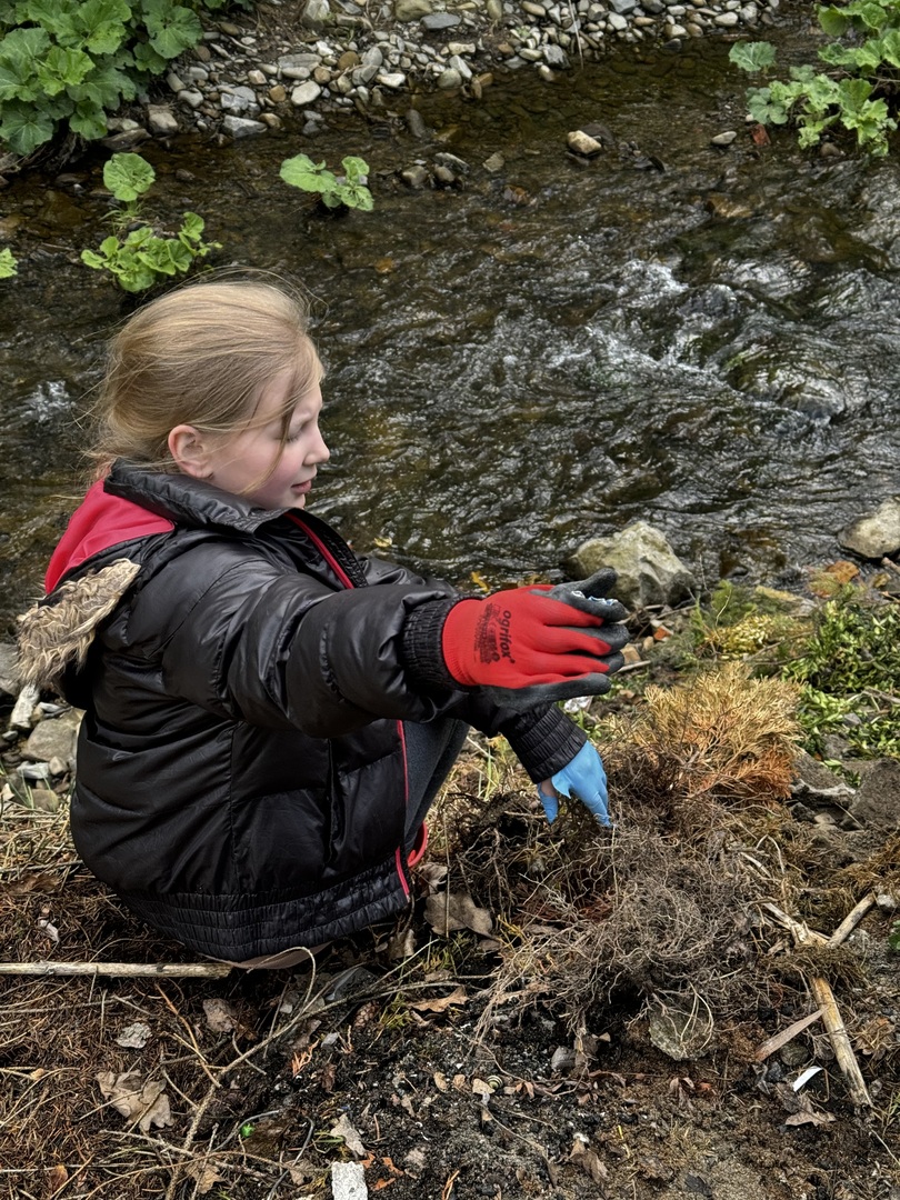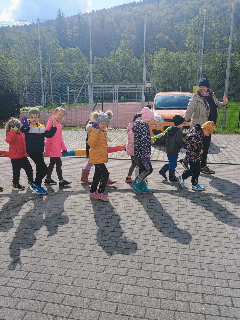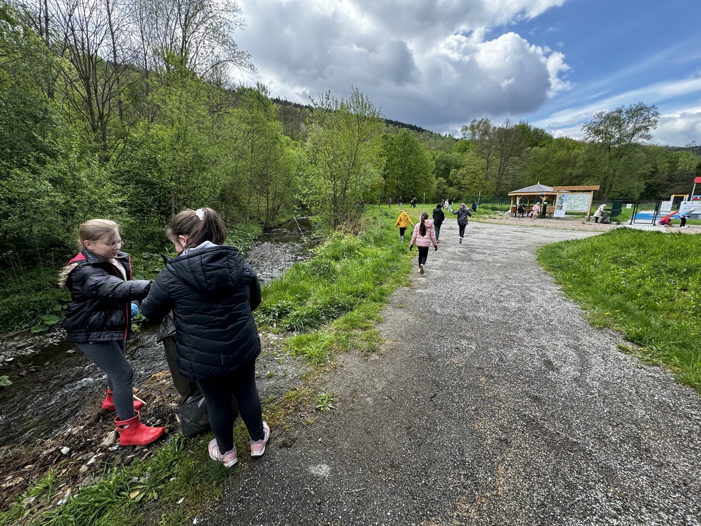 Uczniowie klas I-III skupili się na parkingu obok szkoły oraz terenach nad rzeką Tarnawką.