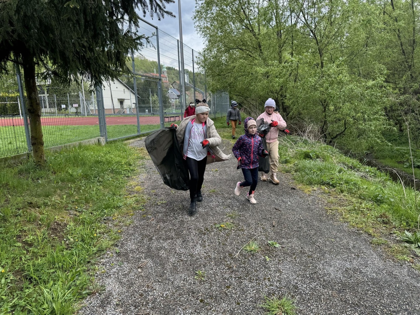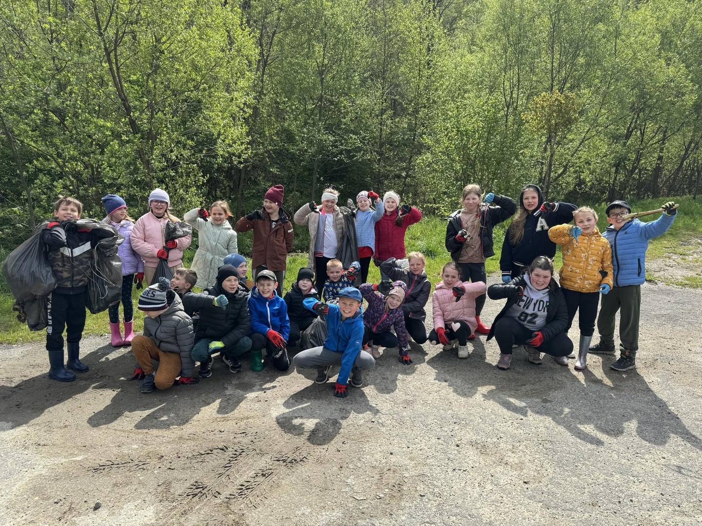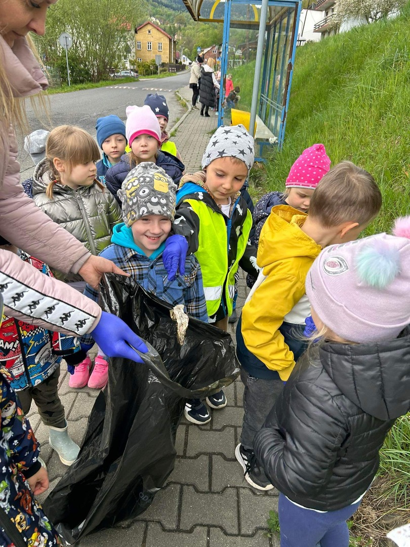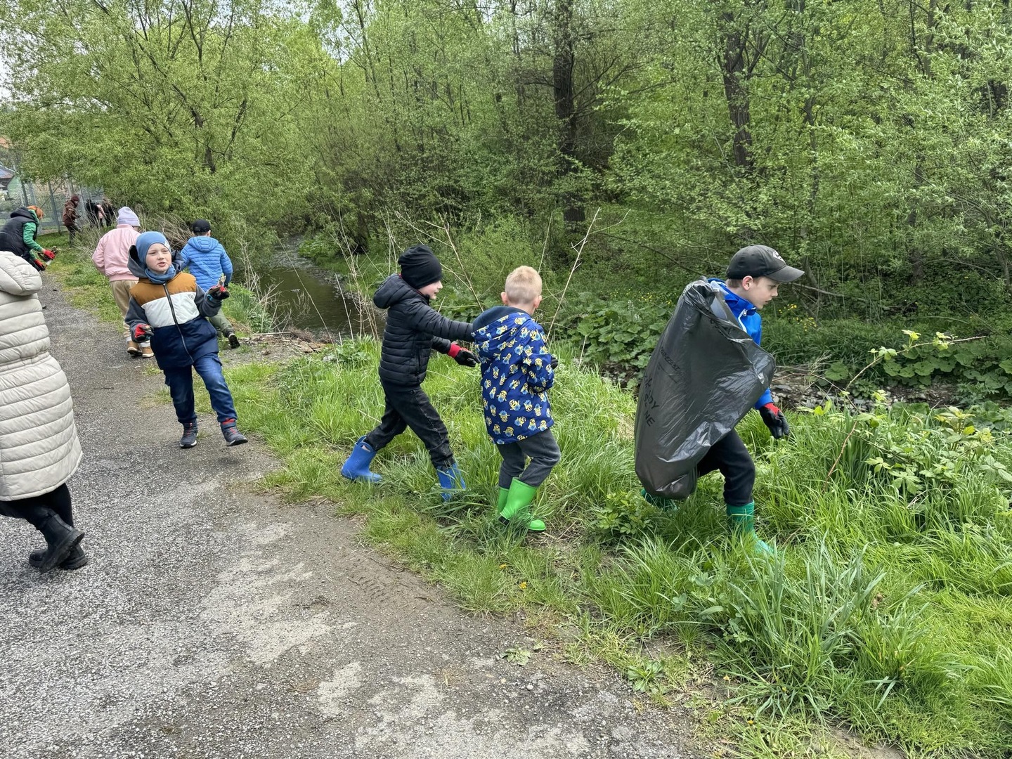 Starsze klasy wyruszyły w stronę kamieniołomu oraz osiedla nad szkołą, aby oczyścić je z nagromadzonych odpadków. Przedszkolaki zaś, pełne entuzjazmu, udały się w stronę kościoła, aby tam zadbać o porządek.