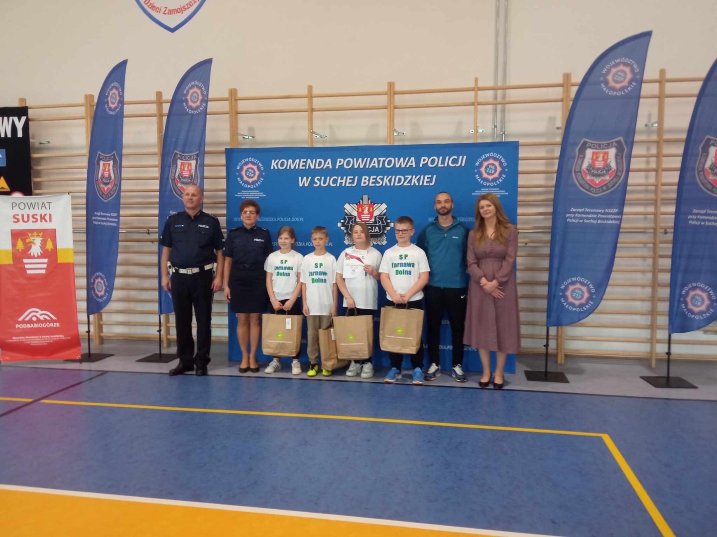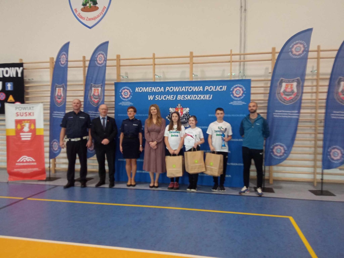 Grupa młodsza w składzie: Nikola Sarnecka, Gabriela Stec, Bartłomiej Korzeniak, Filip Pamuła, walczyła o jak najlepszy wynik z siedmioma drużynami z powiatu suskiego. Rywalizację zaczęli od testu wiedzy, następnie przejazd przez tor przeszkód oraz pierwsza pomoc.