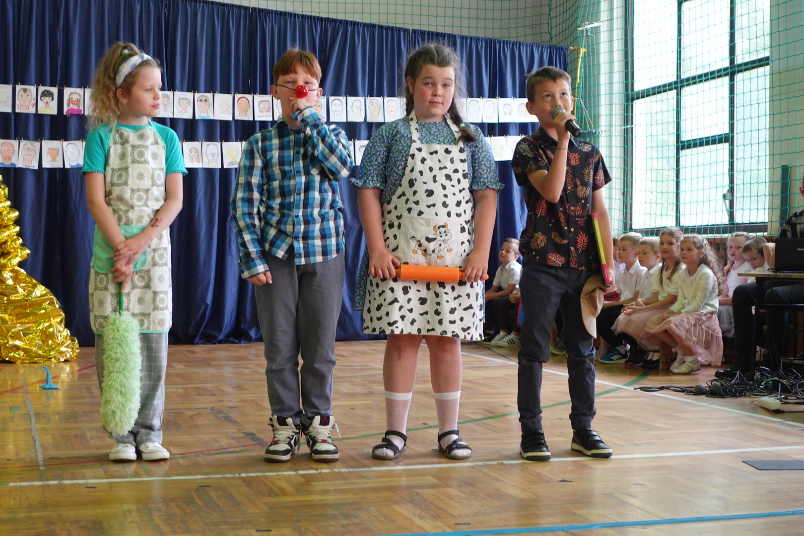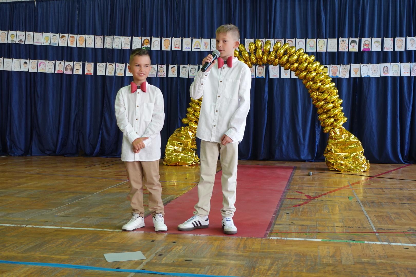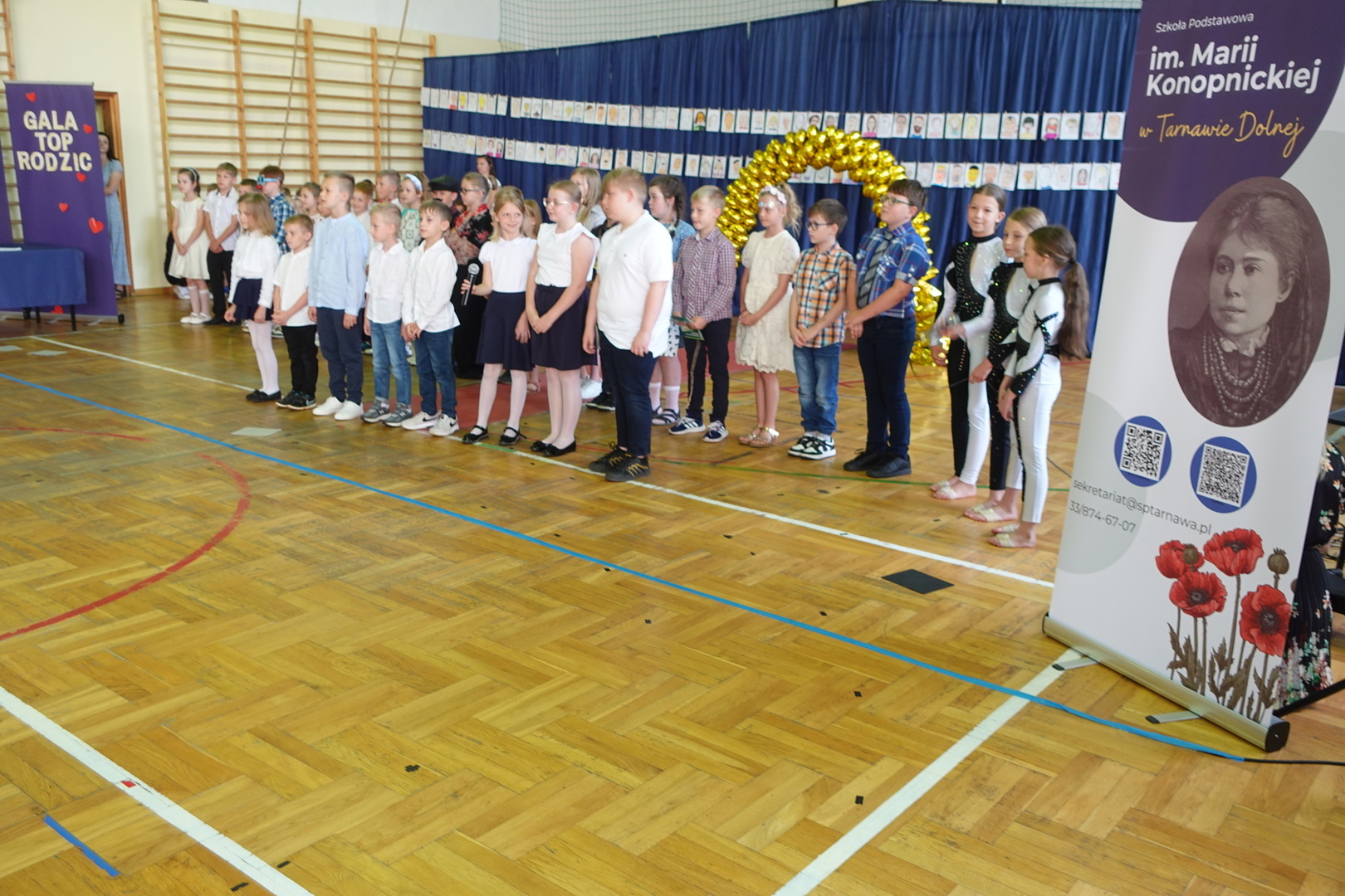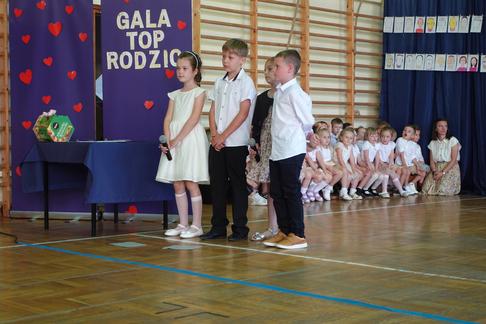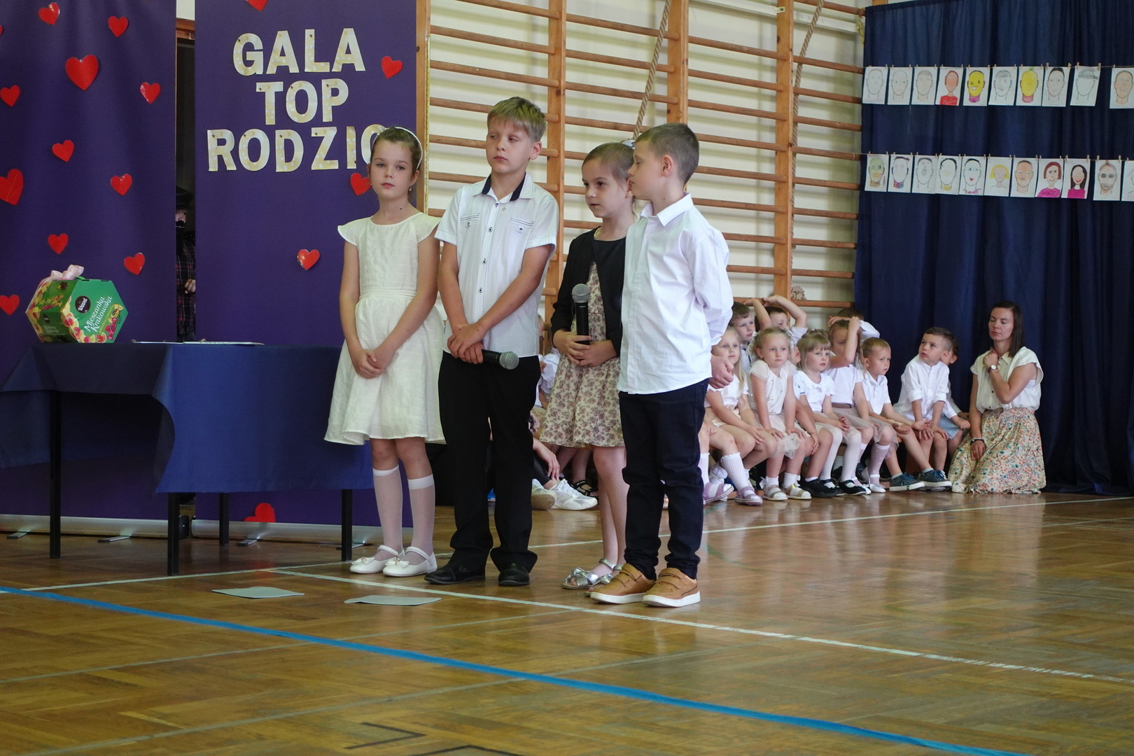 Uroczystość rozpoczęła się od zabawnej części artystycznej przygotowanej przez klasy 0-3 pod tytułem "Gala Top Rodzic". Młodzi artyści rozśmieszali publiczność swoimi występami, ale także wzruszali serca pięknymi i szczerymi słowami. Przedstawienie spotkało się z ogromnym entuzjazmem i brawami, a mali aktorzy zyskali wiele zasłużonych pochwał.