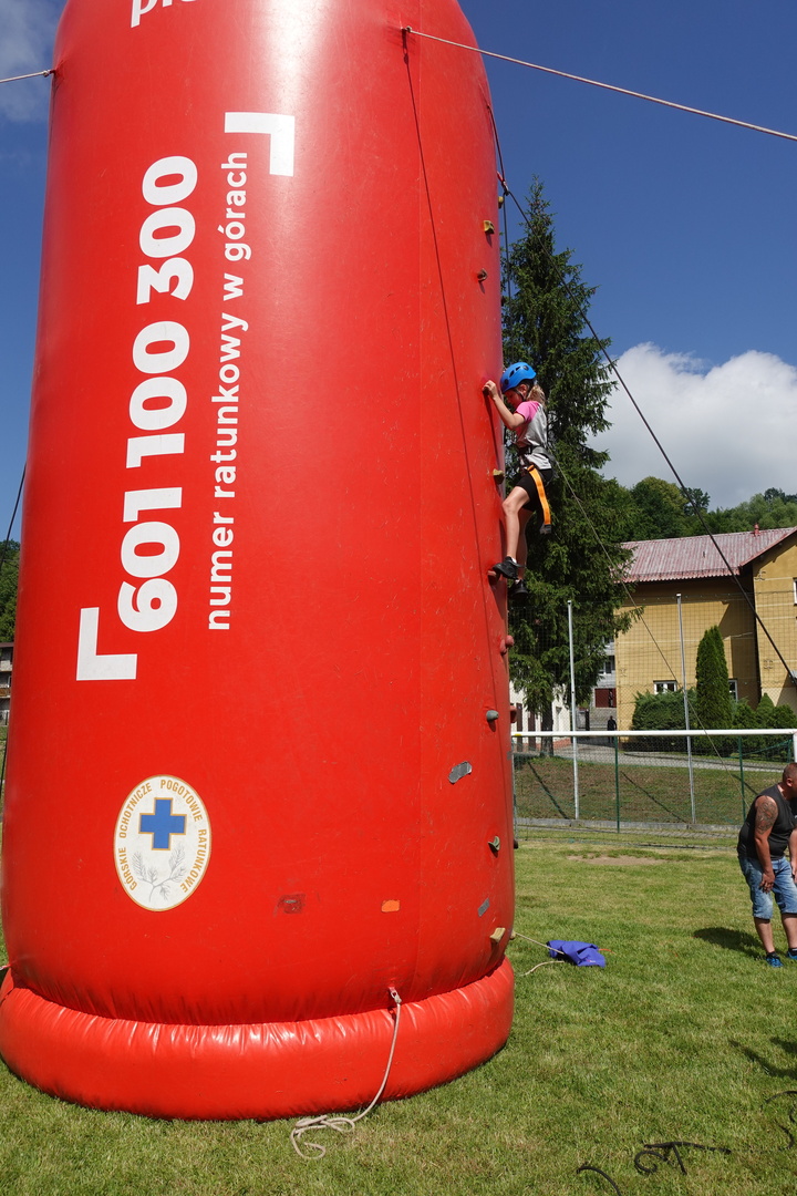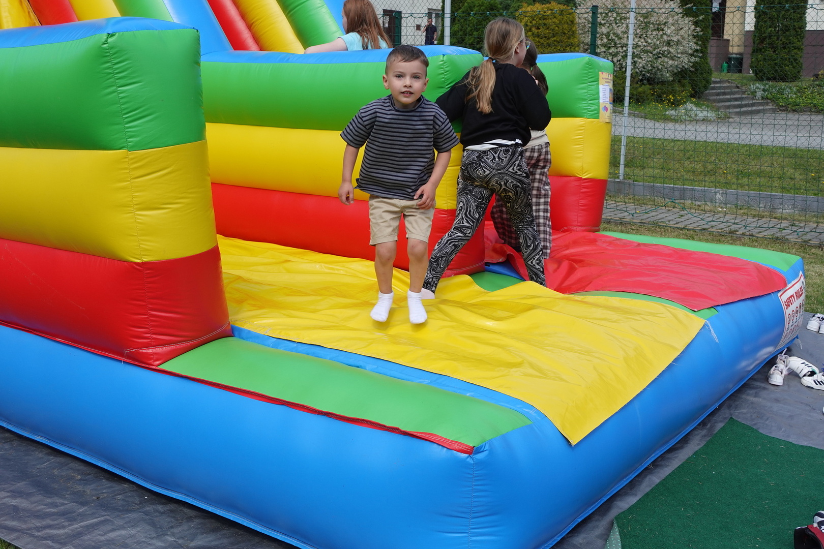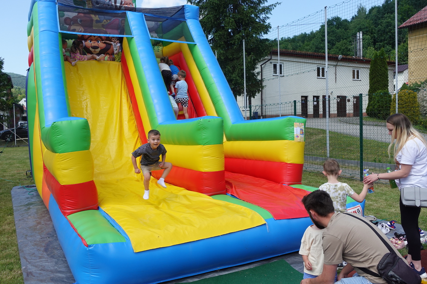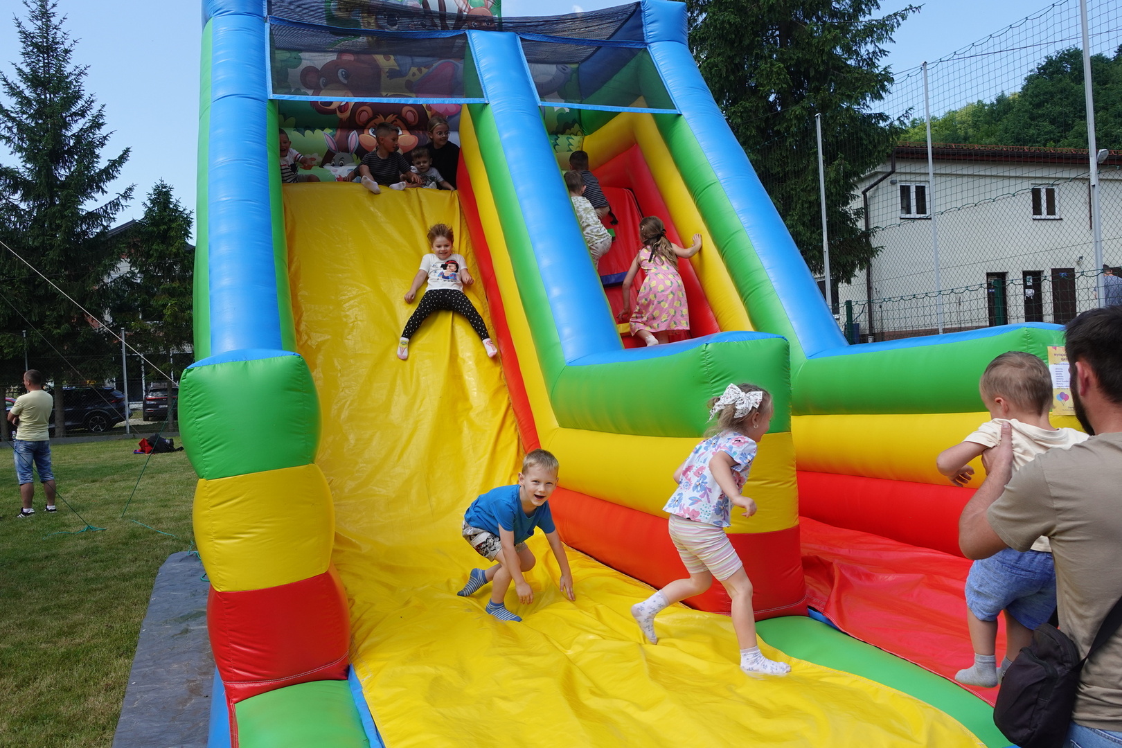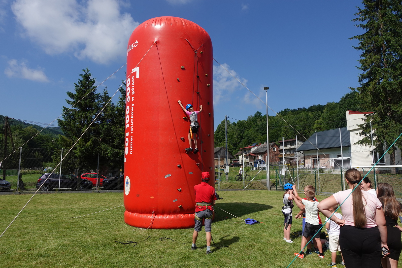 Po części oficjalnej nadszedł czas na zabawę. Dzięki wsparciu Rady Rodziców dzieci miały okazję korzystać z dmuchańców, które zapewniały mnóstwo śmiechu i radości. Lokalny oddział GOPR przygotował ściankę wspinaczkową, gdzie mali i duzi mogli sprawdzić swoje umiejętności i poczuć dreszczyk emocji. Dużą popularnością cieszył się także pokaz strażaków z OSP Tarnawa Dolna - zdecydowanie wśród naszych uczniów rośnie nowy strażacki narybek :)