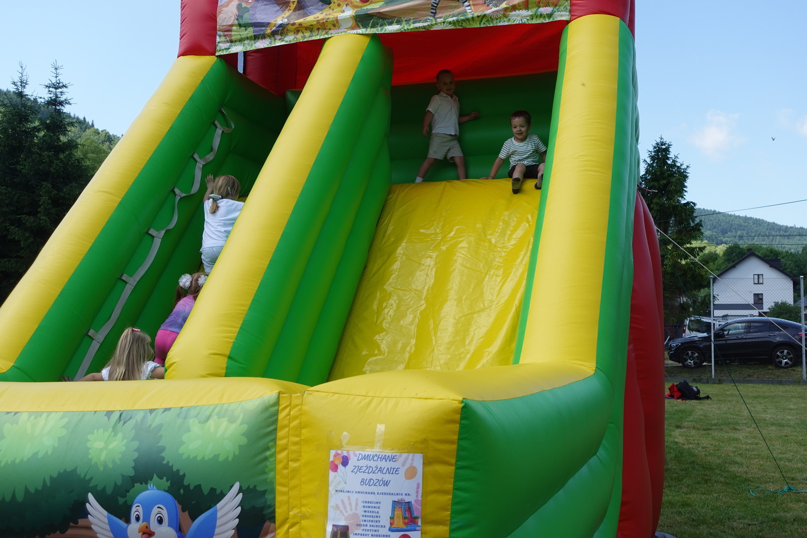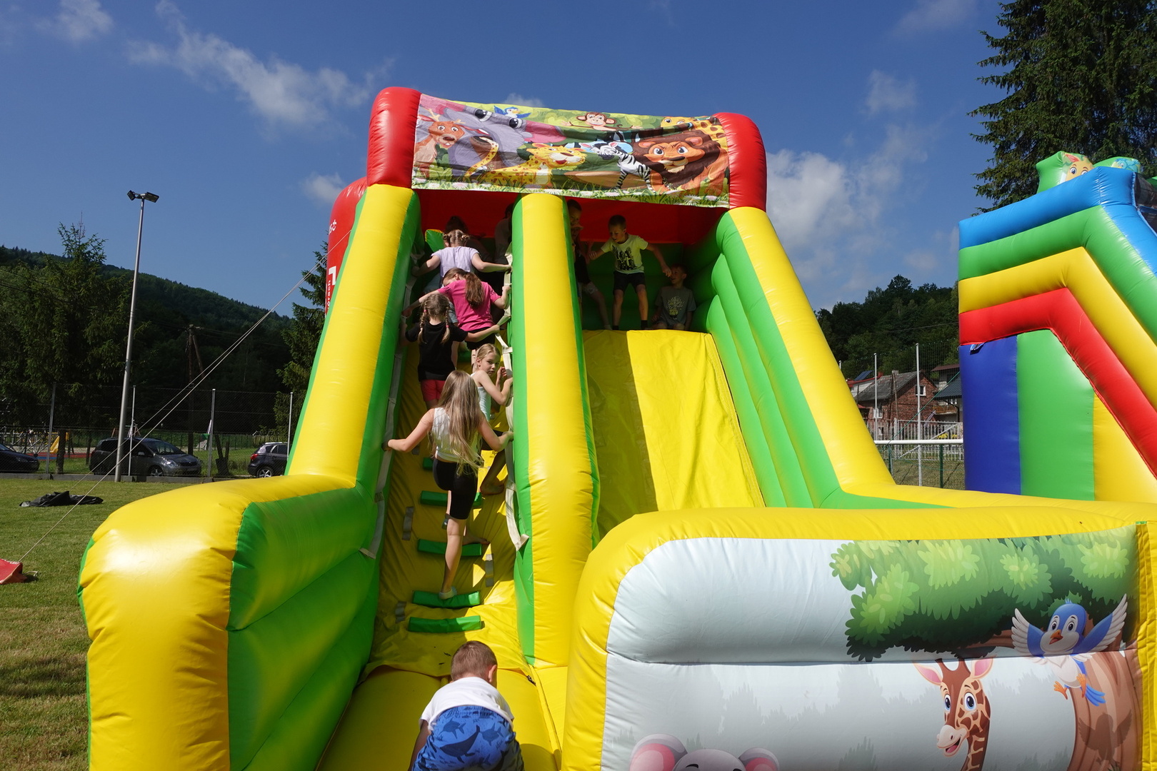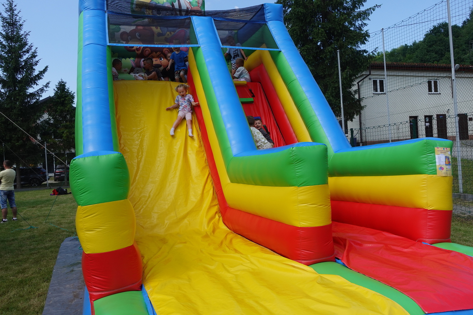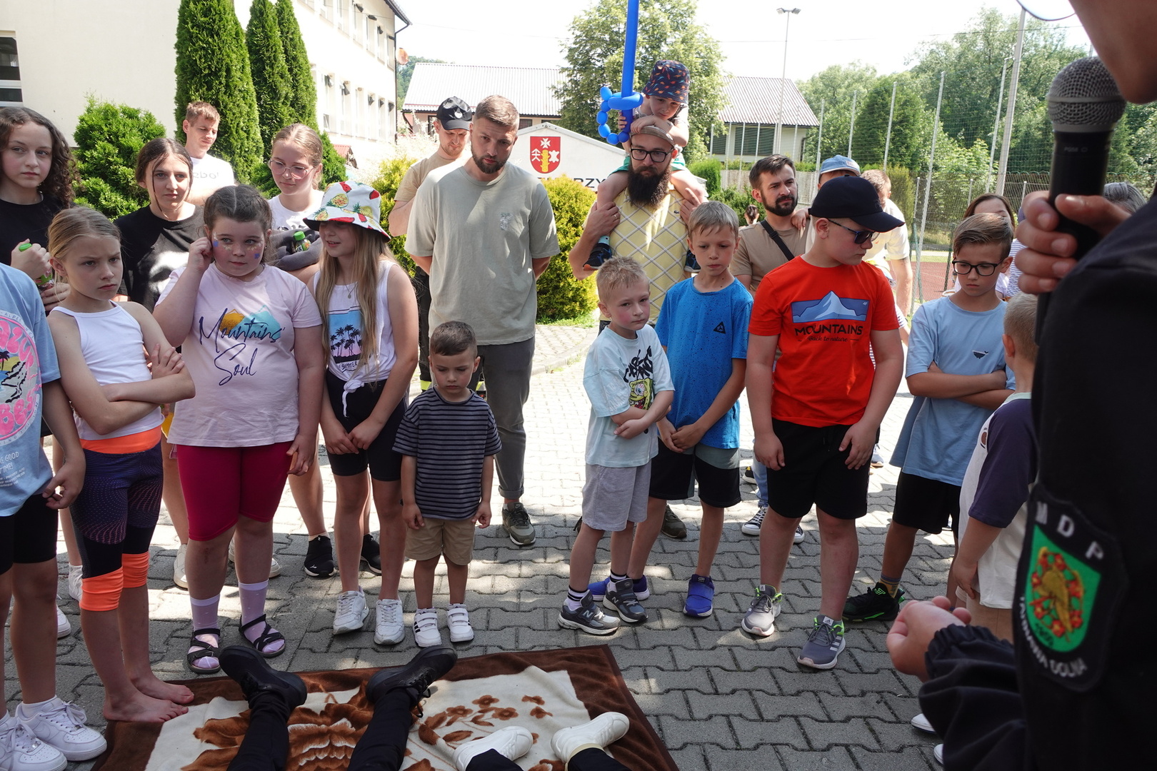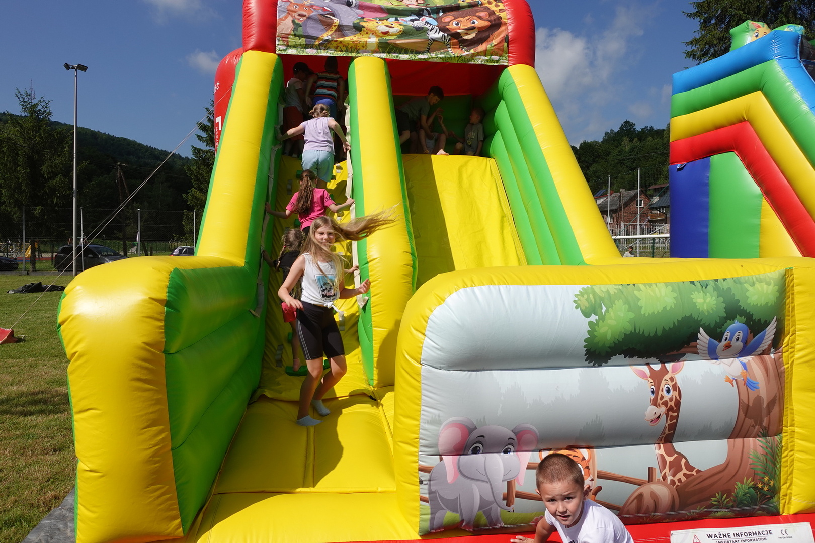 Po części oficjalnej nadszedł czas na zabawę. Dzięki wsparciu Rady Rodziców dzieci miały okazję korzystać z dmuchańców, które zapewniały mnóstwo śmiechu i radości. Lokalny oddział GOPR przygotował ściankę wspinaczkową, gdzie mali i duzi mogli sprawdzić swoje umiejętności i poczuć dreszczyk emocji. Dużą popularnością cieszył się także pokaz strażaków z OSP Tarnawa Dolna - zdecydowanie wśród naszych uczniów rośnie nowy strażacki narybek :)