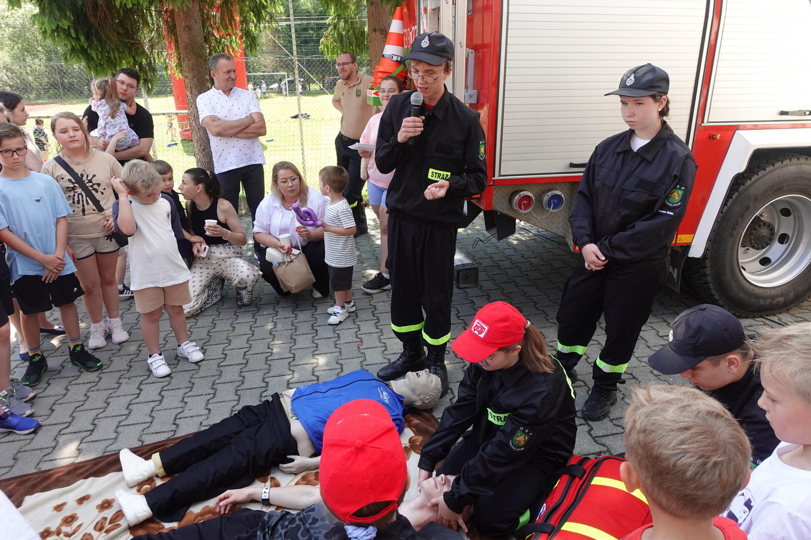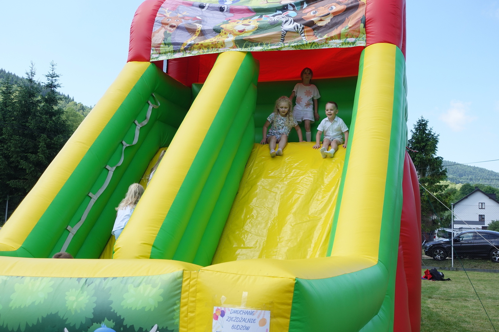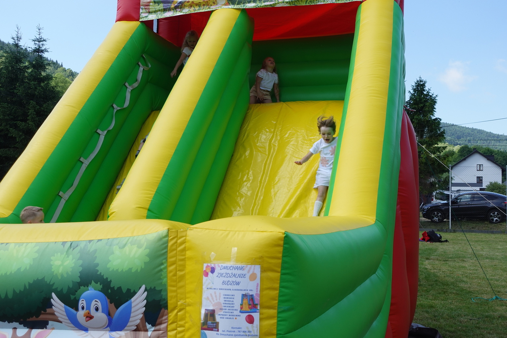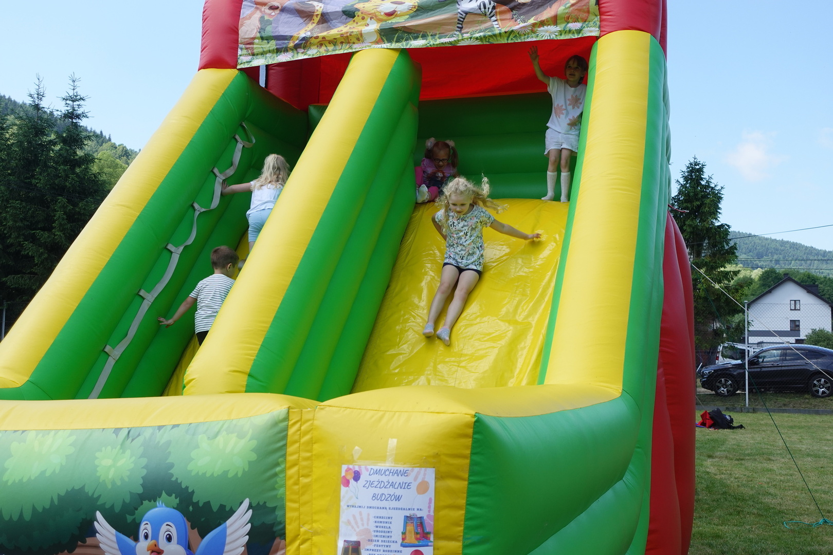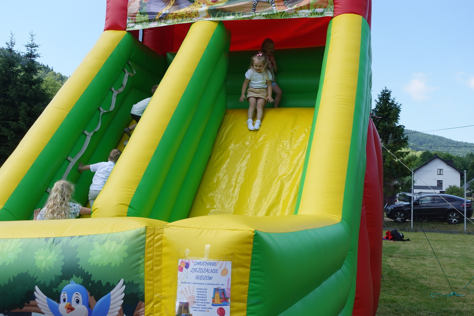 Po części oficjalnej nadszedł czas na zabawę. Dzięki wsparciu Rady Rodziców dzieci miały okazję korzystać z dmuchańców, które zapewniały mnóstwo śmiechu i radości. Lokalny oddział GOPR przygotował ściankę wspinaczkową, gdzie mali i duzi mogli sprawdzić swoje umiejętności i poczuć dreszczyk emocji. Dużą popularnością cieszył się także pokaz strażaków z OSP Tarnawa Dolna - zdecydowanie wśród naszych uczniów rośnie nowy strażacki narybek :)