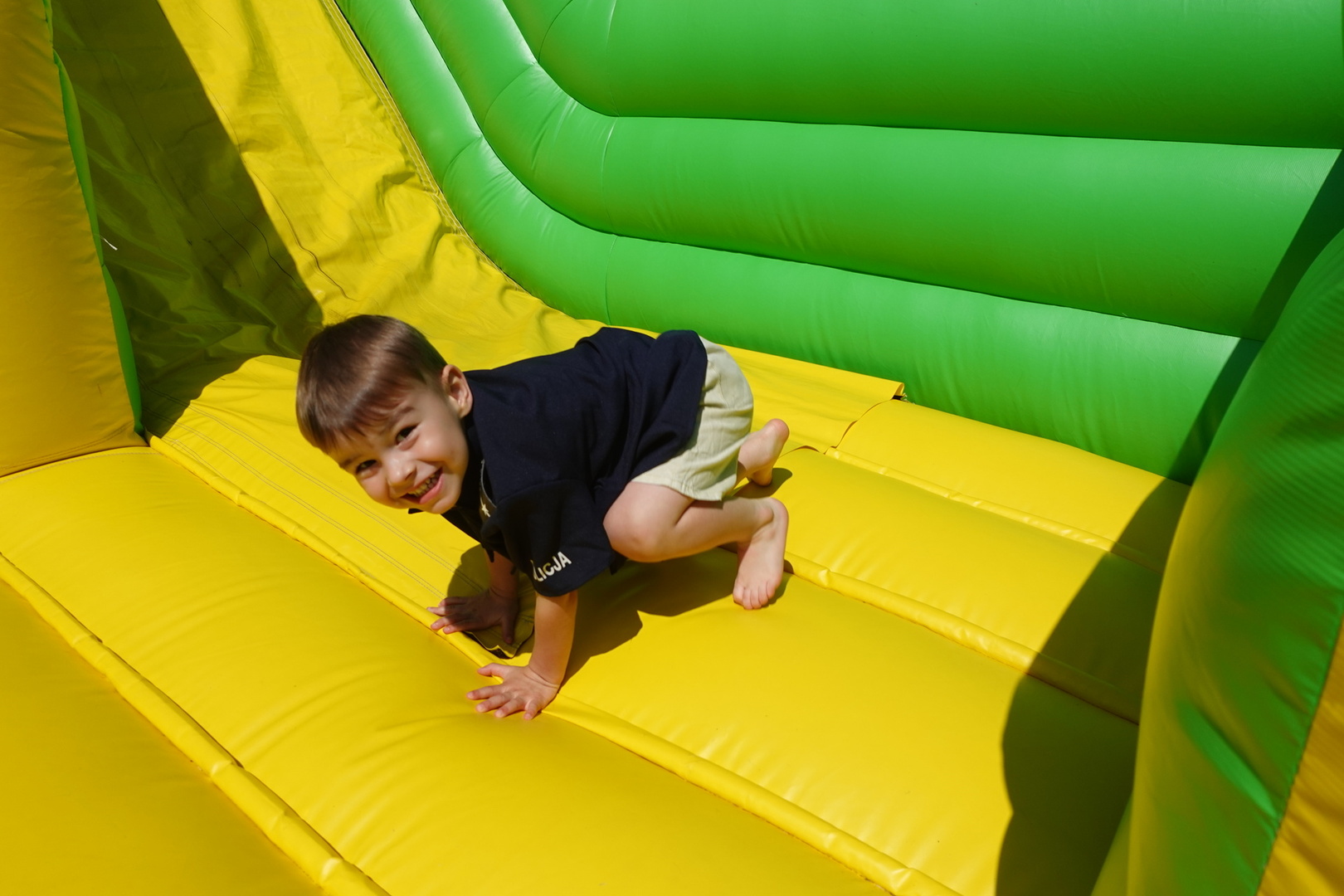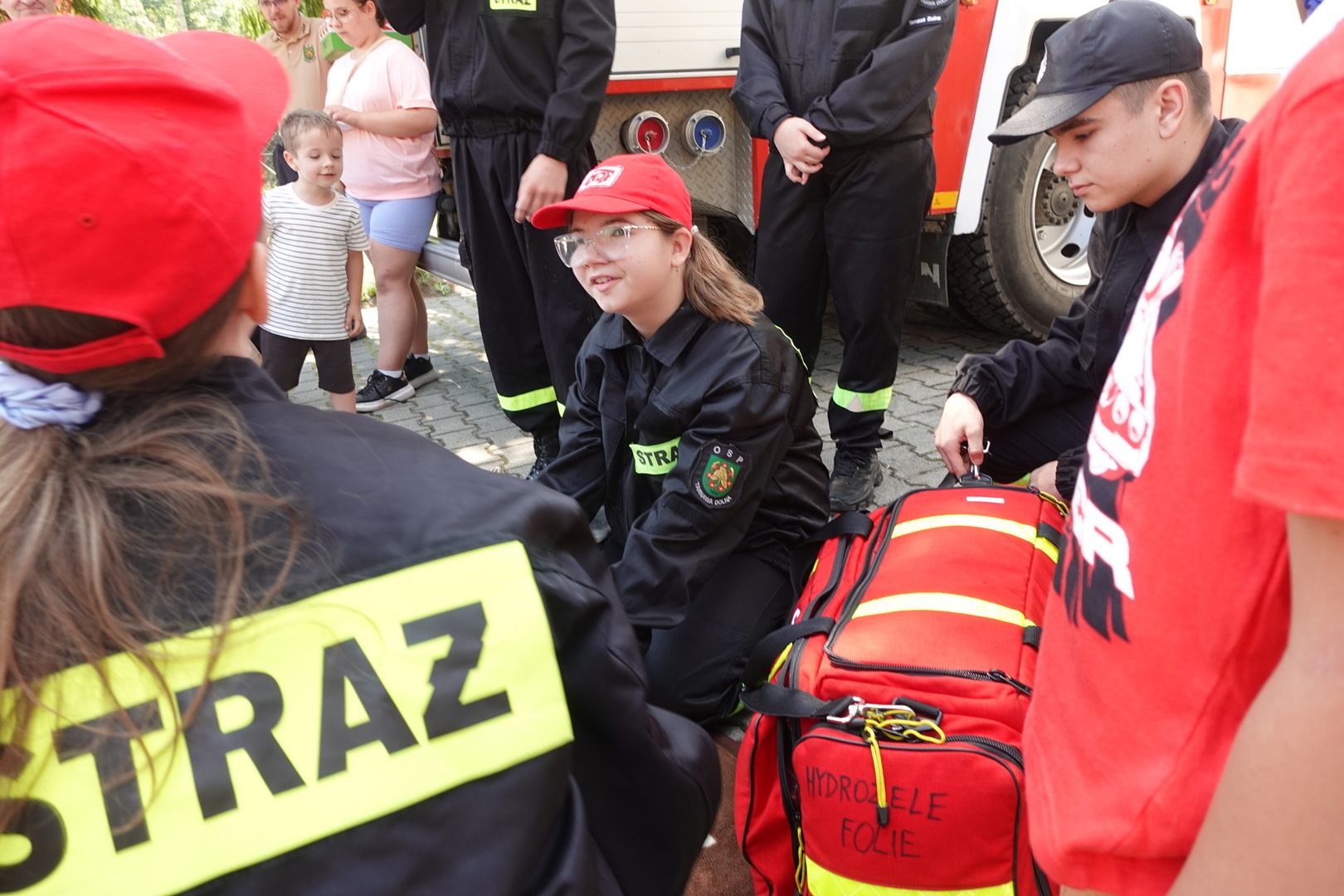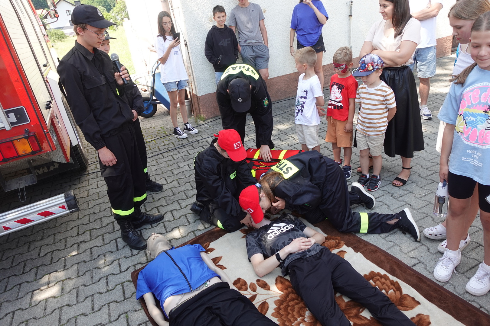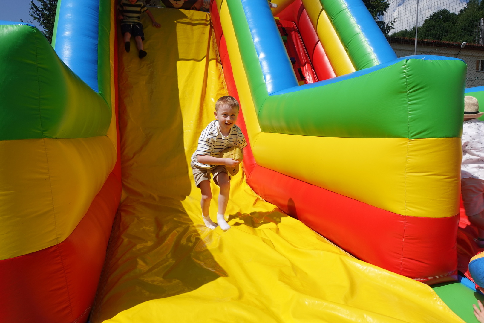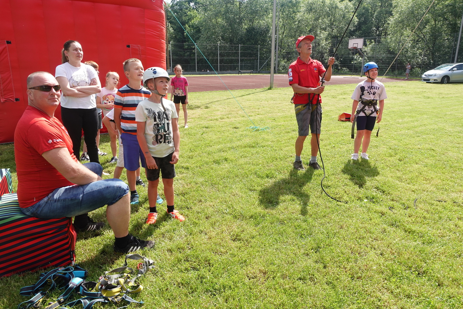 Po części oficjalnej nadszedł czas na zabawę. Dzięki wsparciu Rady Rodziców dzieci miały okazję korzystać z dmuchańców, które zapewniały mnóstwo śmiechu i radości. Lokalny oddział GOPR przygotował ściankę wspinaczkową, gdzie mali i duzi mogli sprawdzić swoje umiejętności i poczuć dreszczyk emocji. Dużą popularnością cieszył się także pokaz strażaków z OSP Tarnawa Dolna - zdecydowanie wśród naszych uczniów rośnie nowy strażacki narybek :)