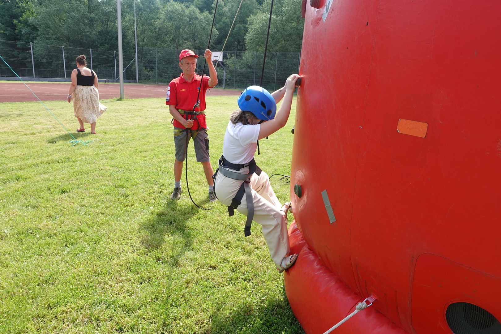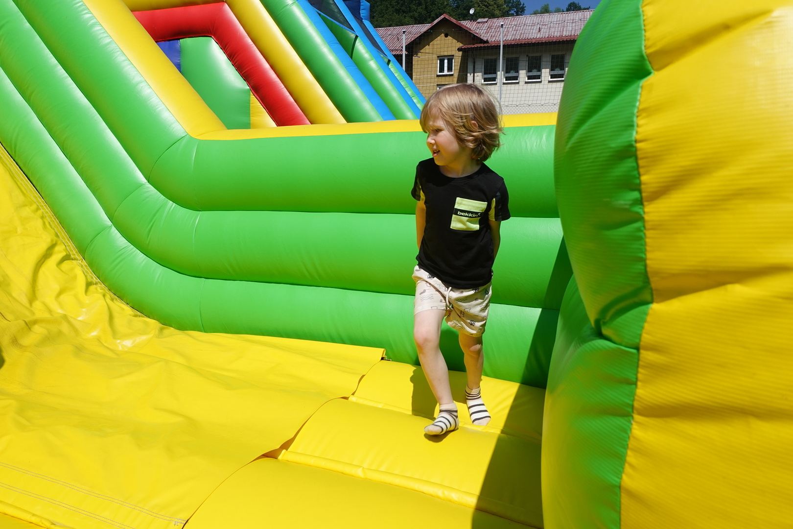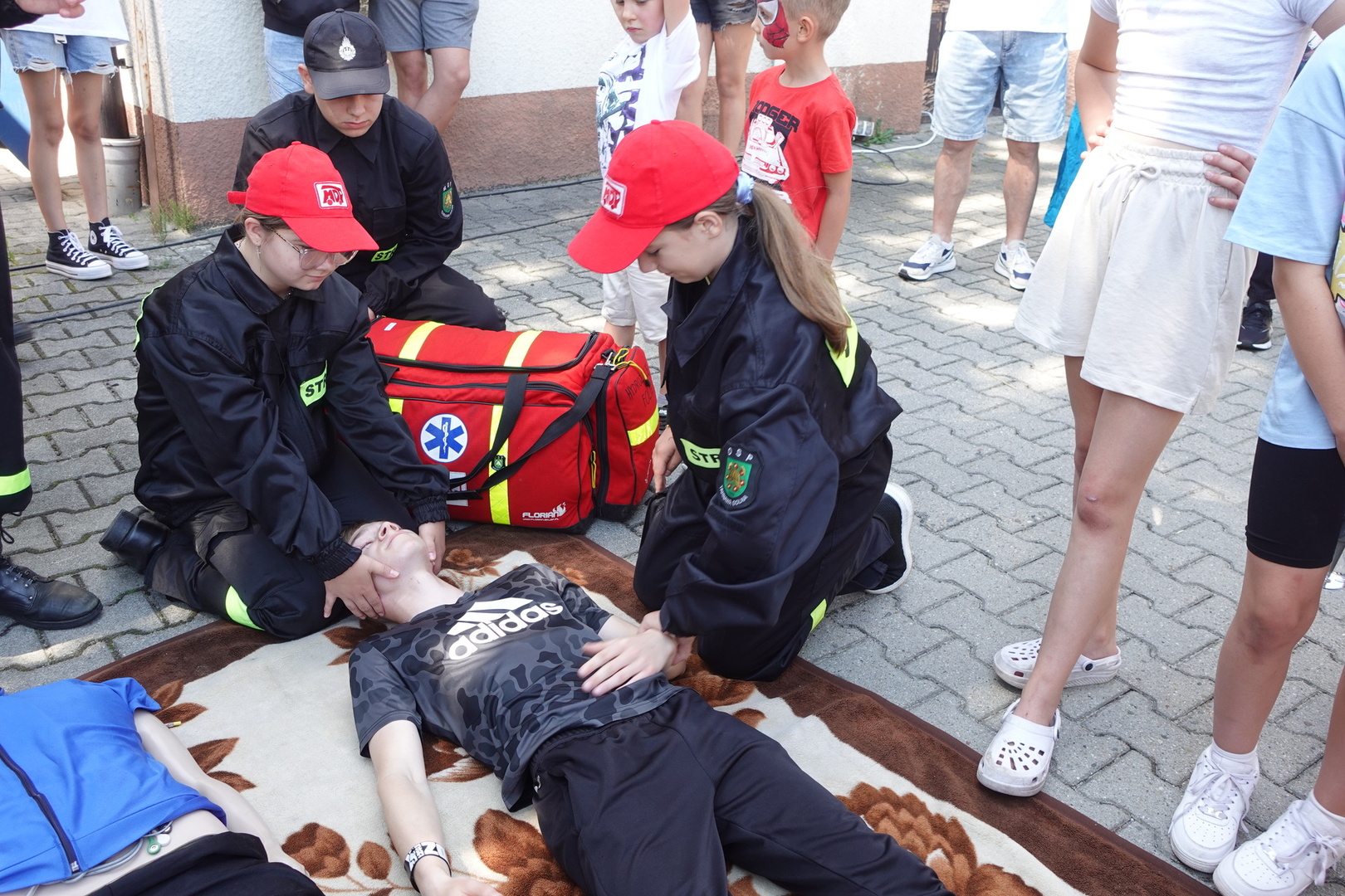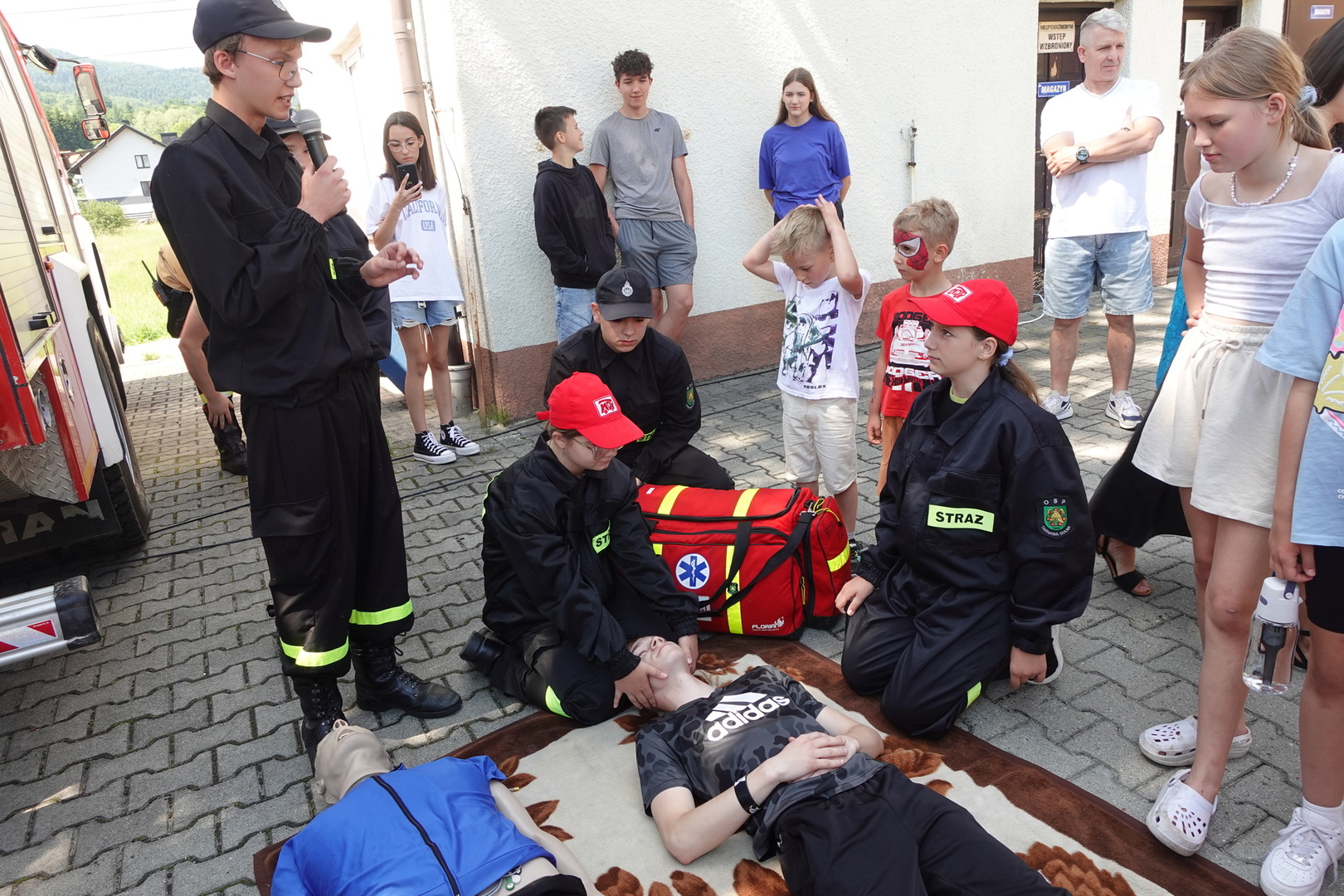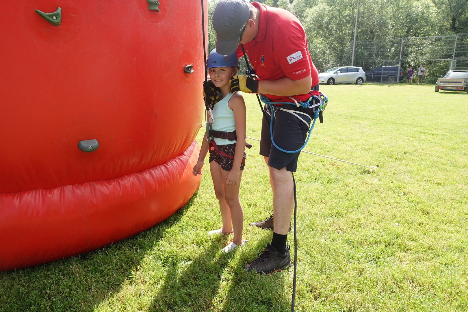 Po części oficjalnej nadszedł czas na zabawę. Dzięki wsparciu Rady Rodziców dzieci miały okazję korzystać z dmuchańców, które zapewniały mnóstwo śmiechu i radości. Lokalny oddział GOPR przygotował ściankę wspinaczkową, gdzie mali i duzi mogli sprawdzić swoje umiejętności i poczuć dreszczyk emocji. Dużą popularnością cieszył się także pokaz strażaków z OSP Tarnawa Dolna - zdecydowanie wśród naszych uczniów rośnie nowy strażacki narybek :)