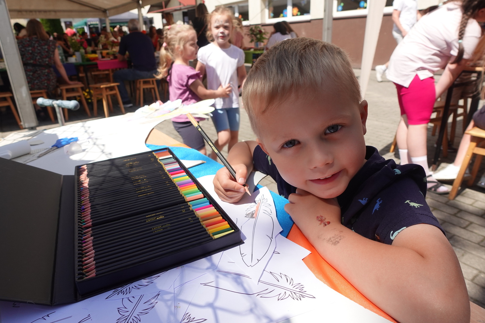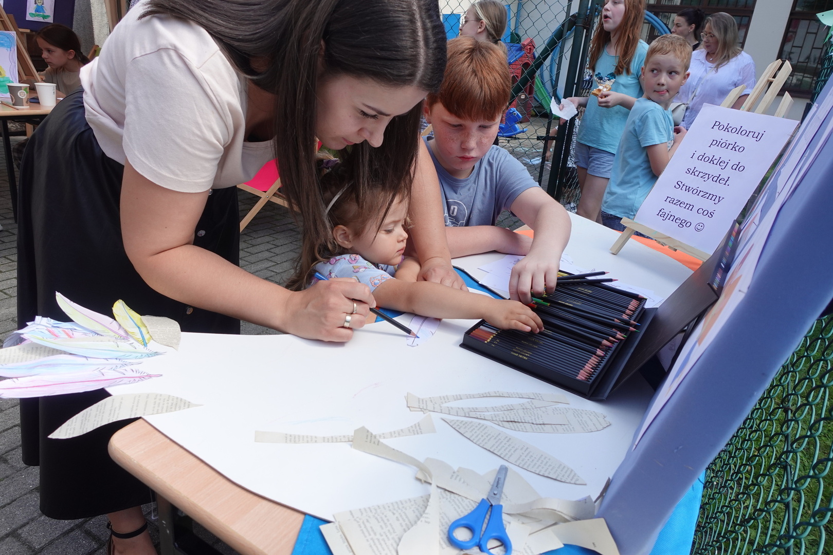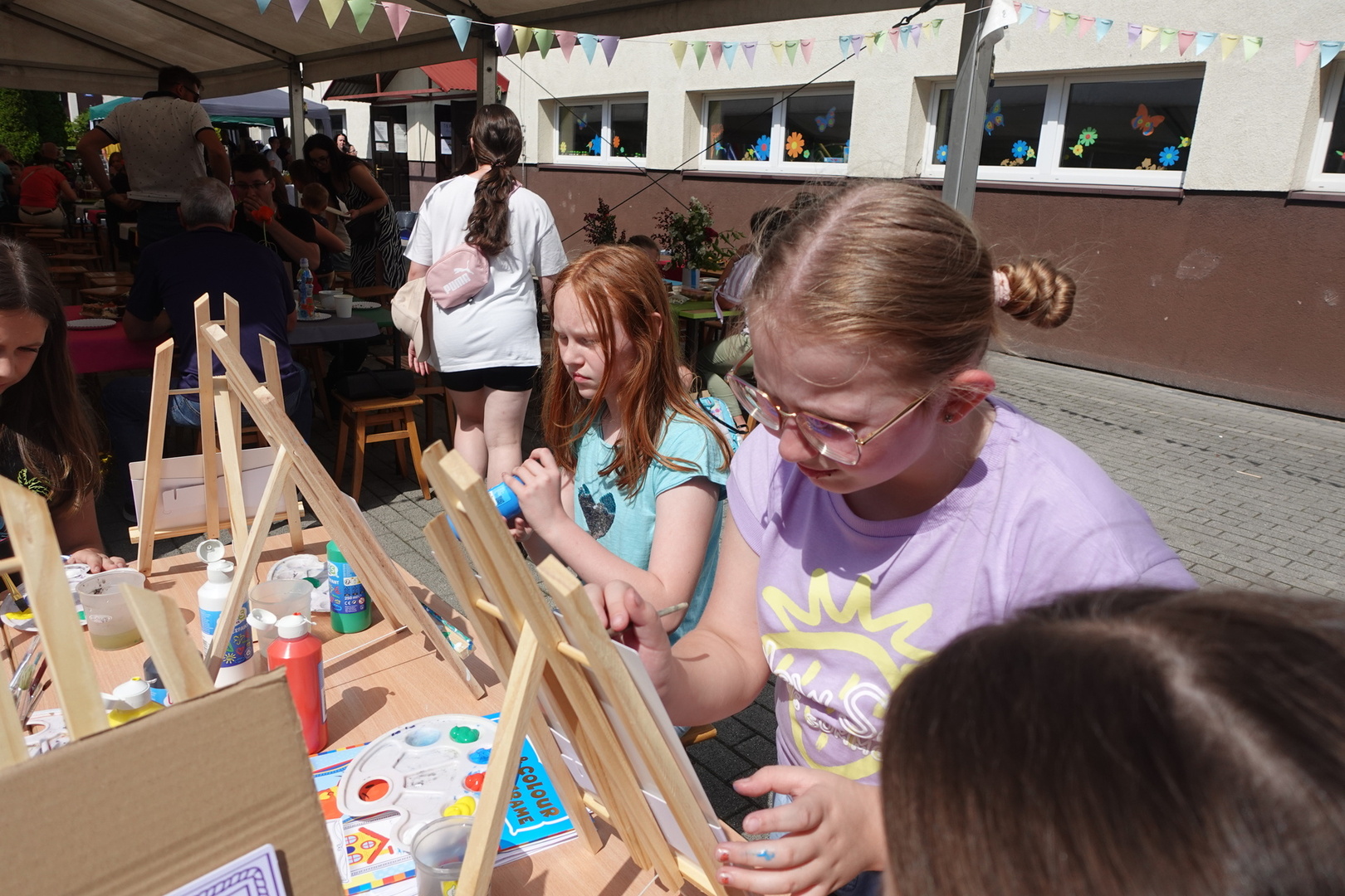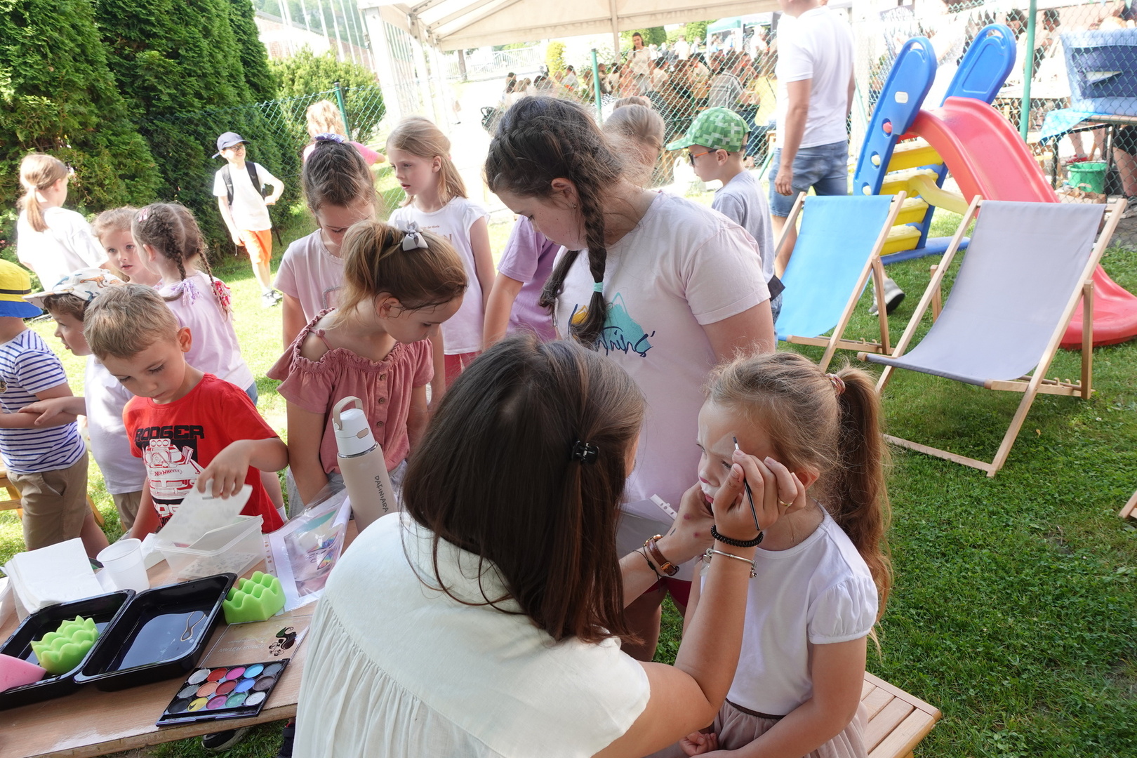 Dużym zainteresowaniem cieszyły się również różnorodne stanowiska: malowanie twarzy, tatuaże, malowanie na sztalugach, dmuchane balony, gry Xbox Kinect, sportowe rozgrywki oraz wyjątkowy quiz dobroci. W quizie dzieci łowiły dobre uczynki na wędkę, co nie tylko bawiło, ale także uczyło empatii i dobroci.
