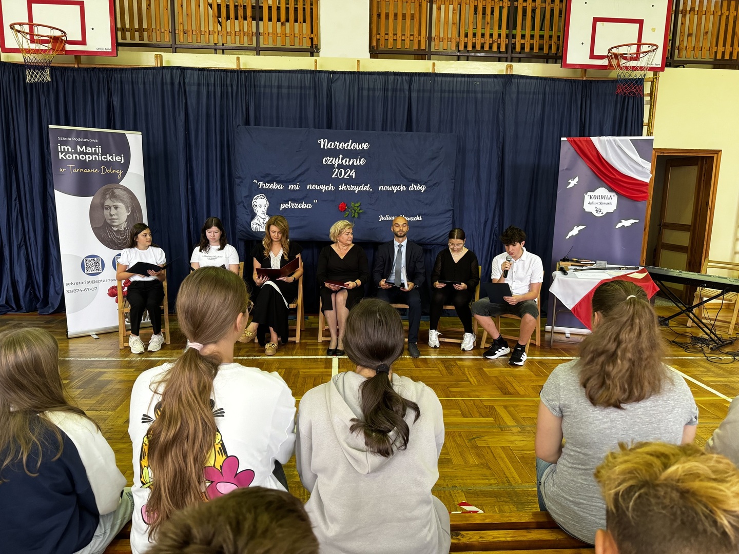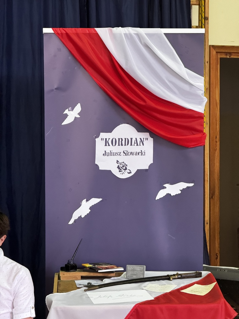 W ramach ogólnopolskiej akcji Narodowego Czytania, w tym roku wspólnie zgłębialiśmy dramat Juliusza Słowackiego – „Kordian”. Wydarzenie, które odbyło się w naszej szkole, rozpoczęło się od przedstawienia sylwetki wybitnego poety i dramatopisarza, którego twórczość jest istotnym elementem polskiego dziedzictwa literackiego.