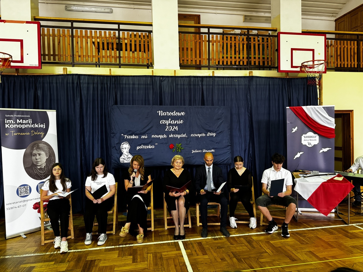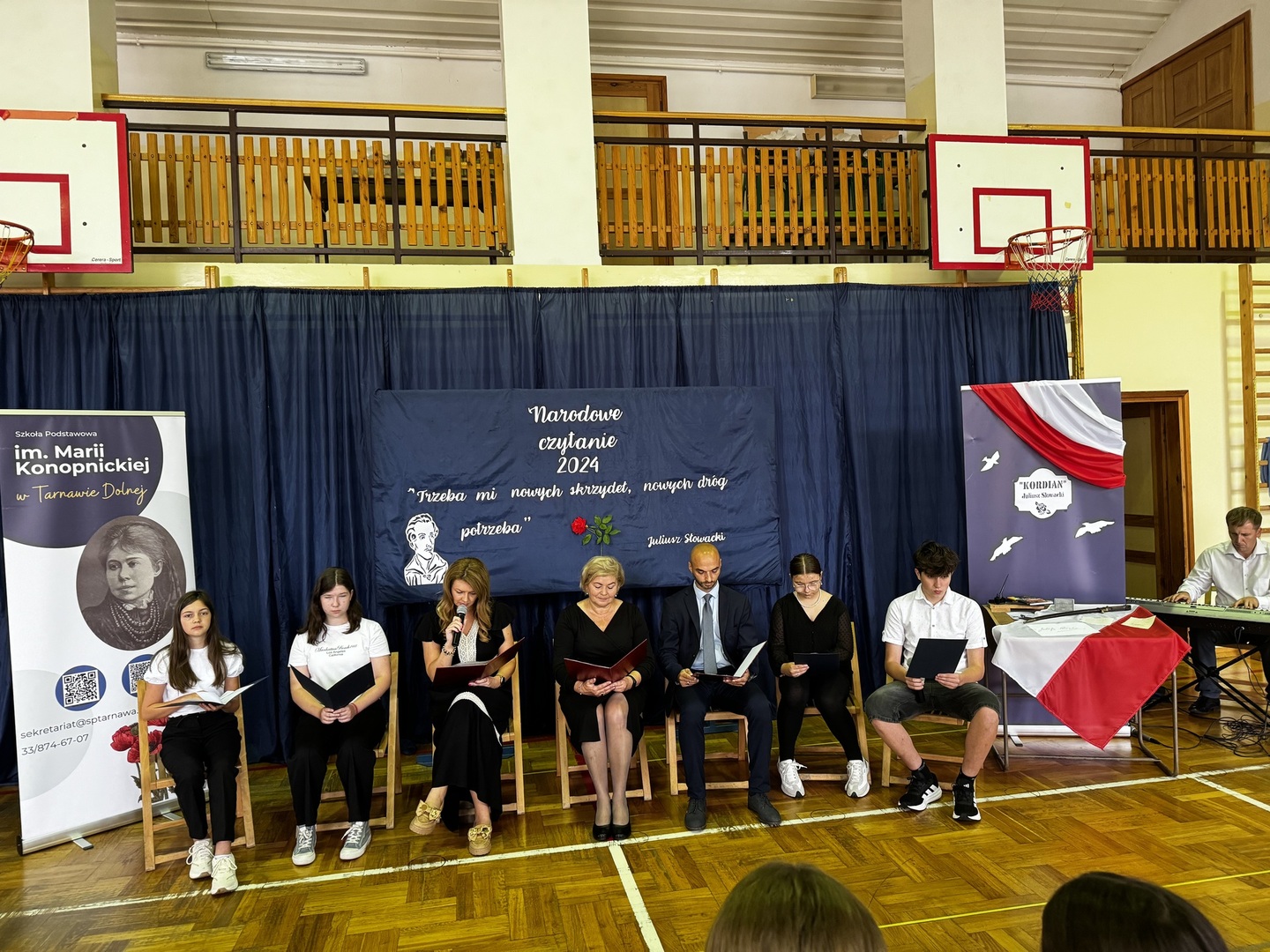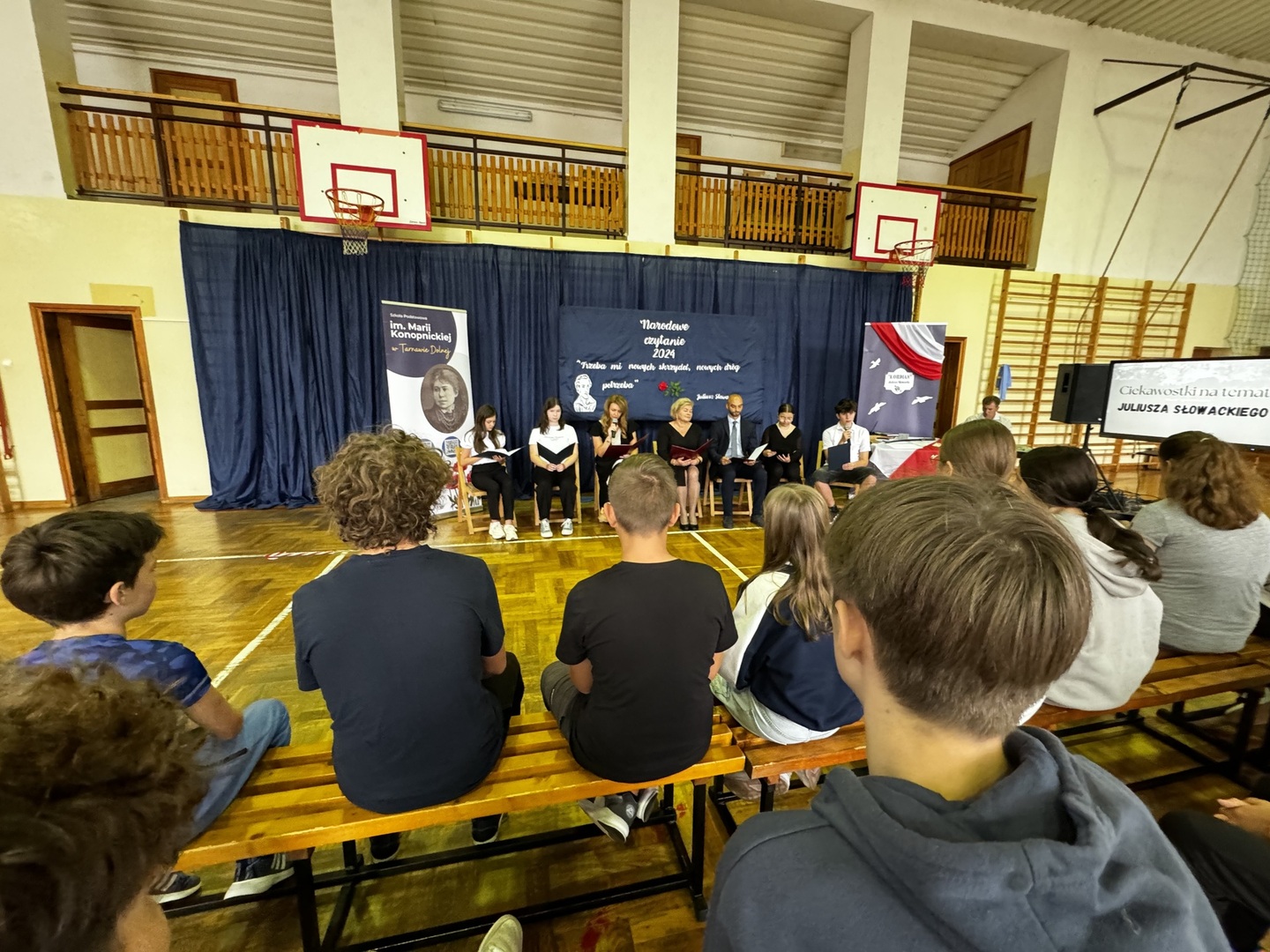 W uroczystości wzięła udział Pani Wójt Joanna Stypuła oraz dyrektor szkoły Ewa Dębińska. Wspólnie z nauczycielem wychowania fizycznego Bartłomiejem Polakiem oraz uczniami z klasy 8, odczytali oni wybrane fragmenty „Kordiana”. Towarzyszyła im piękna oprawa muzyczna, złożona z utworów klasycznych, które podkreślały emocje dramatu i wprowadzały zgromadzonych w wyjątkowy nastrój.